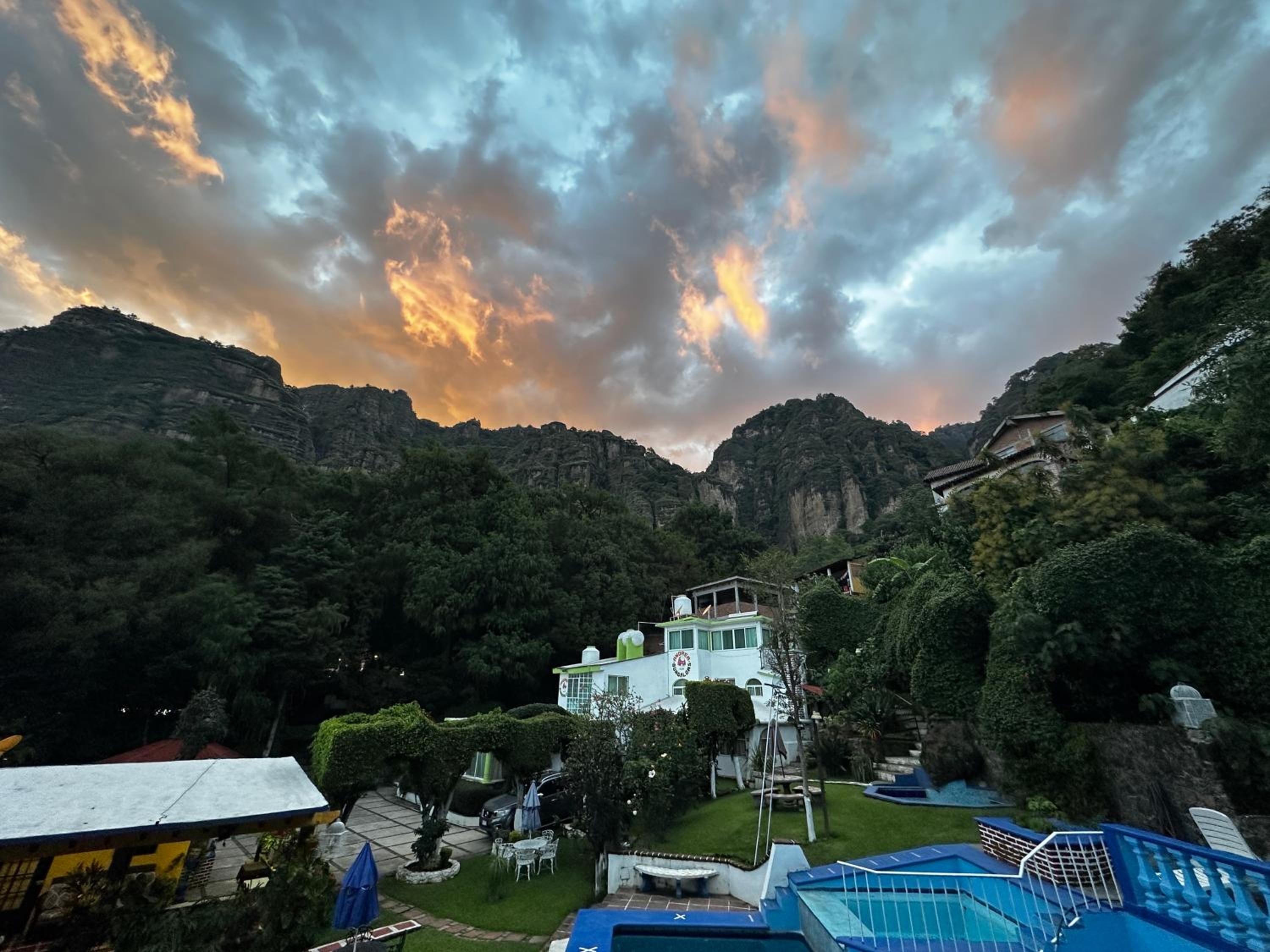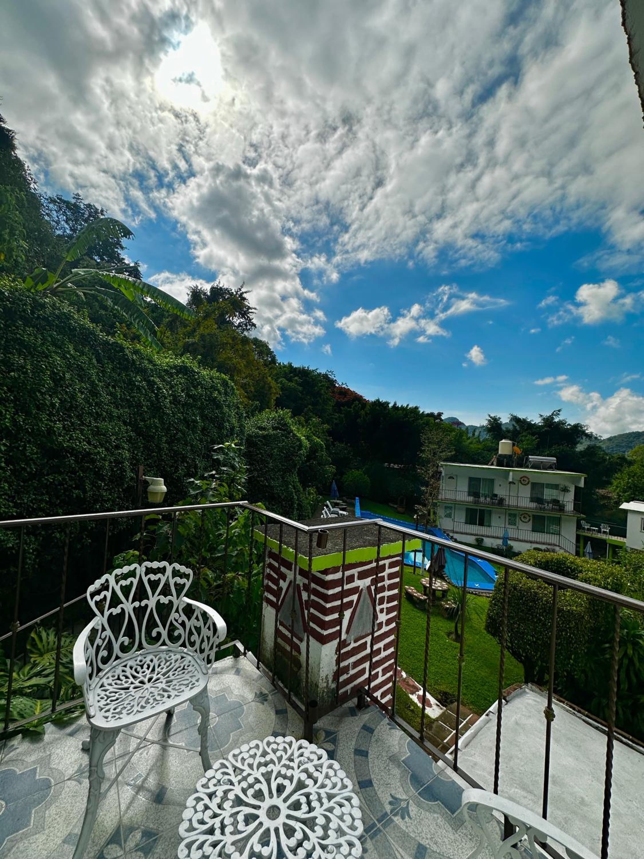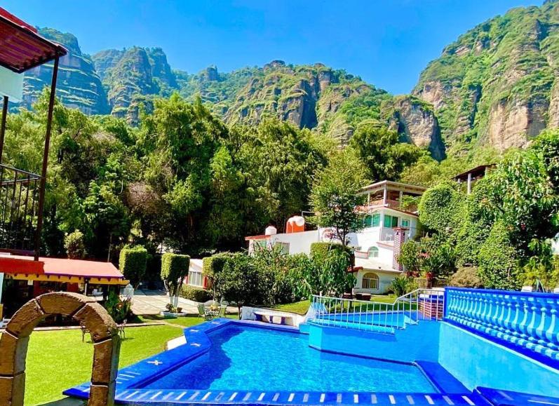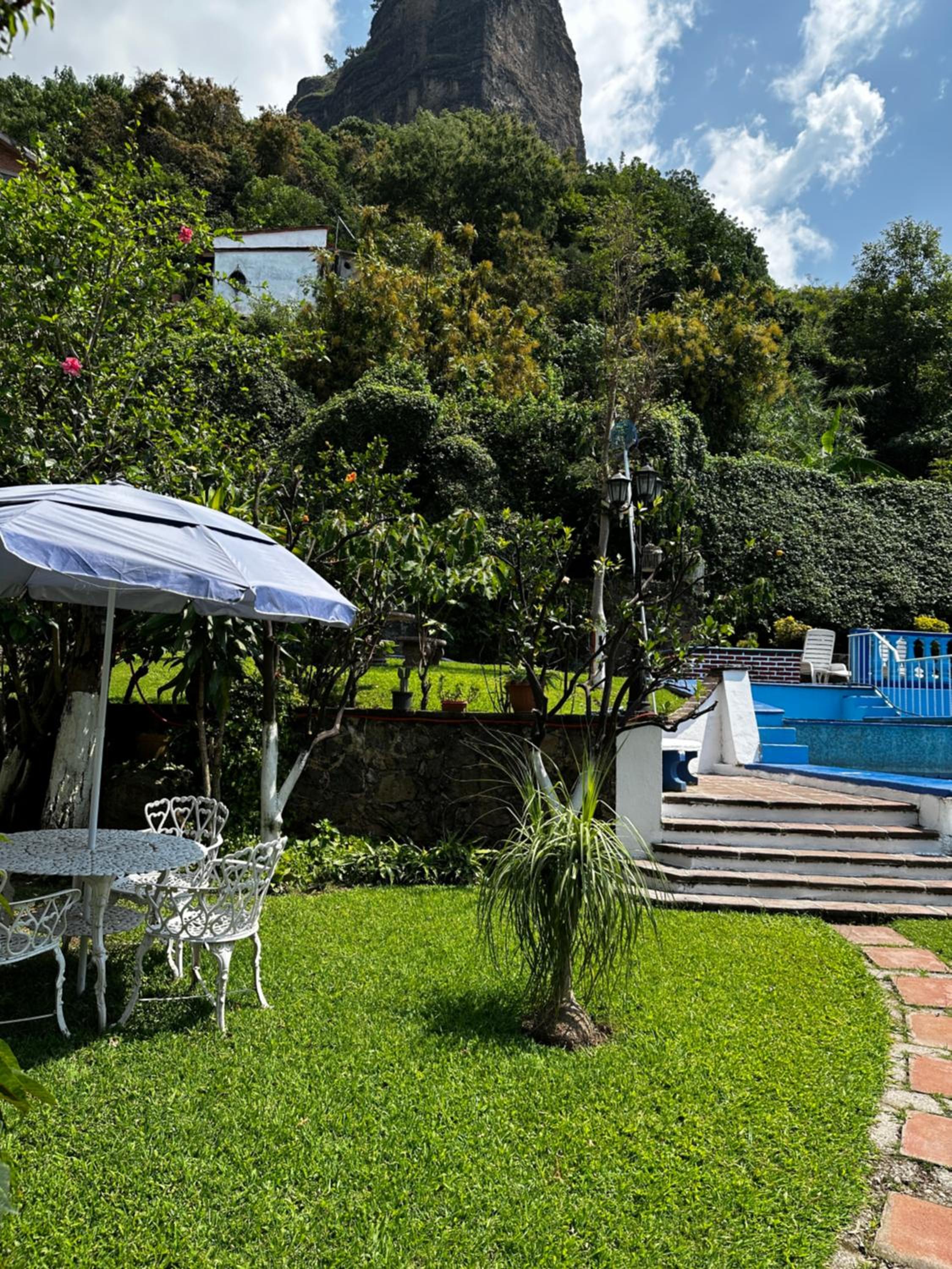 La vista está increíble, estás literalmente a los pies del Tepozteco. Tiene un jardín con mesitas en donde puedes desayunar muy a gusto con una vista preciosa.