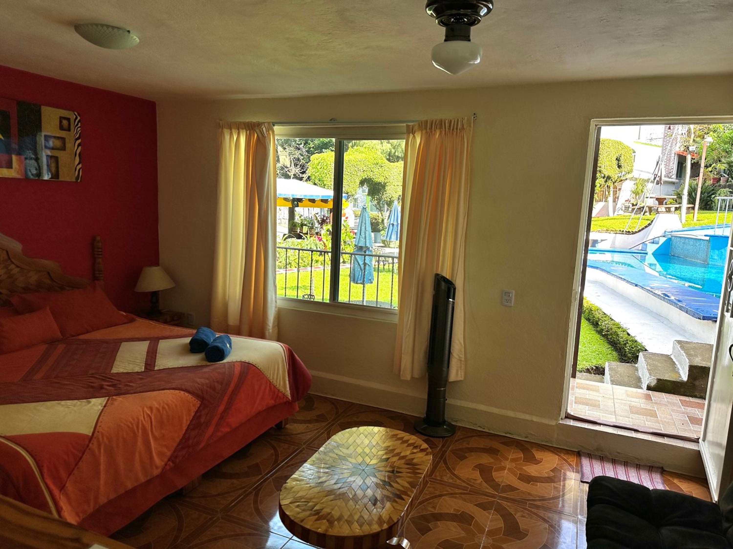 Muy bonito el lugar, con su jardín, alberca y área de descanso. Muy tranquilo, perfecto para descansar. El bungalow familiar, súper amplio 👍