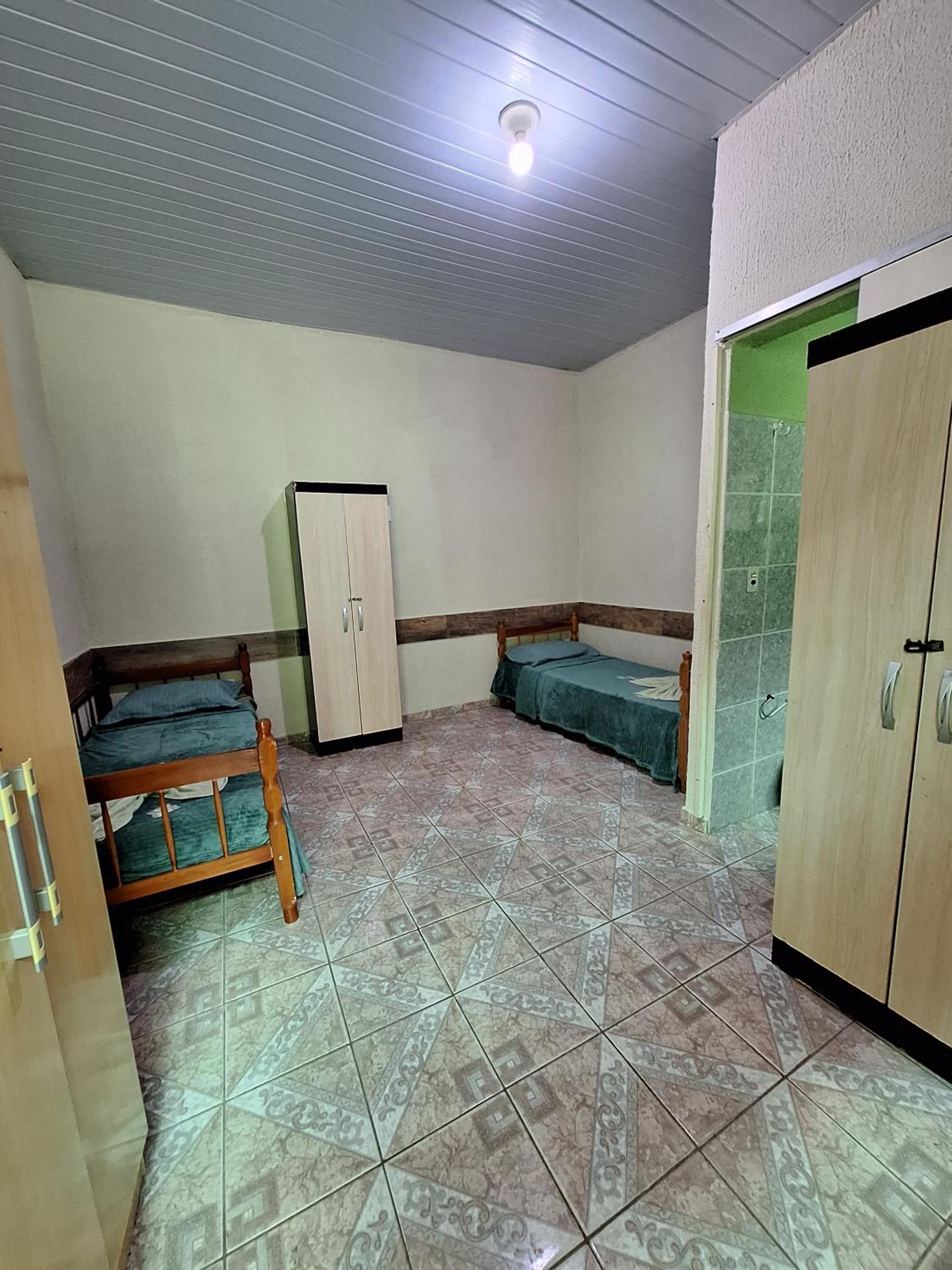 A pousada lembra muito aqueles hotéis de estrada, pelo menos o quarto que nós foi destinado.