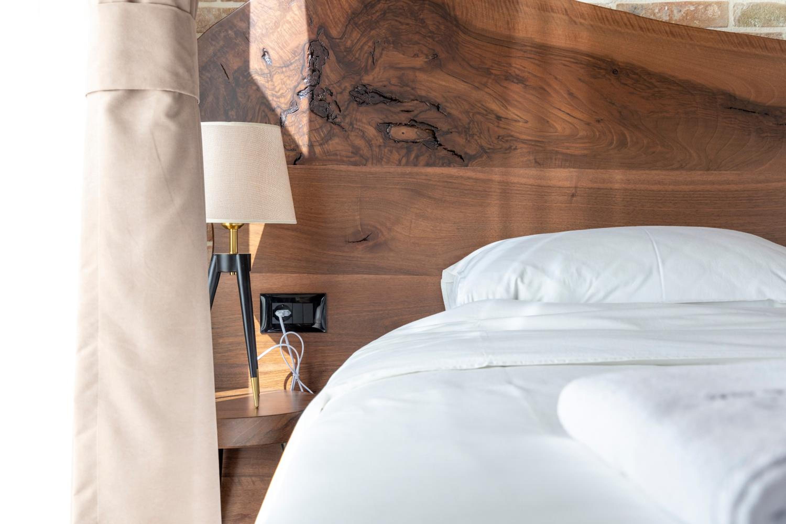 The location on top of the hill. The lake view. Design and use of materials in the room. The restaurant .