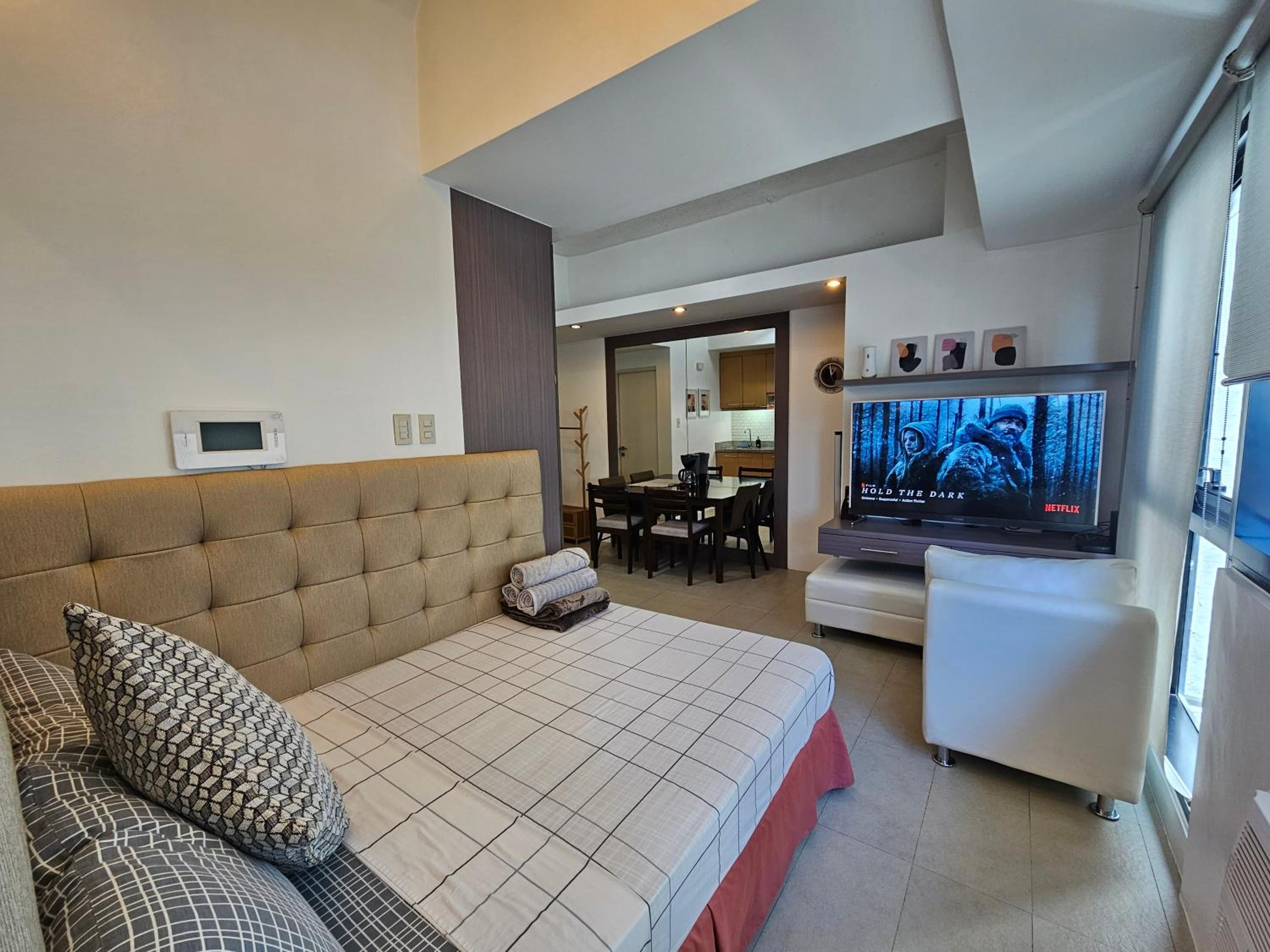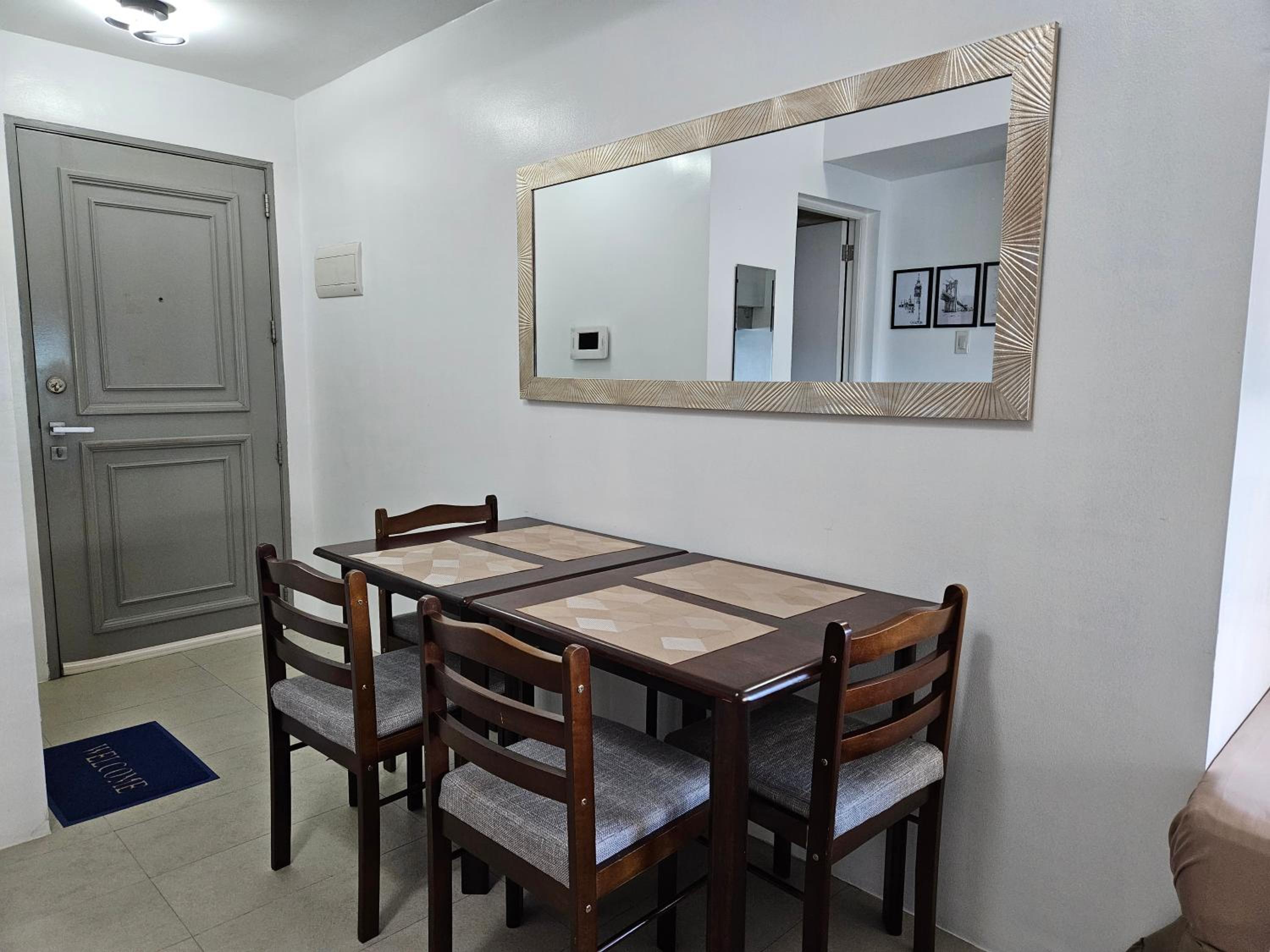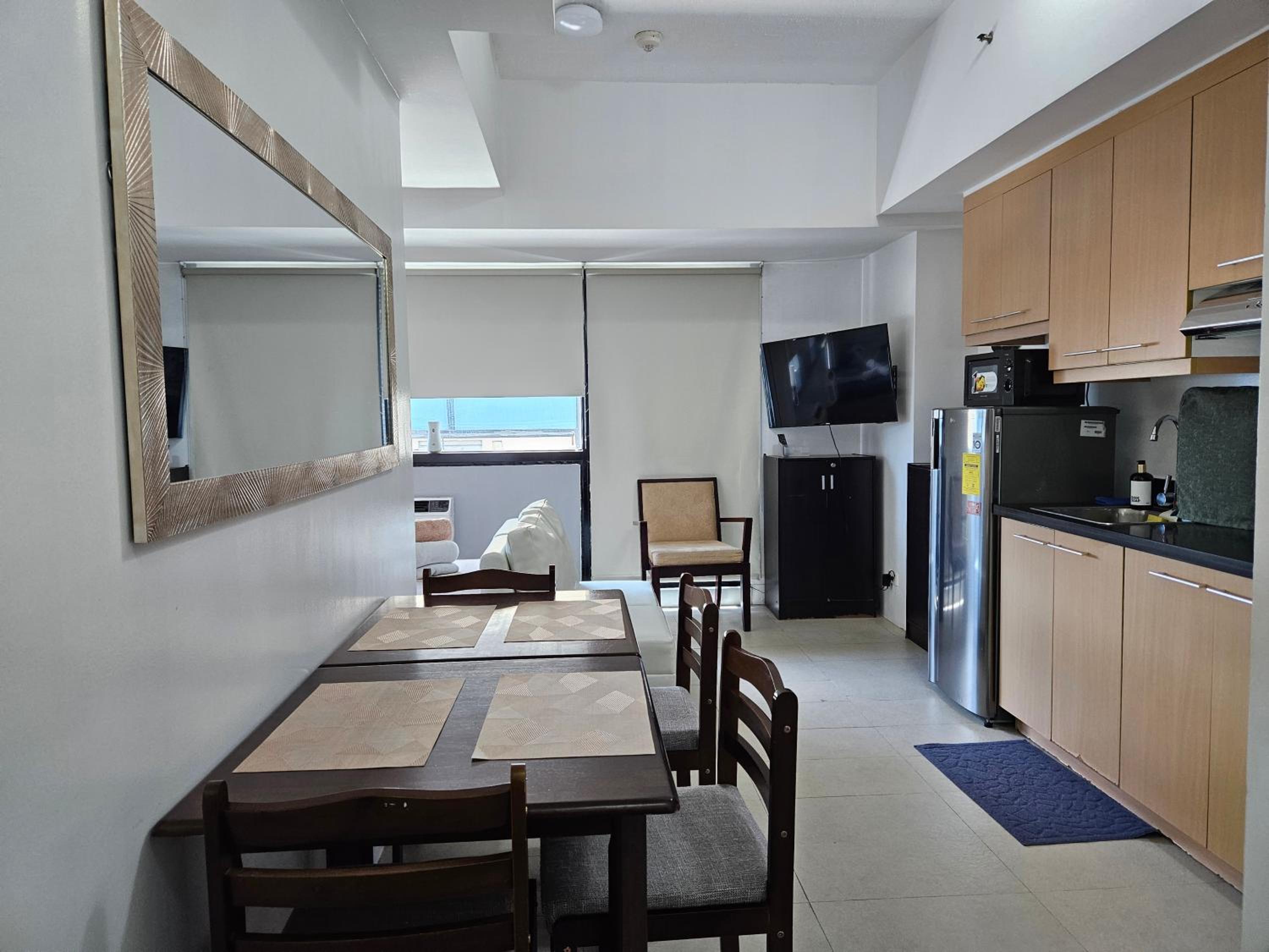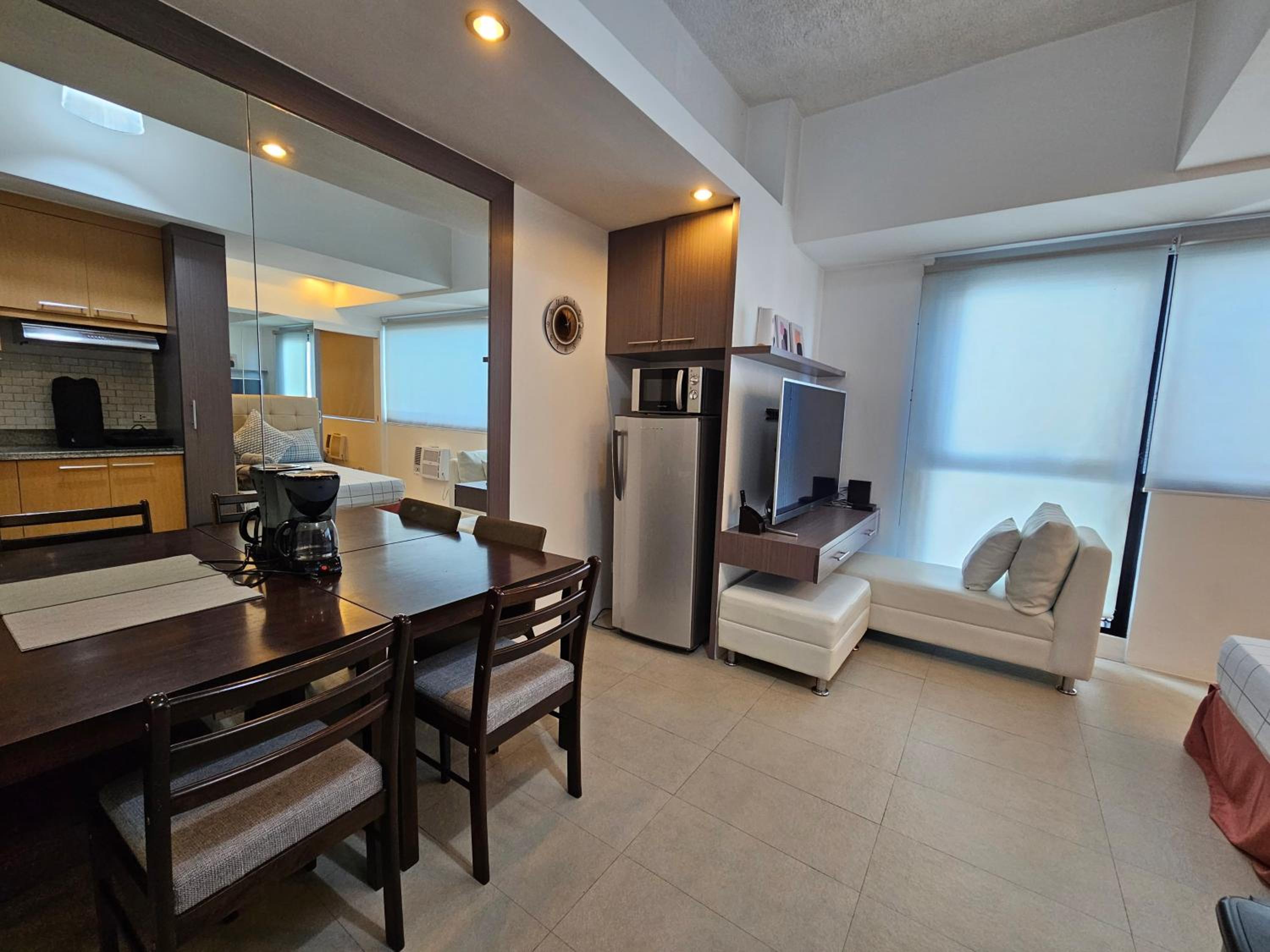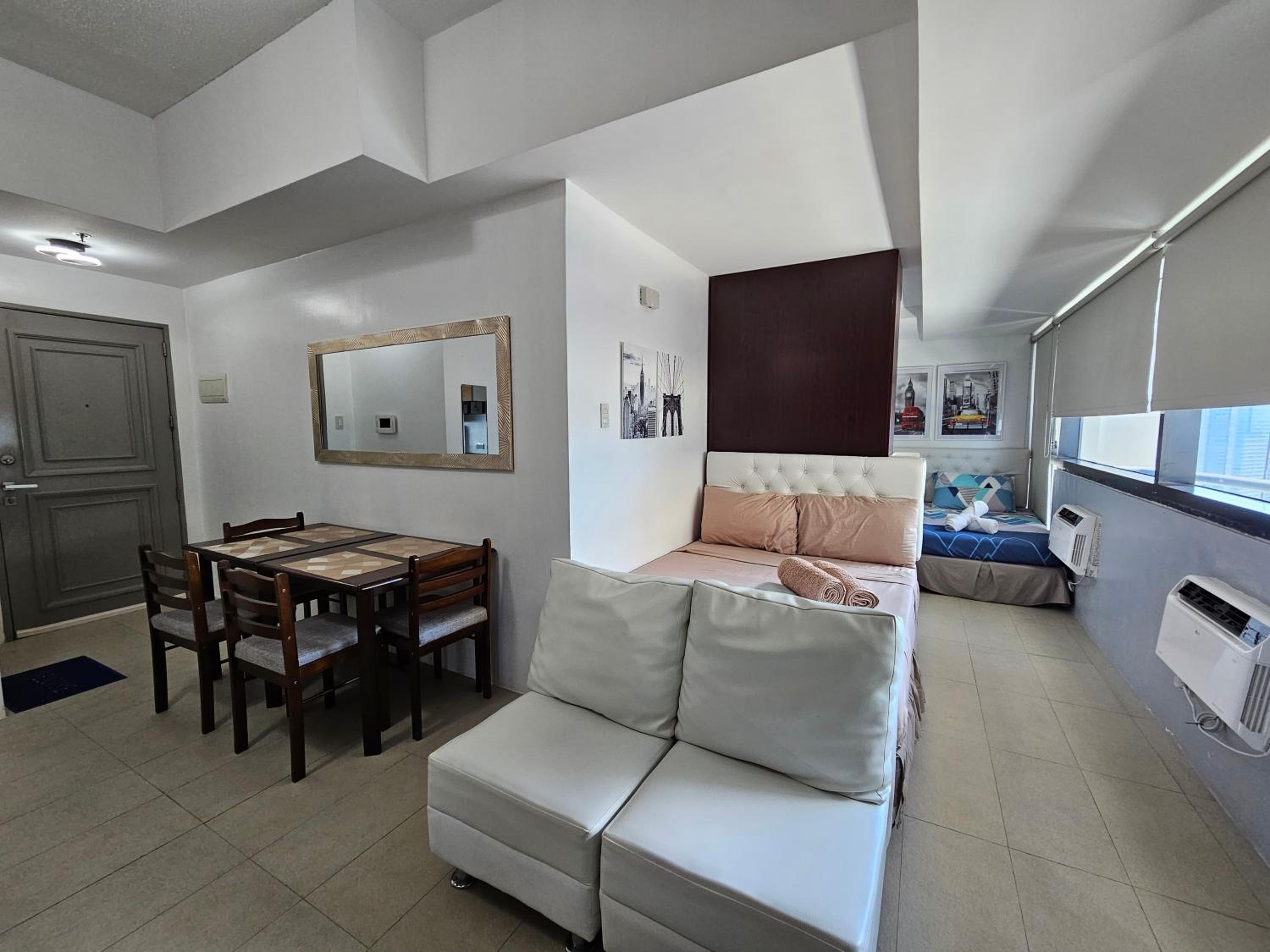 The host is very responsive and helpful. The location is excellent. It's literally opposite SM Megamall and also very easy to get into EDSA, the main highway. The room fits 4 people comfortably. They provide towels and linen. There's enough space for 3 check-in luggage and 4 carry-on. Good to find a big gallon of drinking water that I think you can bring downstairs or message the vendor and have a refill delivered to the room. Unfortunately, we did not have time to check out the pool. We were able to have laundry done downstairs for a good price. We will stay here again in our next visit.
