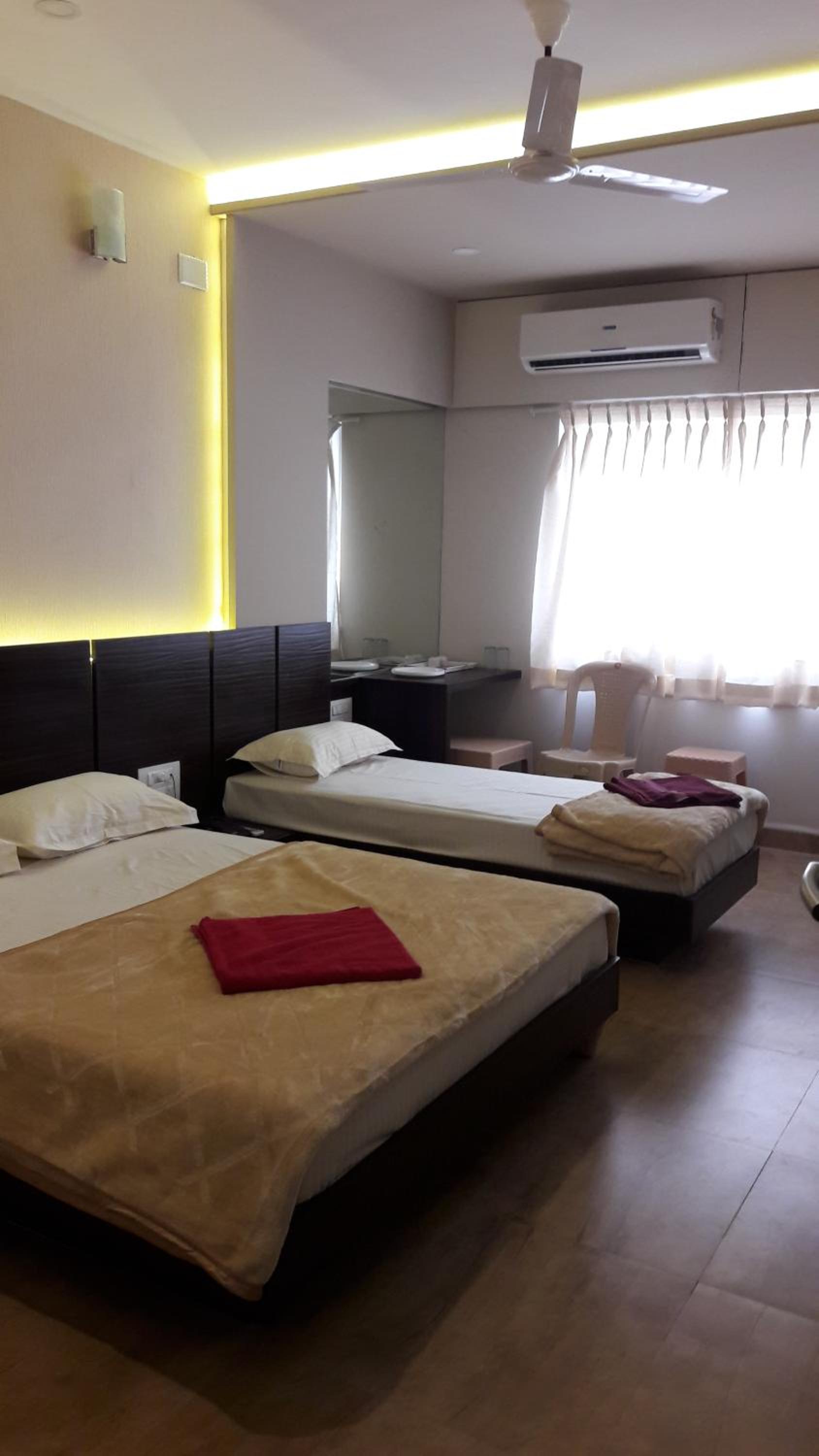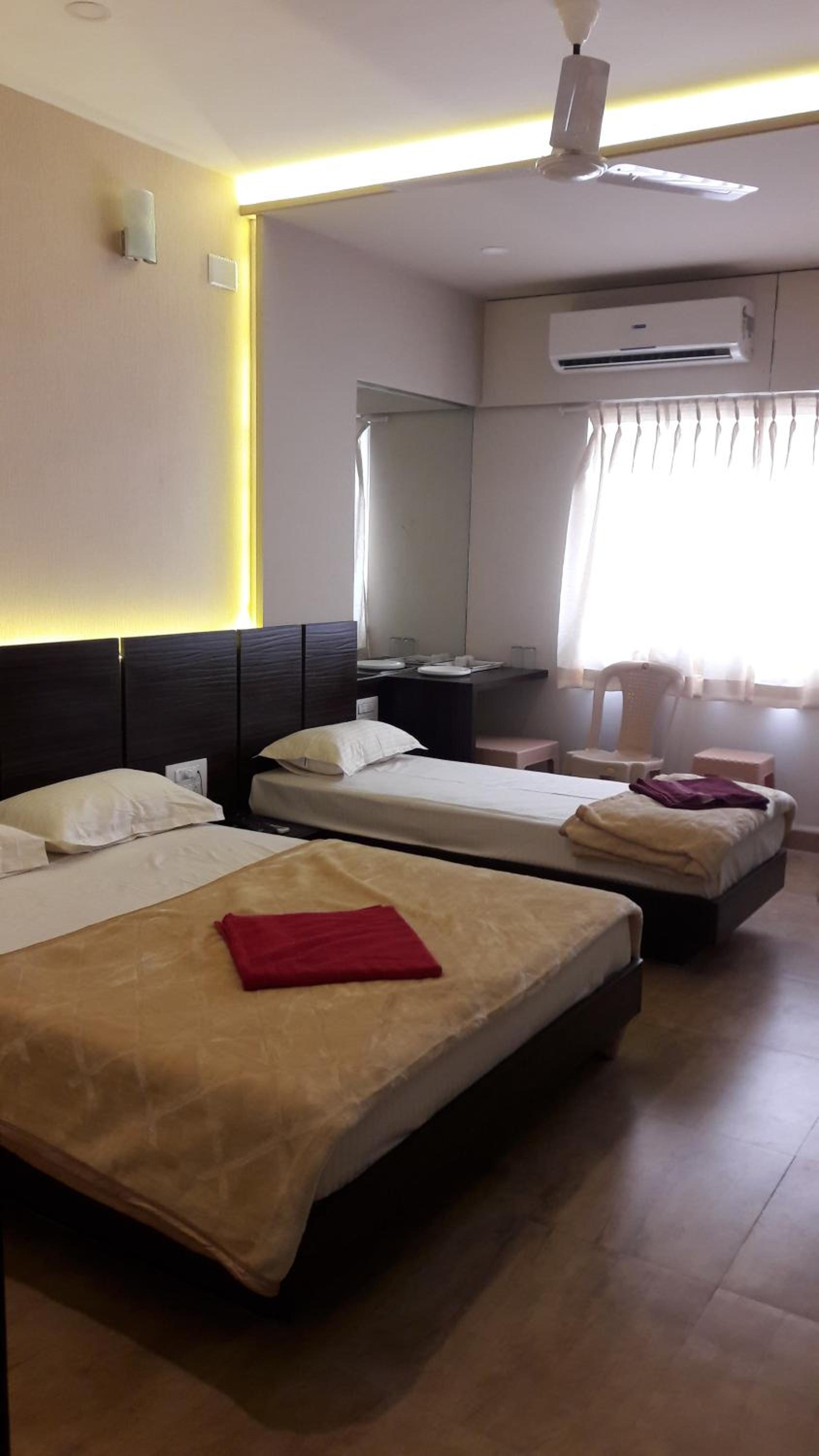 Luxurious Accommodation: Navaratna Palace in Belgaum offers a comfortable stay with air-conditioned rooms and flat-screen TVs.