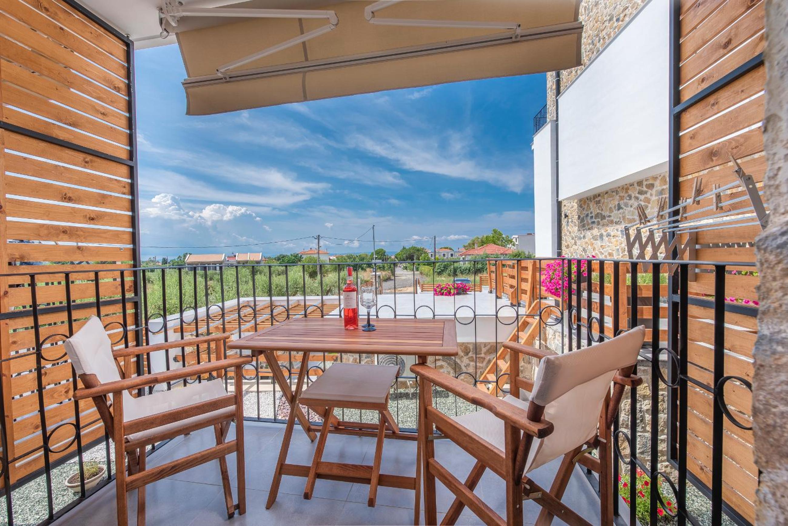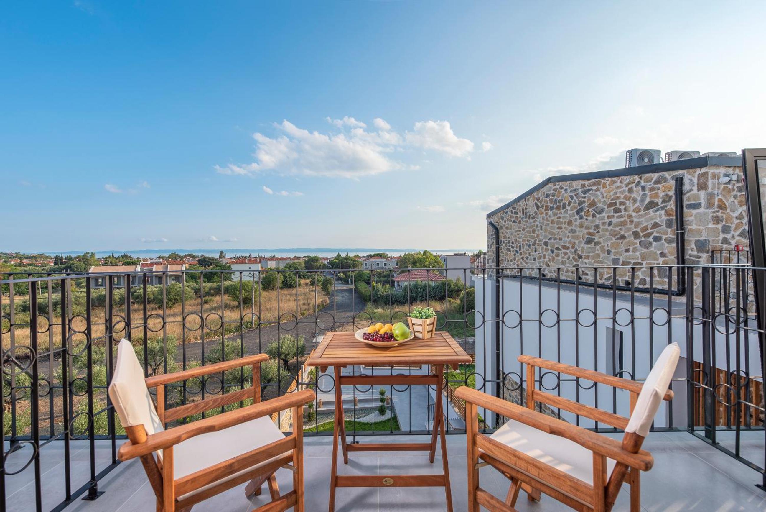 Dandelion Suites offers upscale 4-star sustainable aparthotel living in Nikiti, with a seasonal outdoor pool and stunning views of the pool. The units are elegantly designed with modern amenities, including air conditioning, flat-screen TVs, and fully equipped kitchens. Guests can enjoy their own private terrace or balcony overlooking the sea and mountains, providing a serene retreat.