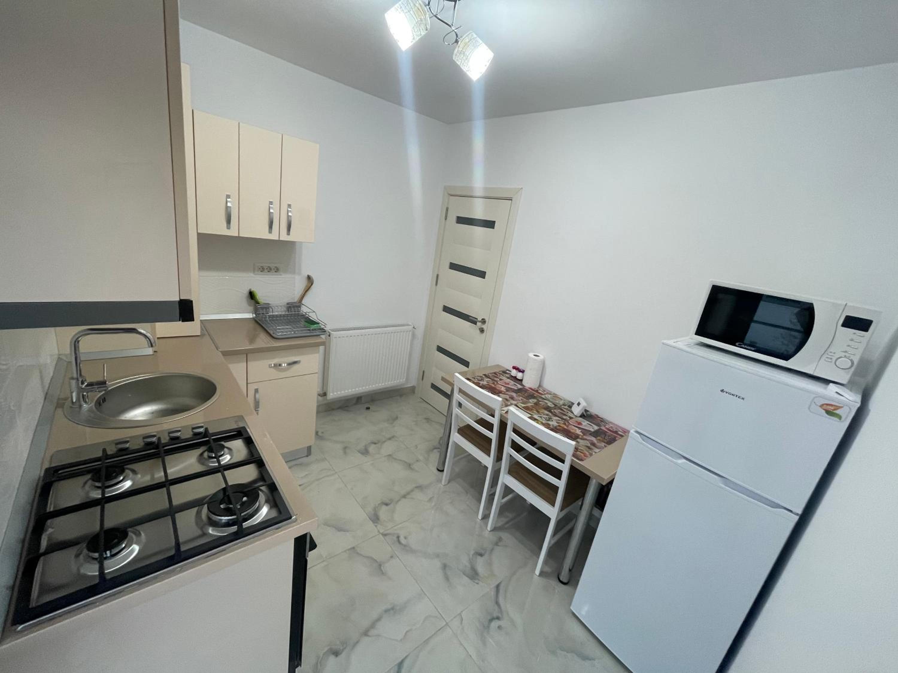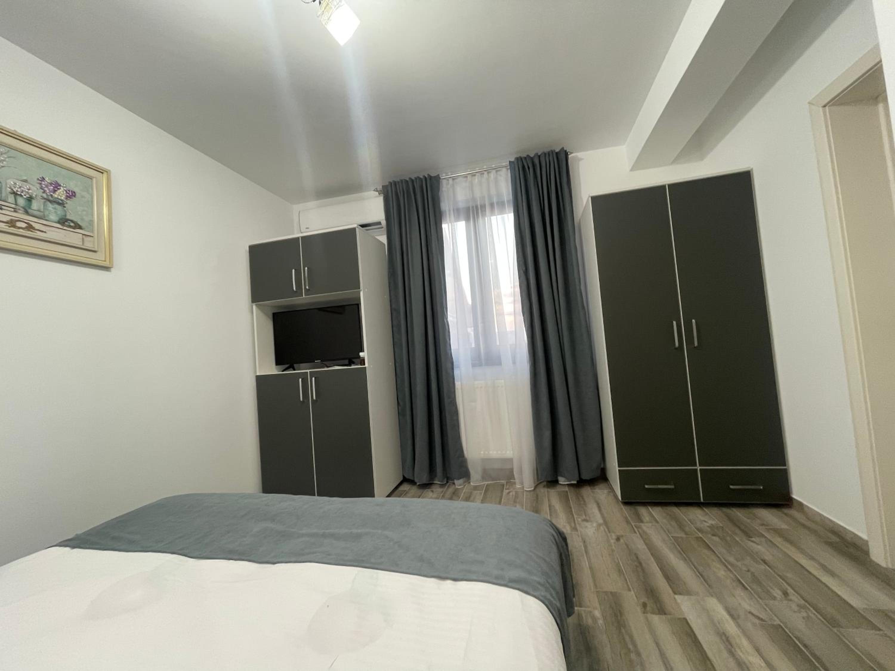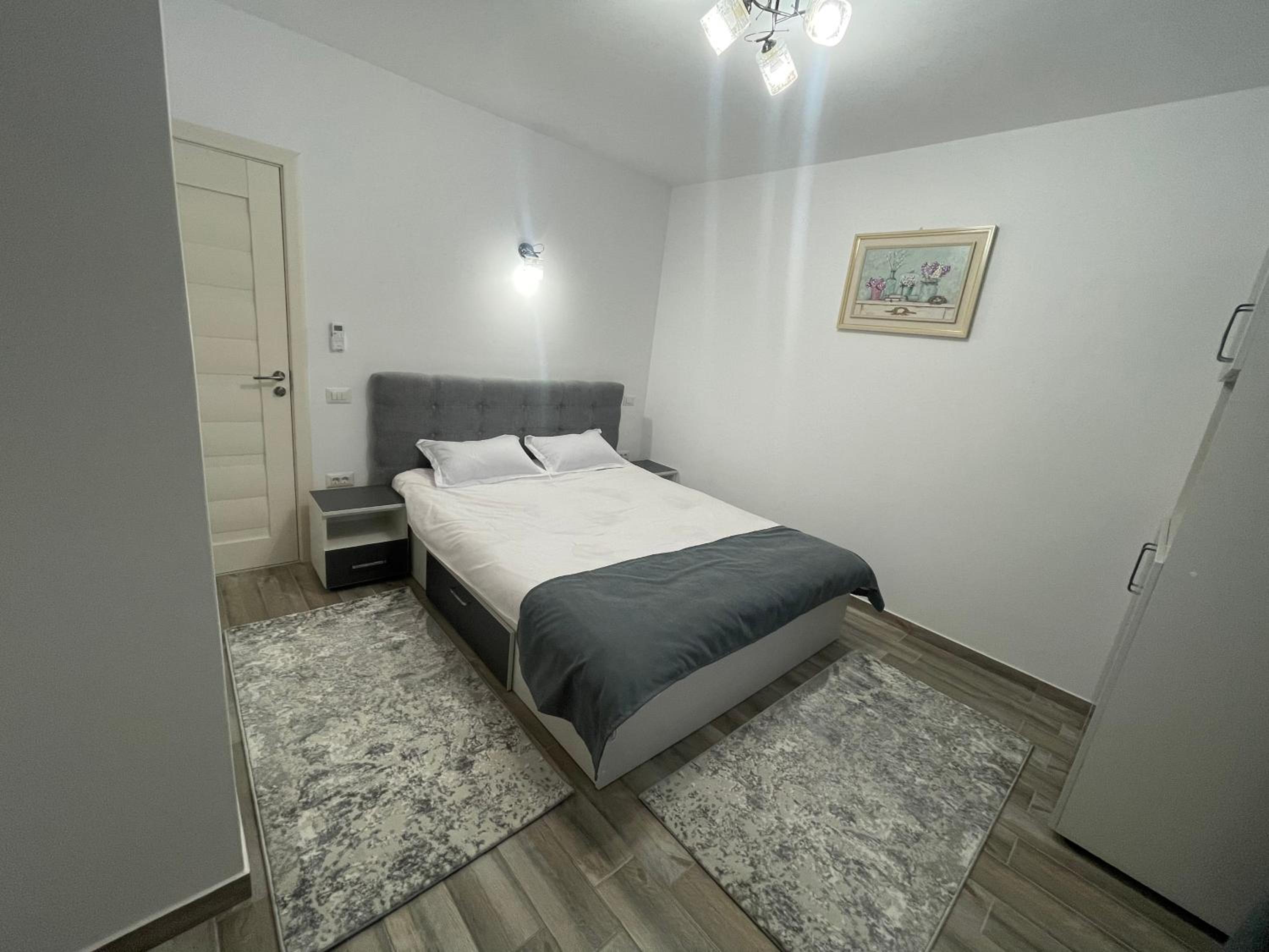 The location in brand new, quite neighbourhood- with new houses. Very near to Bucharest only 15 km. New building with spacious rooms. The apartment includes two bedrooms connected with an equipped kitchen. There is a microwave, washing machine, fridge, plates and cups, balcony with table and chairs. The bathroom is clean, with shower cabine. There is a vanity set, a lot of shower gel and soups. In some apartmanets there is and hairdryer. The host is a polite young girl who leaves in the pink house across the street. In the same house there is a small shop. My daughter has a birthday and they were so kind to order us cake in the latest hours of Friday.
