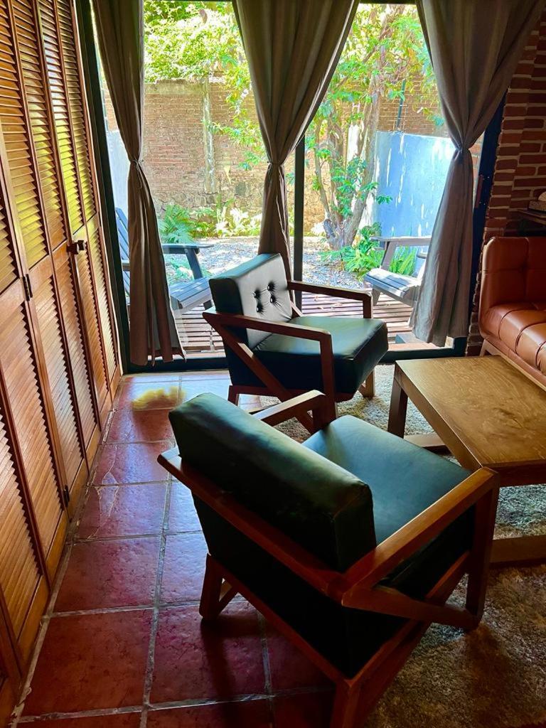 La habitación muy reducida, pero con un lindo patio.