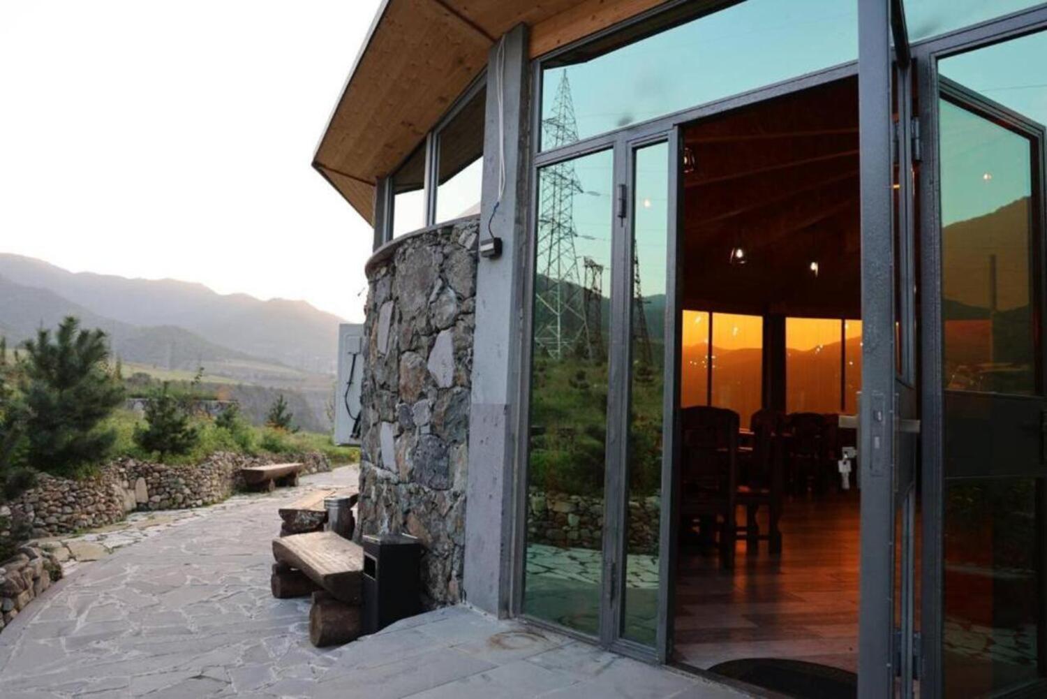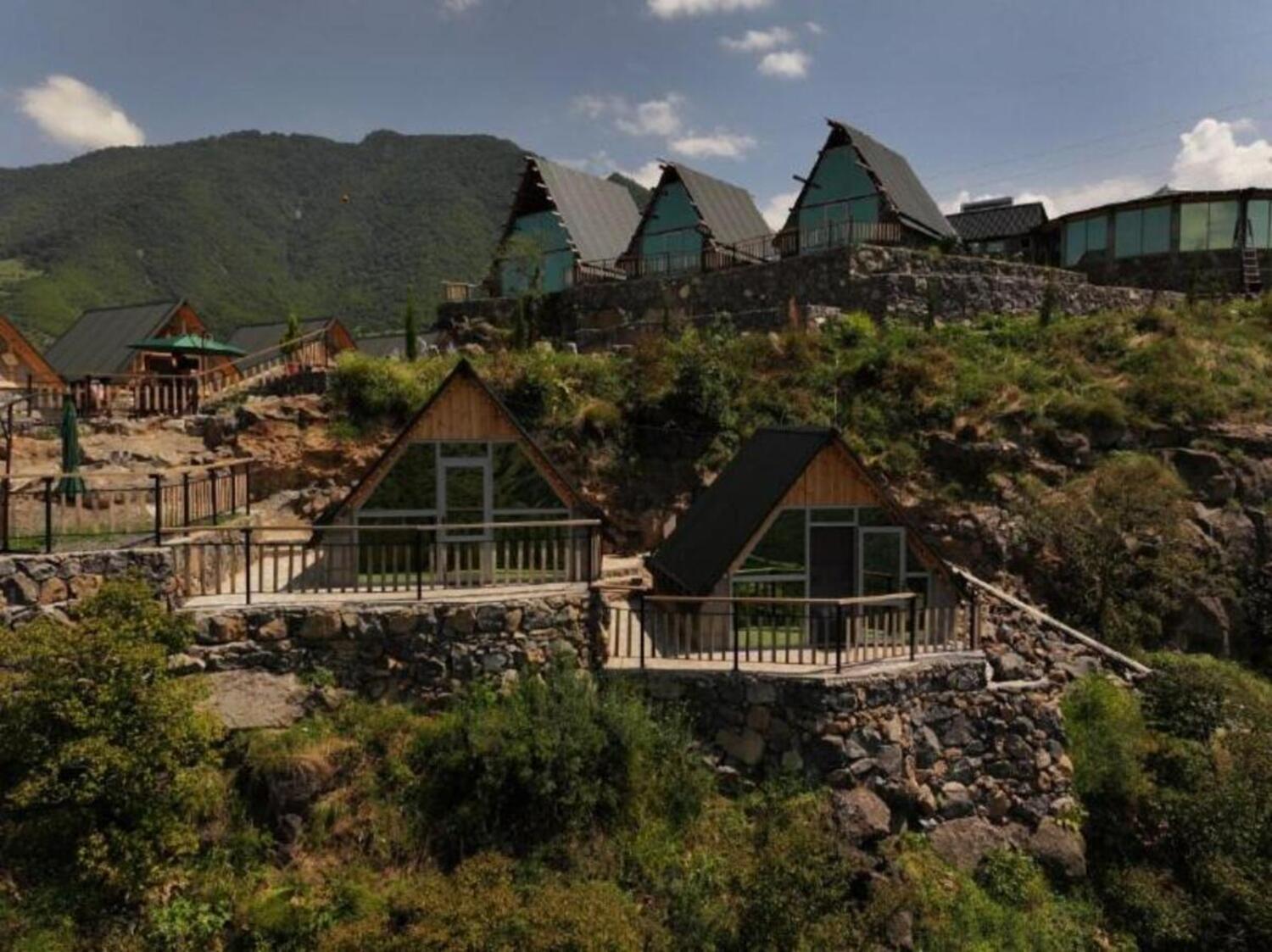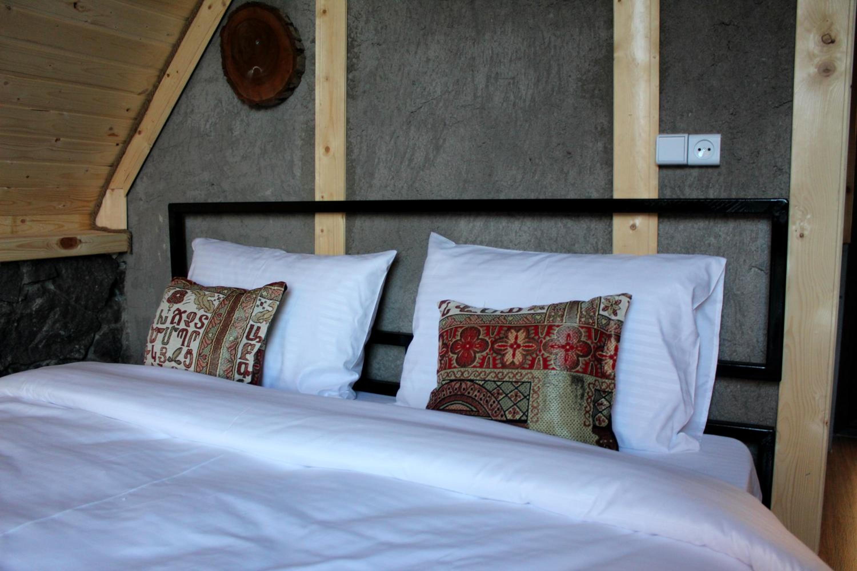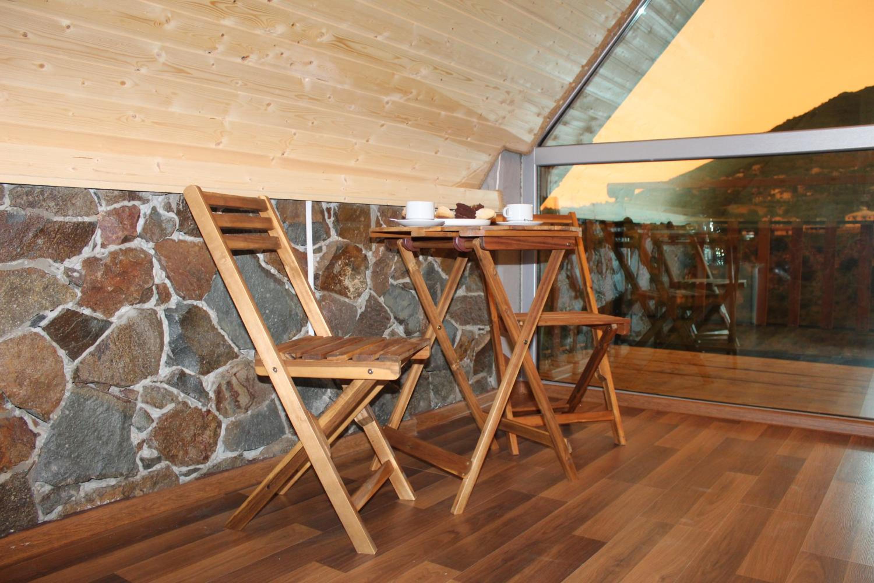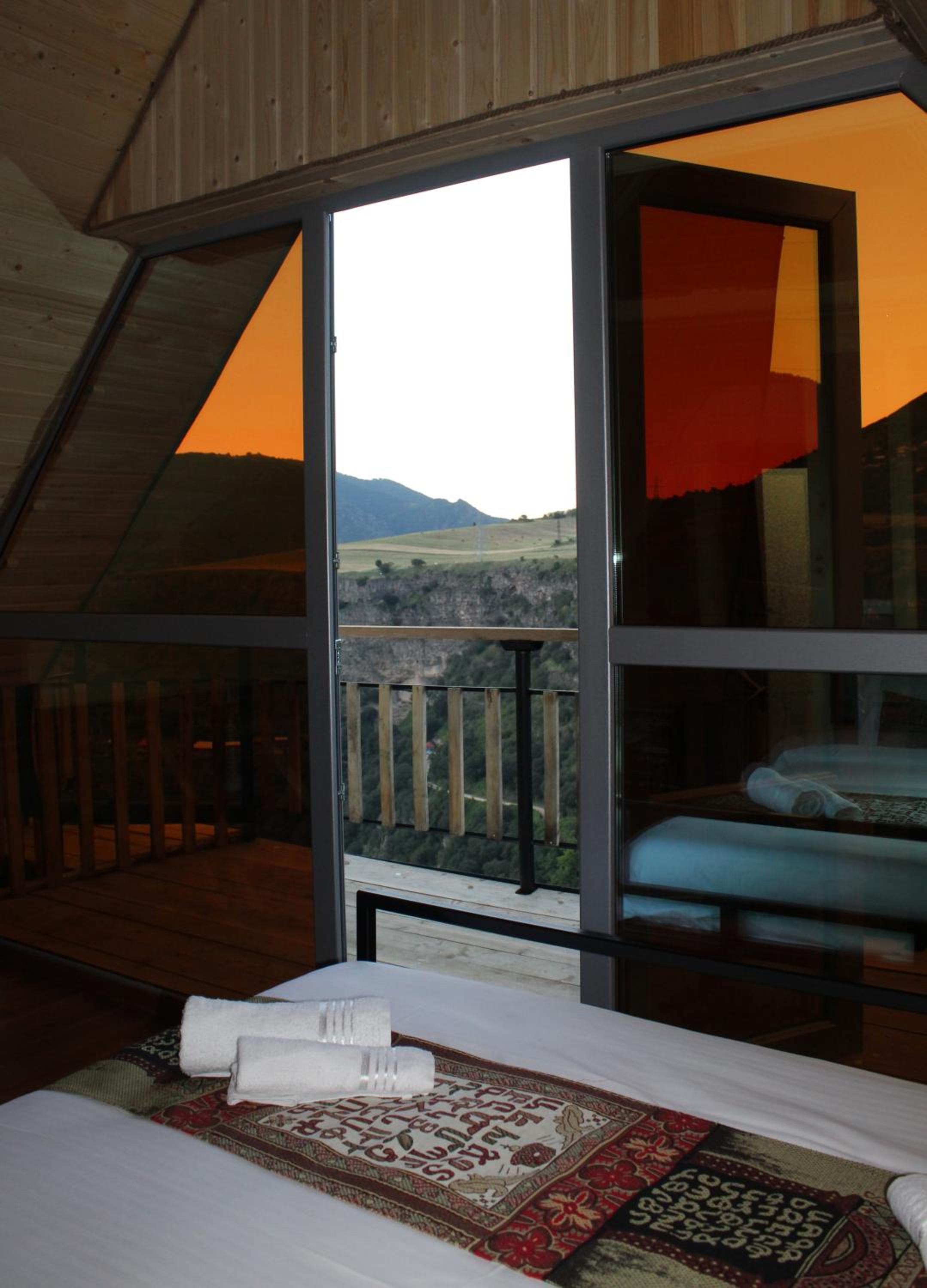 It has A shape separated wooden houses with panoramic views of the mountains. Very clean and exotic style of the room. The host was going out of his way to make us feel welcomed and at home, which was very touching. Overall it was absolute bliss to find place like this to enjoy the nature, explore historic places around, experience the luxury.