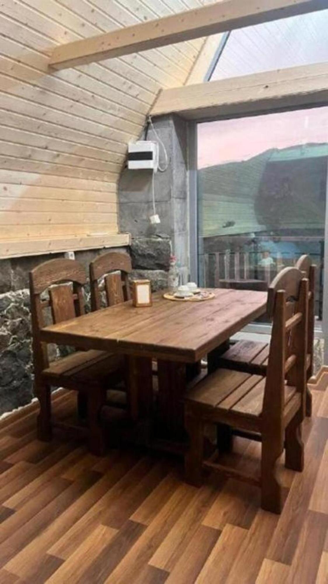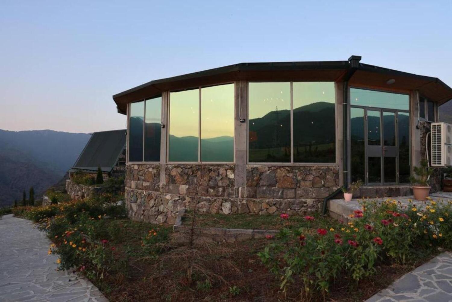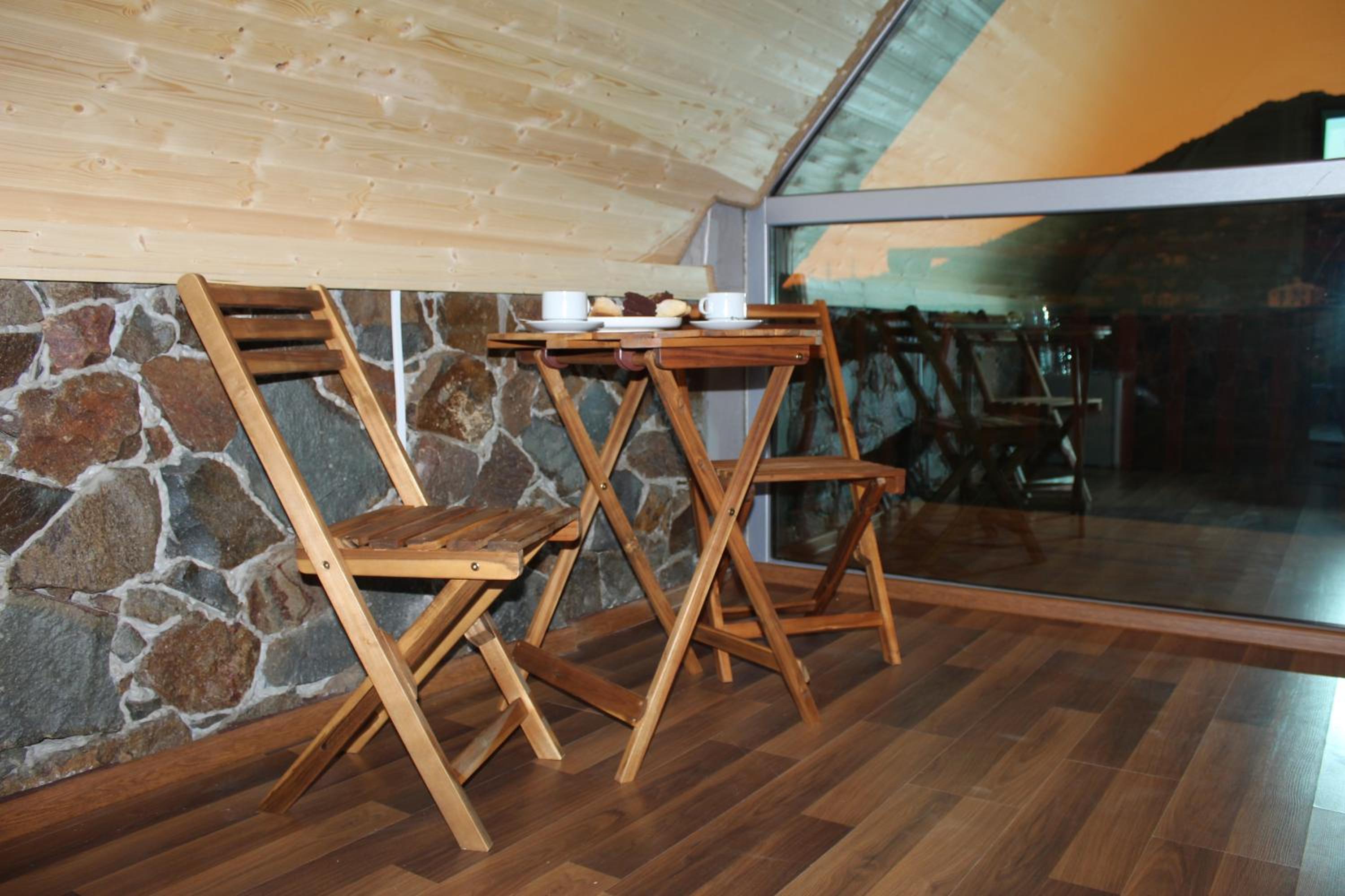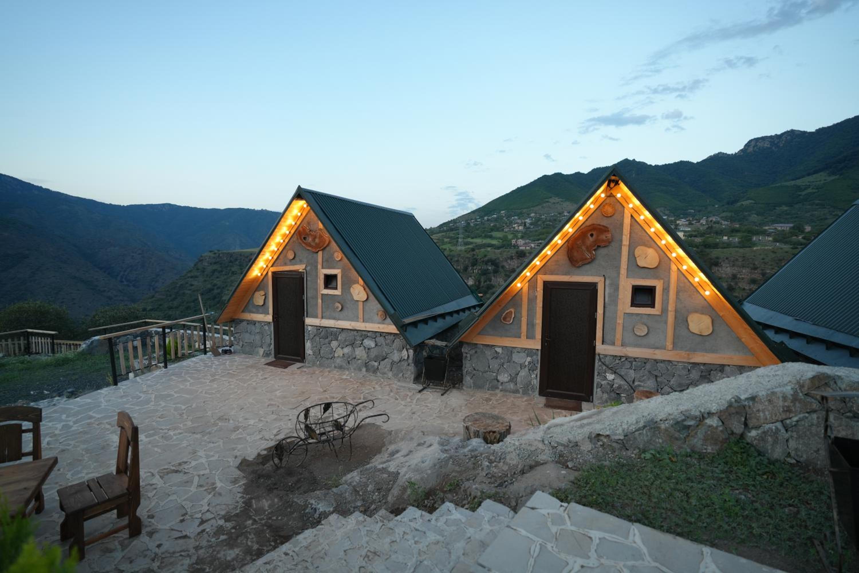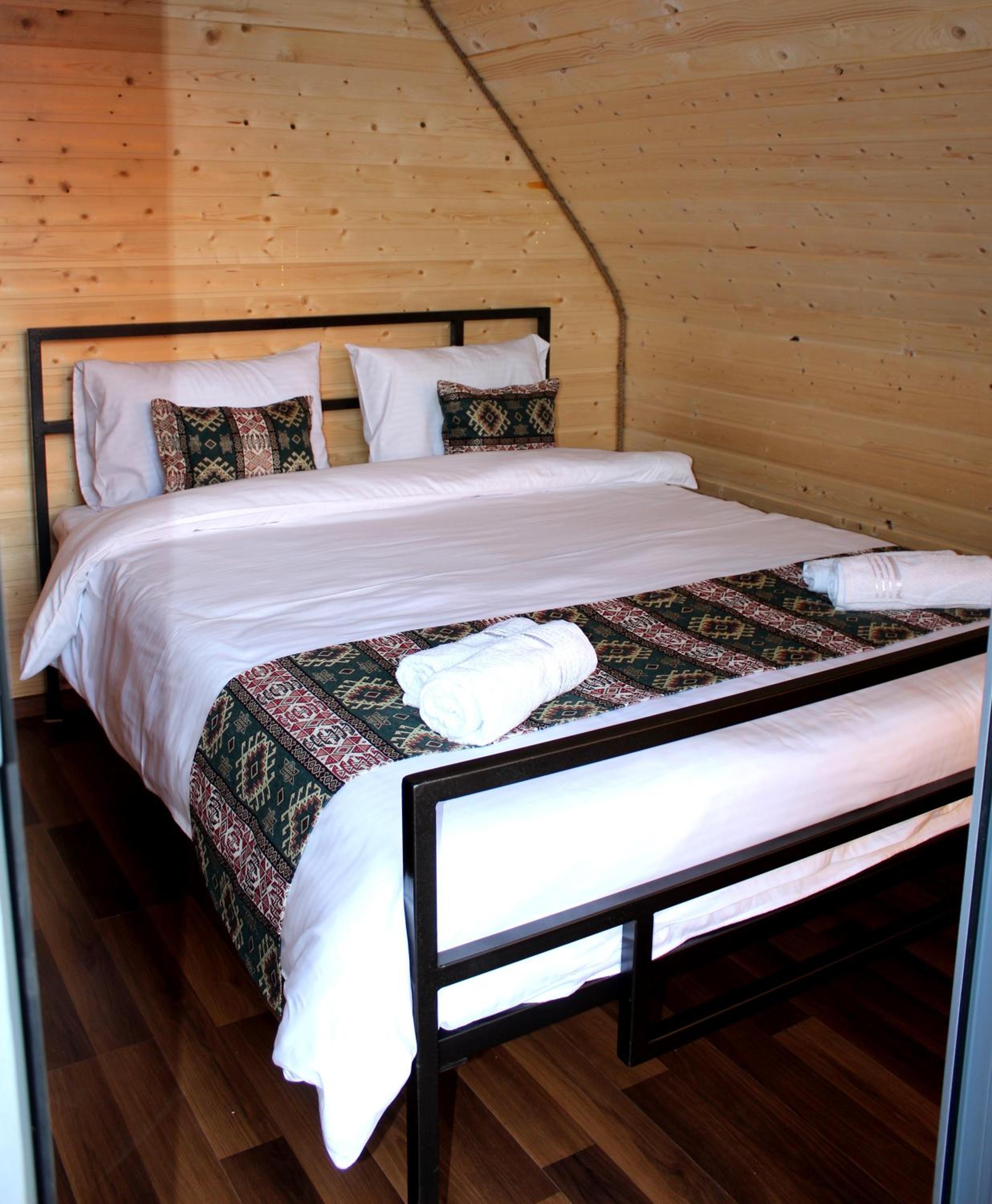 It has A shape separated wooden houses with panoramic views of the mountains. Very clean and exotic style of the room. The host was going out of his way to make us feel welcomed and at home, which was very touching. Overall it was absolute bliss to find place like this to enjoy the nature, explore historic places around, experience the luxury.