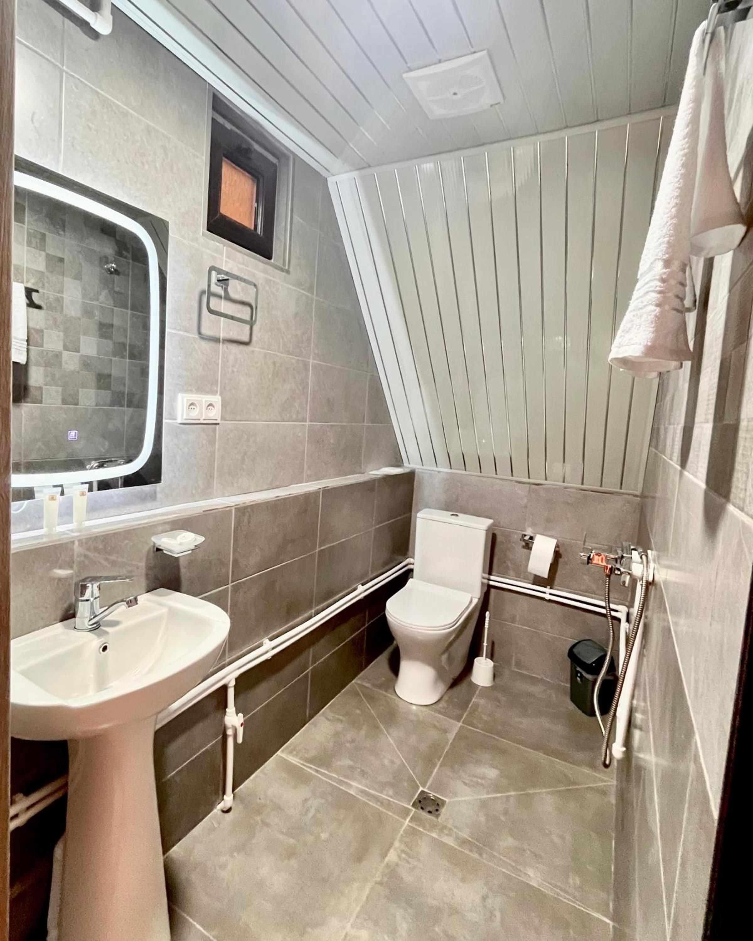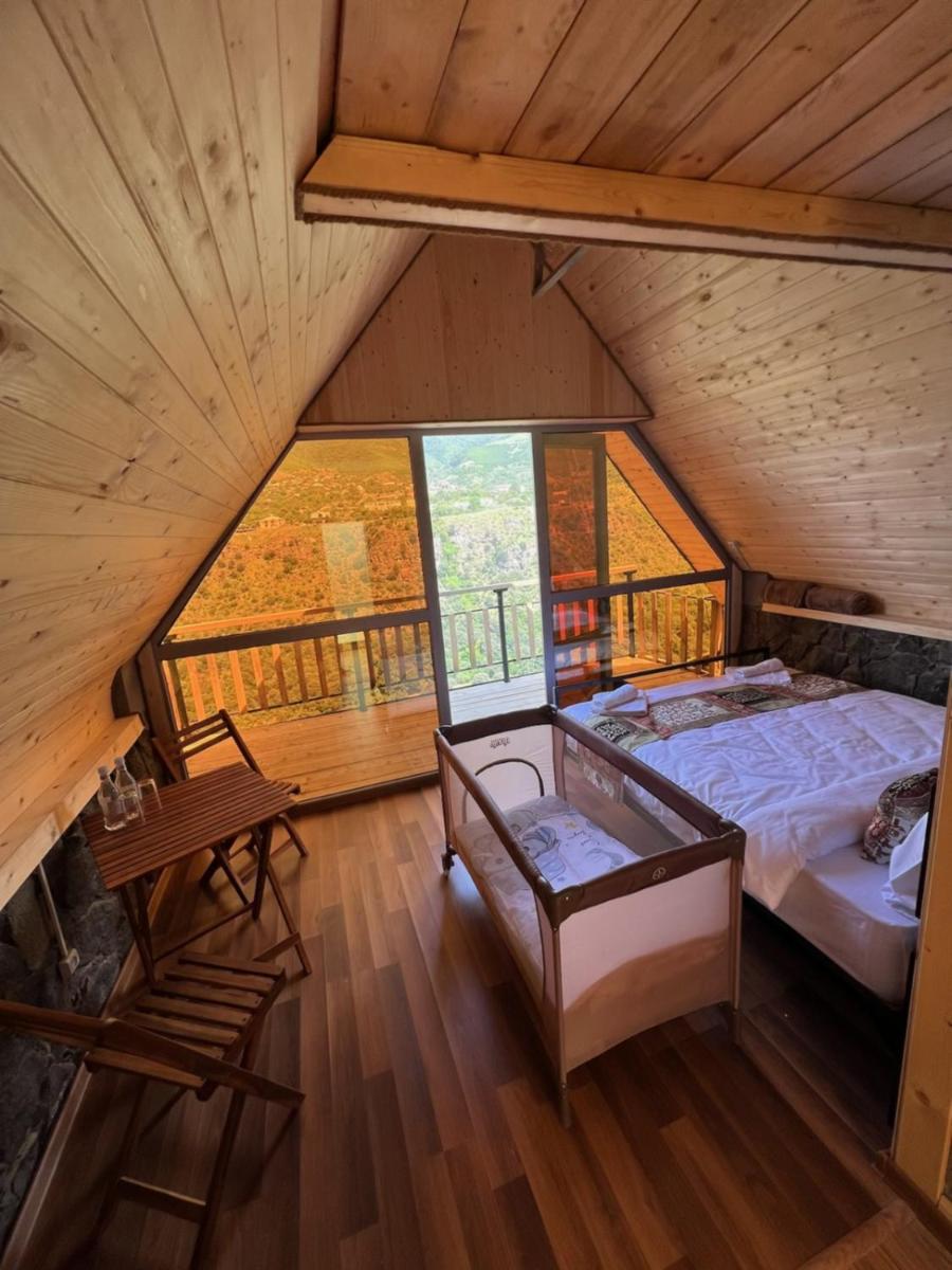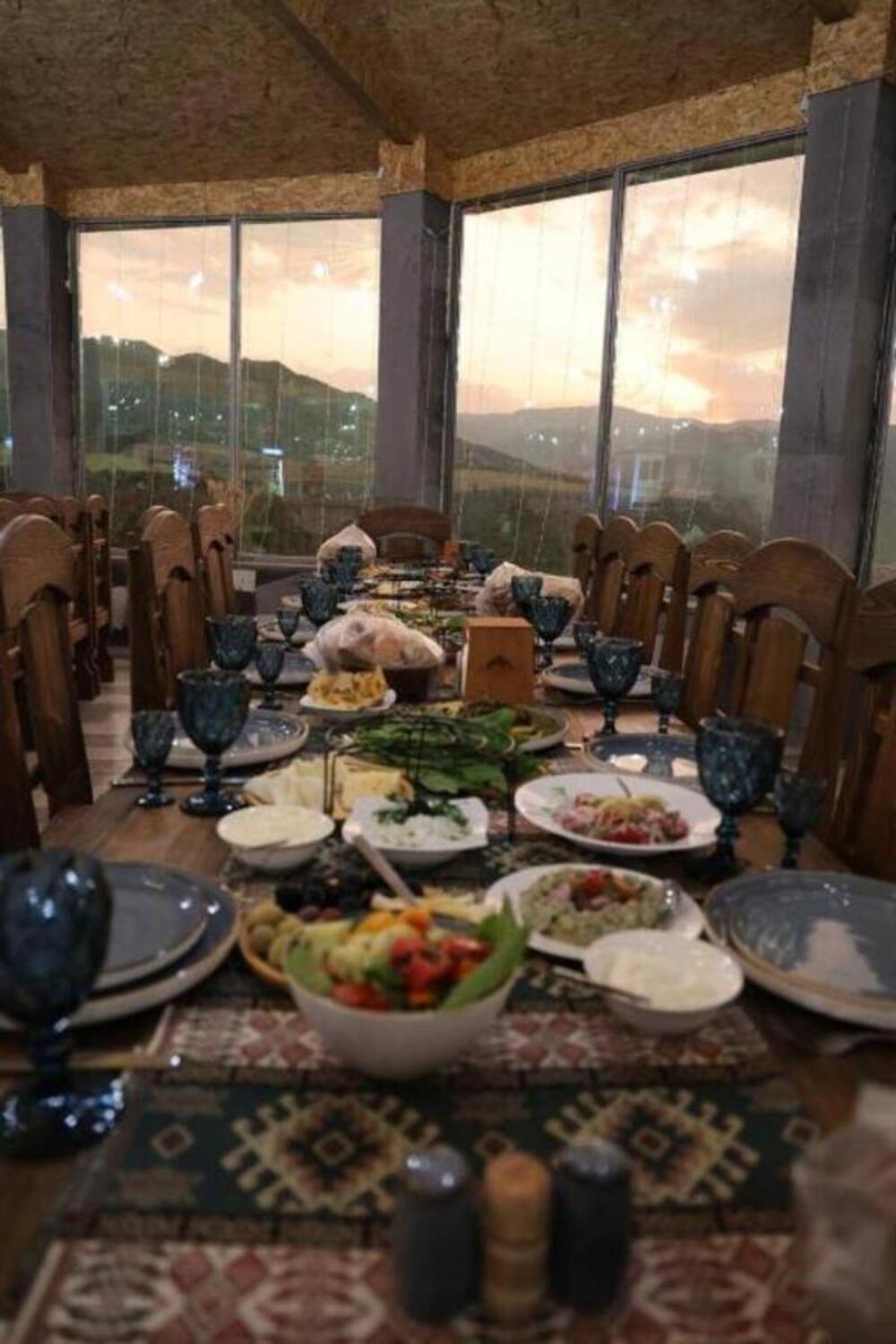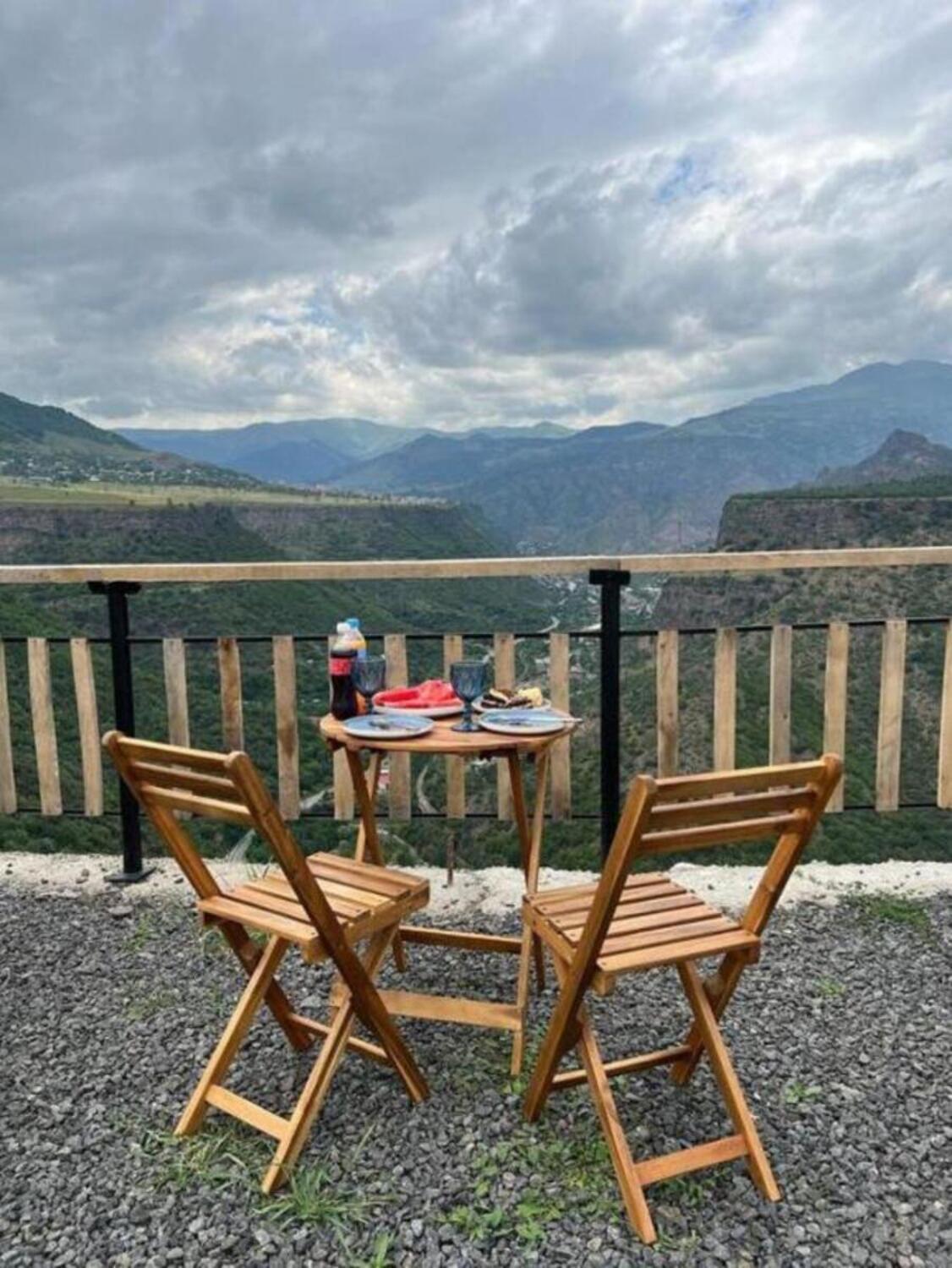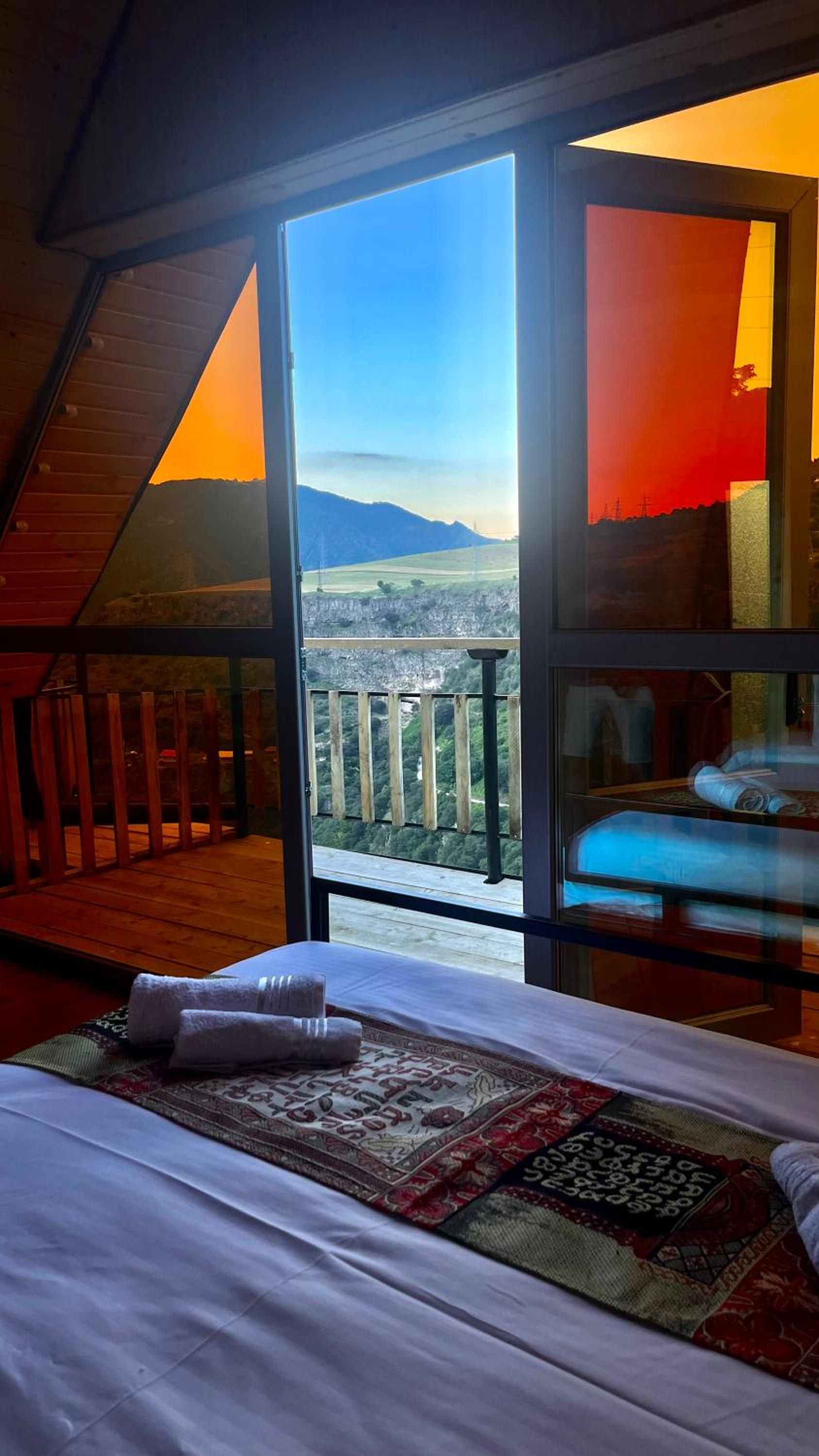 It has A shape separated wooden houses with panoramic views of the mountains. Very clean and exotic style of the room. The host was going out of his way to make us feel welcomed and at home, which was very touching. Overall it was absolute bliss to find place like this to enjoy the nature, explore historic places around, experience the luxury.