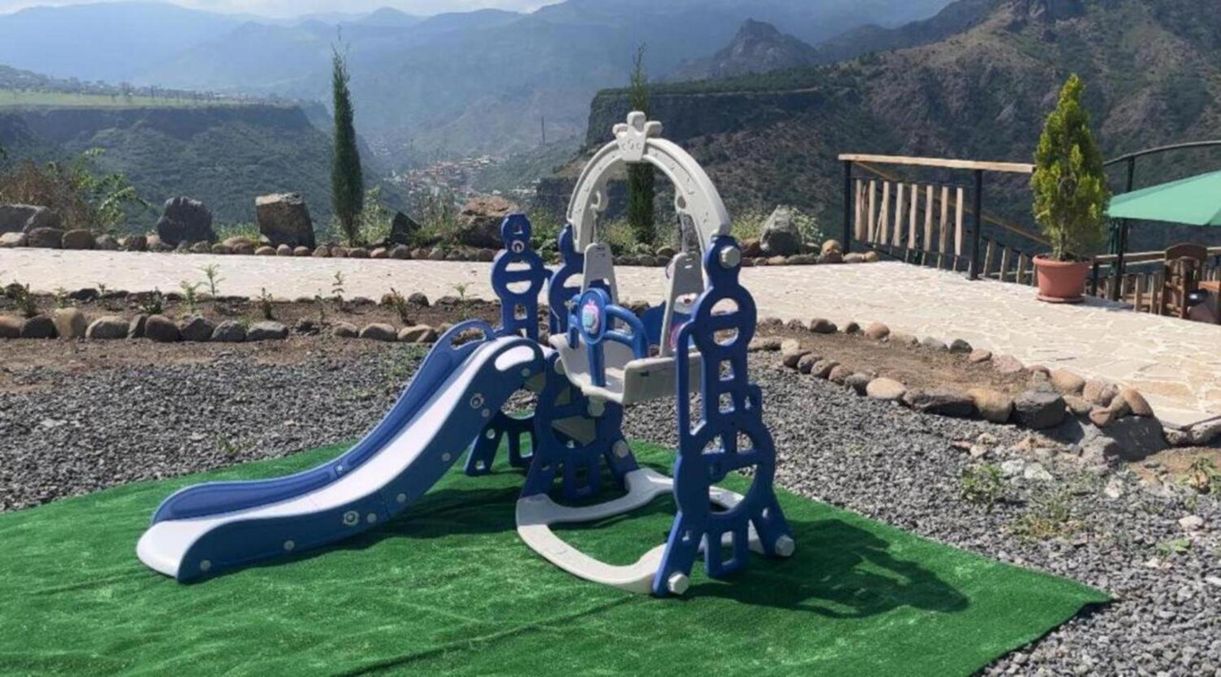 Потрясающее расположение на краю утеса. Вид из номера с панорамным остеклением. Небольшая, но очень продуманная территория. Есть детская площадка, качели для взрослых, столики, чтобы попить чайку на природе. Кондиционер в номере и на обогрев и на охлаждение. Очень чисто в номере. Гостеприимный персонал.