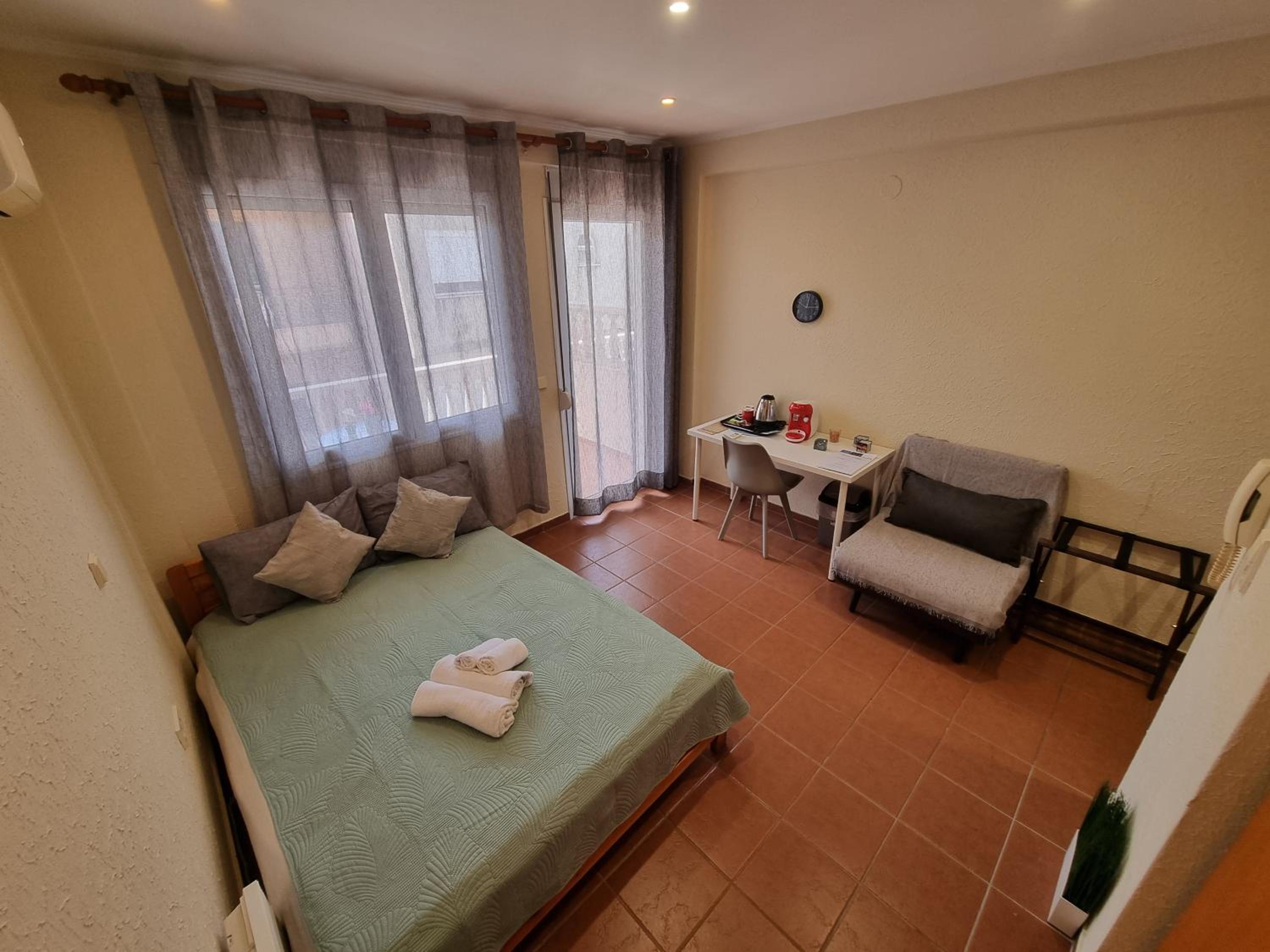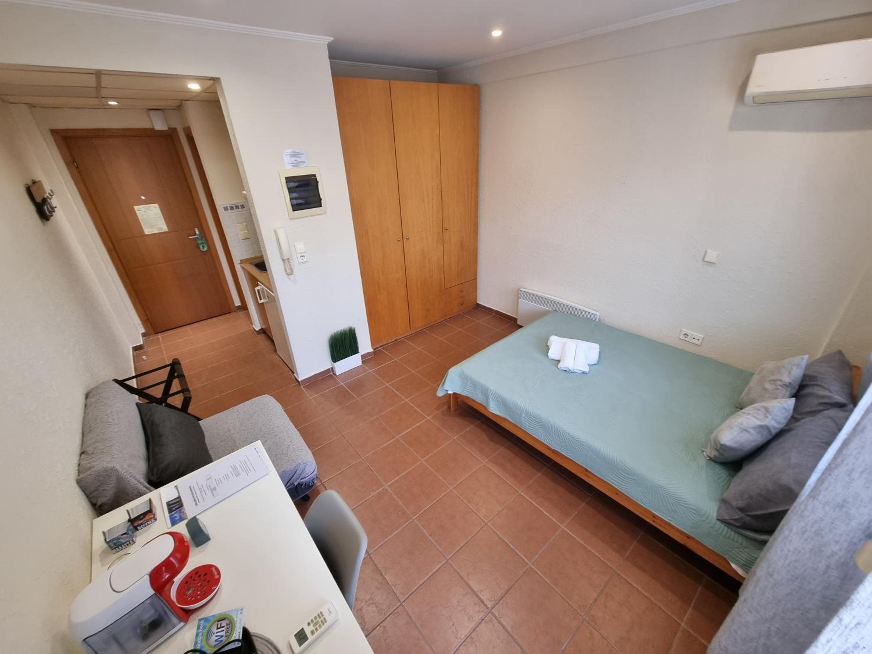 Room was clean and very well-equipped, great location for parking, contact-less check in and check out, quiet apartment hotel, easy access to motorway, nice and helpfull staff, 10min walk from town centre, 15min drive from Paralia and Olympic beach.