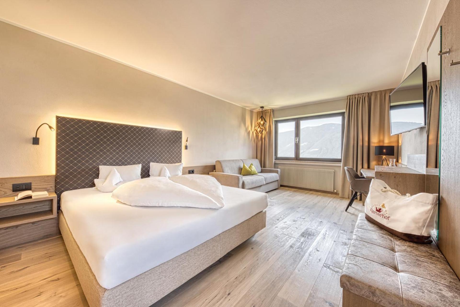 Escape to the charming Hotel Klarnerhof in scenic Scena, where comfort meets Alpine elegance. Indulge in Wellness: Enjoy complimentary access to the fitness area and indoor pool. Savor Local Flavors: Delight in Tyrolean and international dishes at the on-site restaurant. Relax and Unwind: Take in the stunning mountain views from your panoramic balcony. Book your stay for a memorable Alpine retreat at Hotel Klarnerhof today.