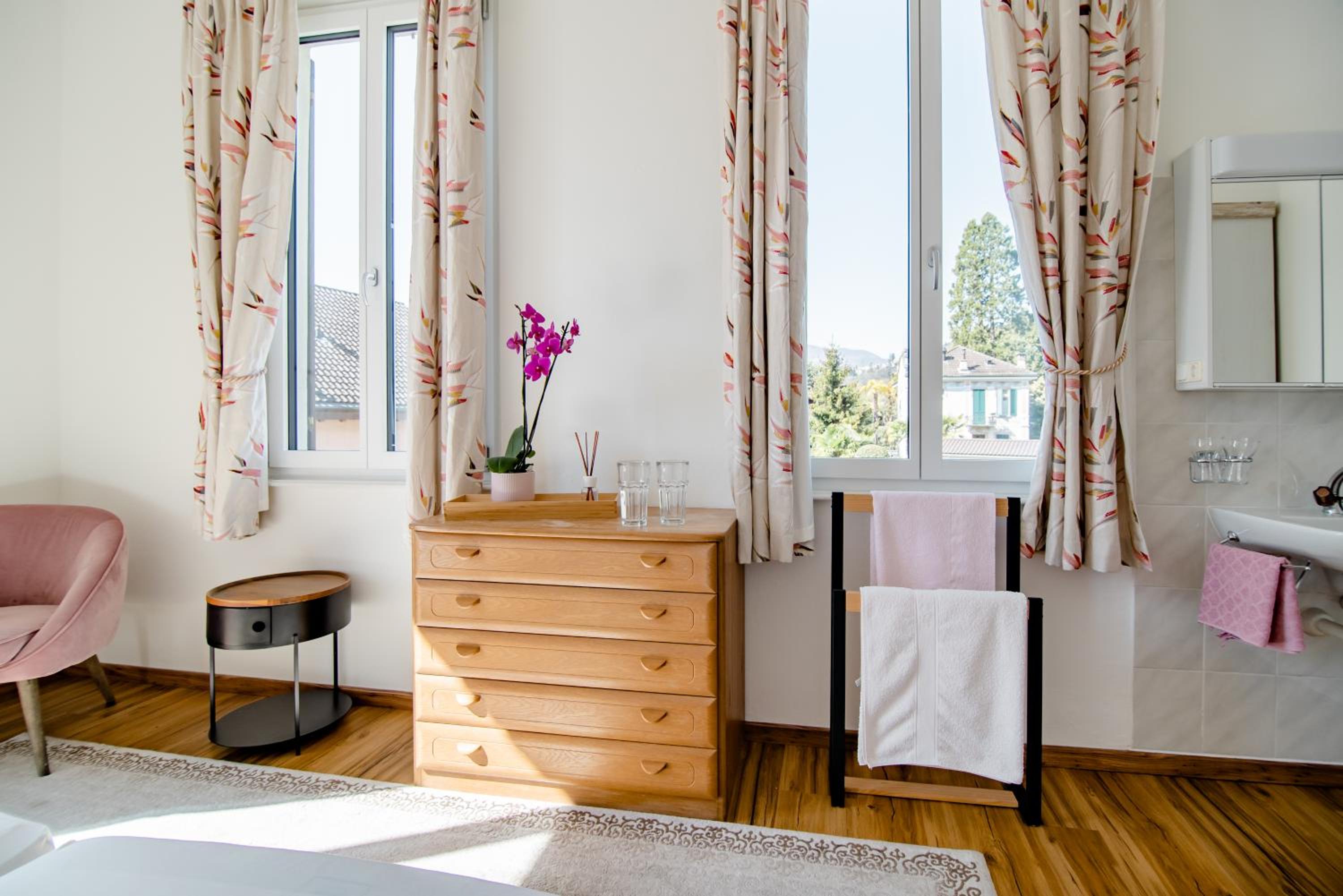 Posizione fuori dal centro di Lugano ma raggiungibile in 10 minuti a piedi. Camera grandissima, comoda e con un carinissimo balcone in cui è possibile mangiare (c'è tavolino con sedie) e con vista su uno scorcio del lago Maggiore. Pulitissima, gestore cordialissimo e molto disponibile