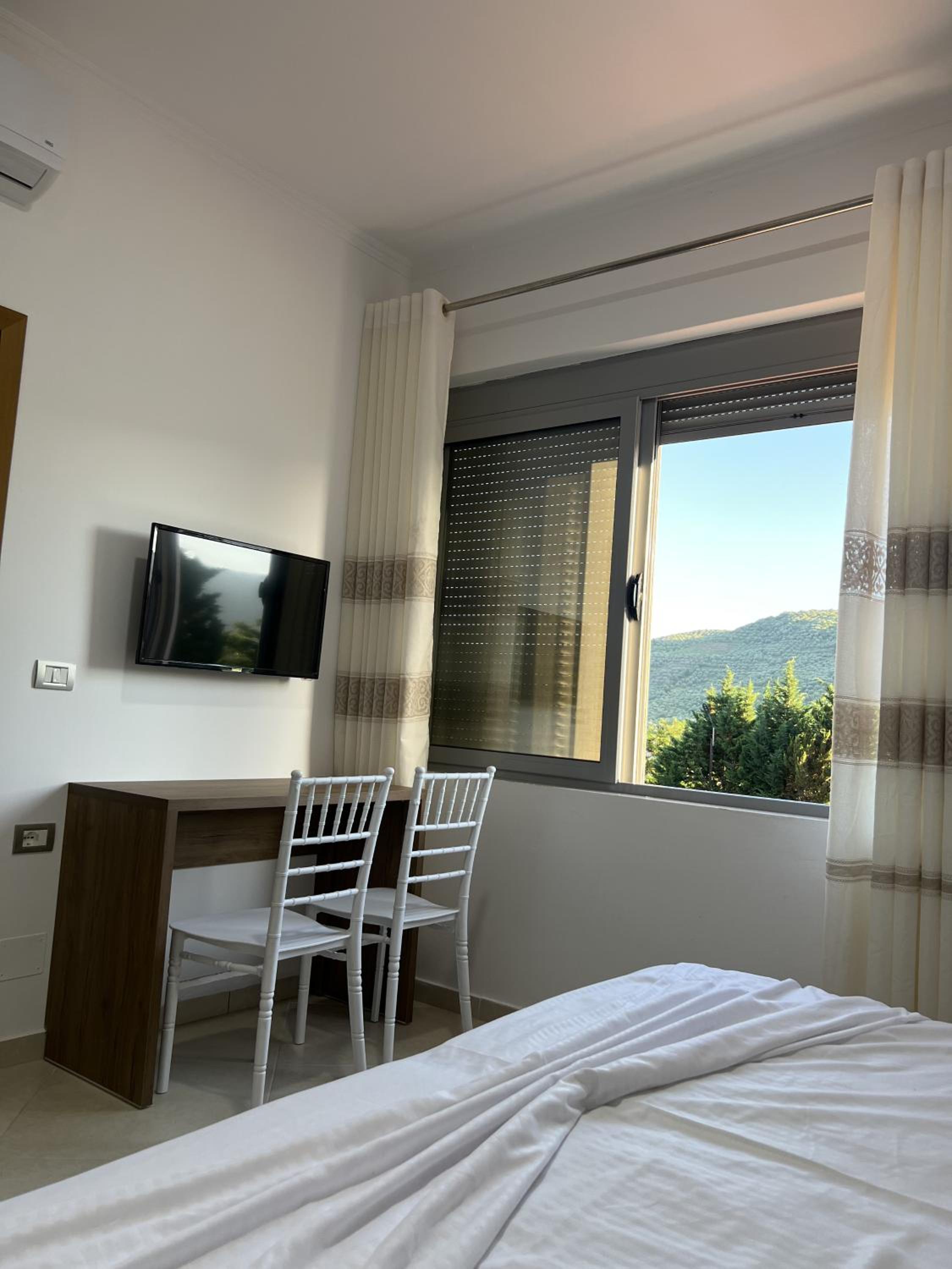 The stay was very good. The room is recently renovated, has a very comfortable bathroom and bed. The AC works well. Dinner was exquisite and breakfast delicious. The staff was attentive and helpful. Chatting with Gerat, his sister and the two young waiters was a pleasure. And their cats were very affectionate. When we return to Albania we will visit them again.