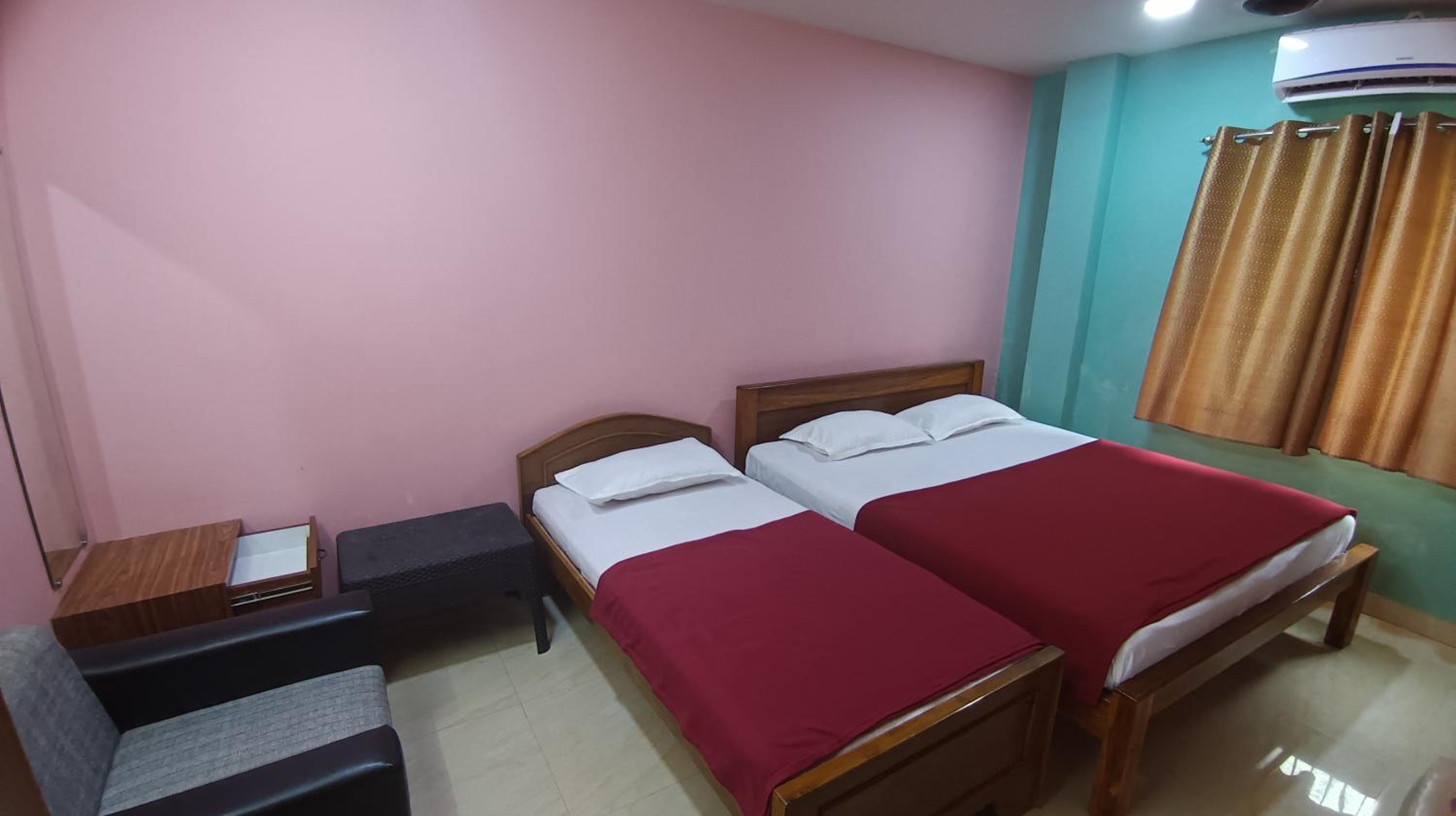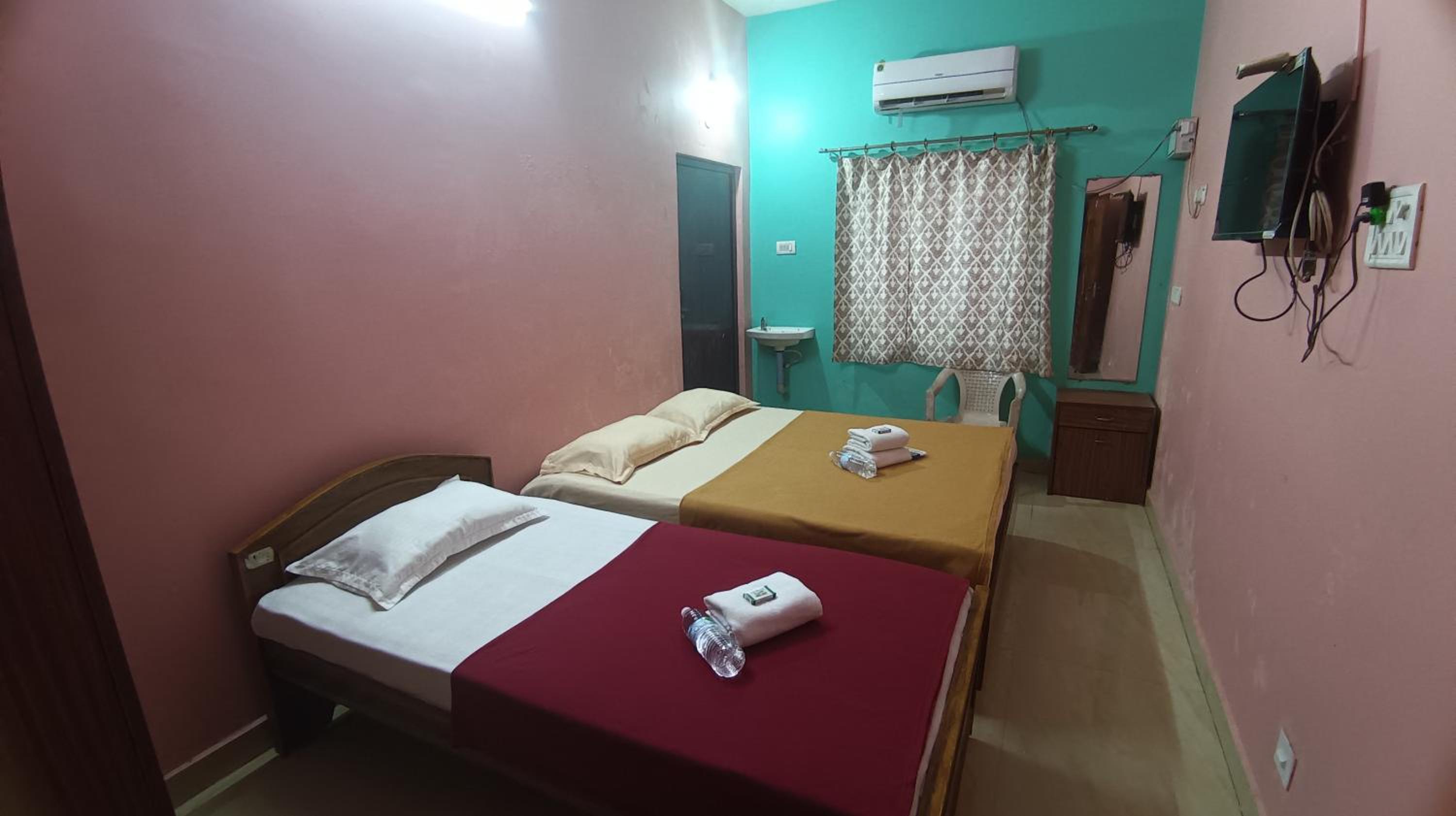 Absolutely pathetic management. Dirty bed covers.Not even a pantry .Even for hot water you have to beg them to switch on the heater. Could see cock roaches in the bed( small ones). Poor parking lot.No value for money..dO NOT GET CARRIED BY PICS