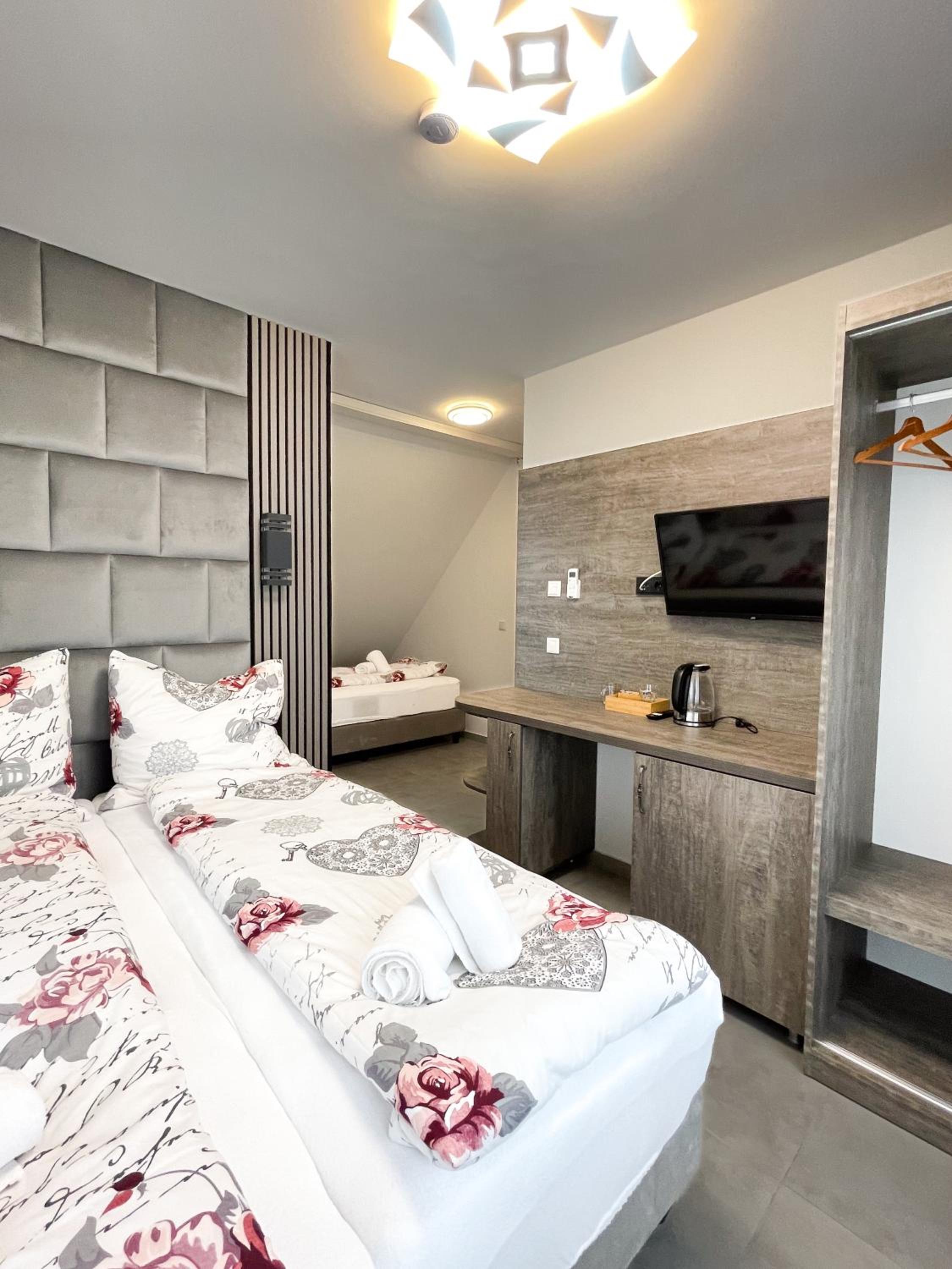Das Hotel ist modern eingerichtet. Das Zimmer war bequem und gut ausgestattet. Parkplätze sind auch vorhanden.