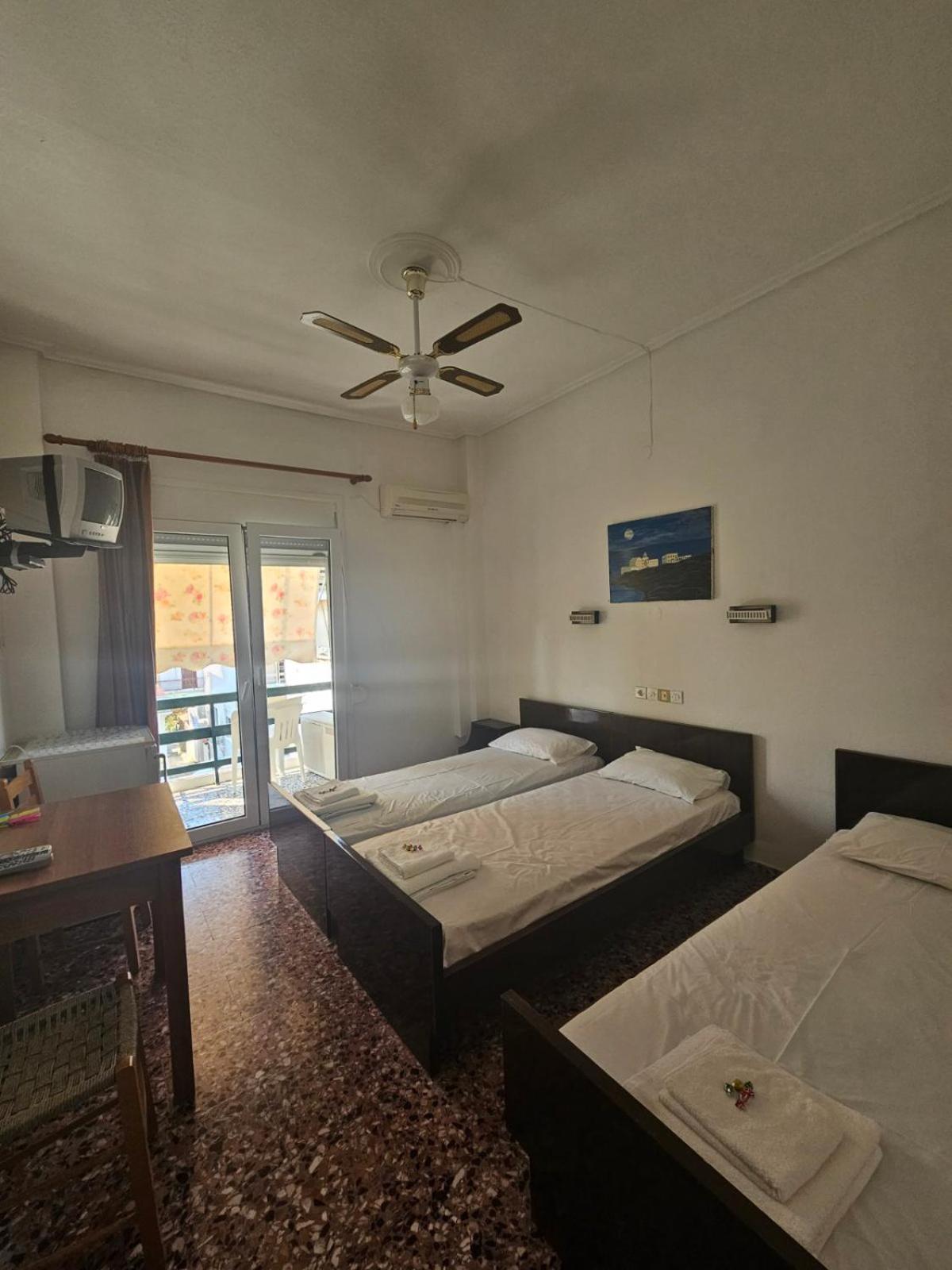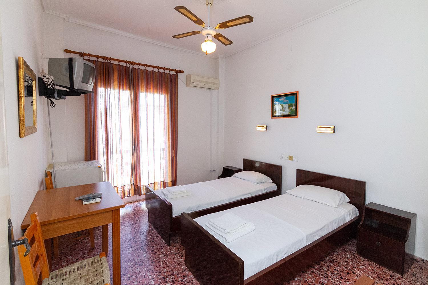 Each room at Dimitrouli rooms is equipped with a desk, TV, bed linen, and towels, ensuring a comfortable stay for all guests.