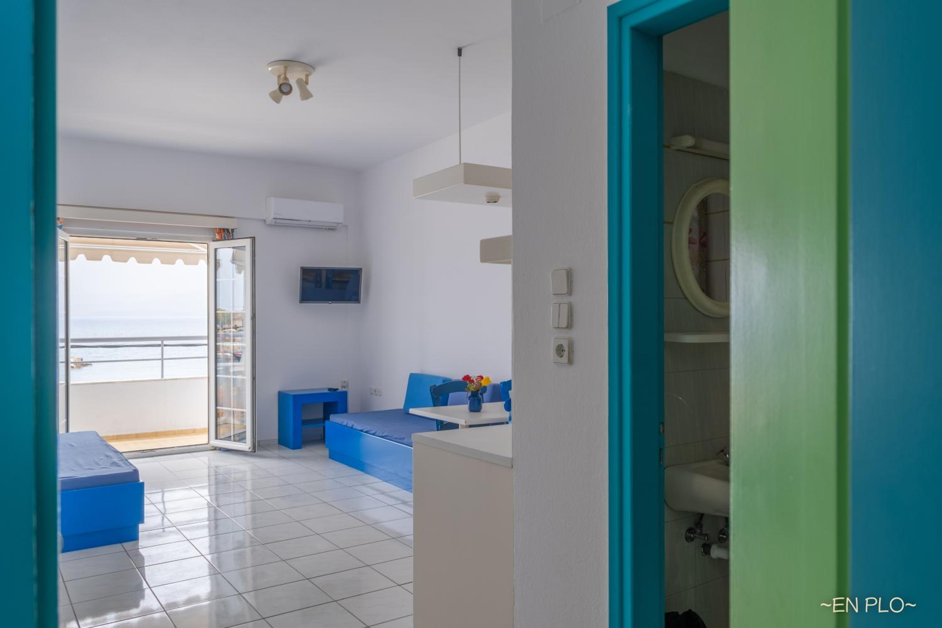 Enplo Apartments offer a prime location on the seafront in Limín Khersonísou, just steps away from Glaros Beach and Golden Beach. The property provides a secure and peaceful environment for guests to relax and unwind.