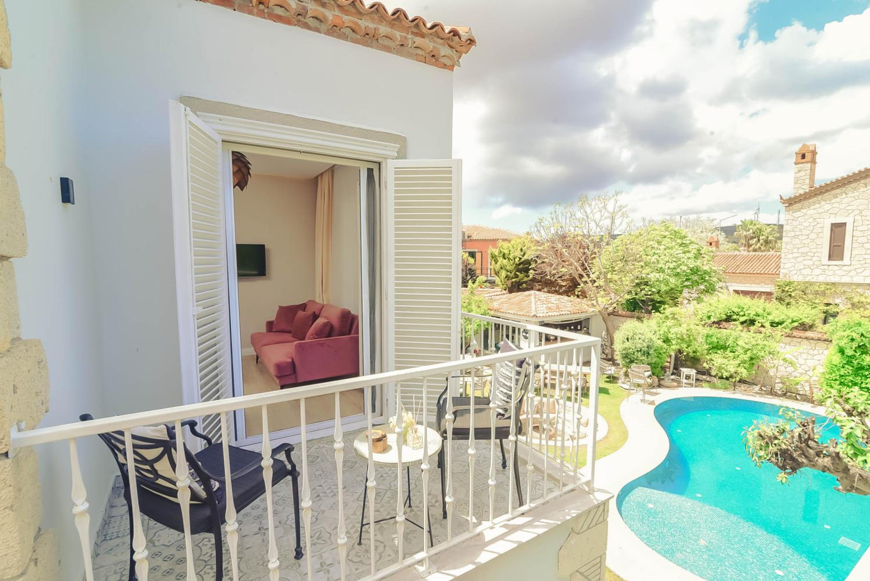 Bahçe ve havuz kenarı çok keyifliydi. Odamız temiz çok güzel kokuyordu. Kahvaltıda hiç bir eksik yoktu. Alaçatı köy içine 5-6 dk yürüme mesafisindeydi. Otelin önüne park edilebiliyor olması benim için çok önemliydi. Eşimle çok memnun kaldık mutlaka bir daha geleceğiz.