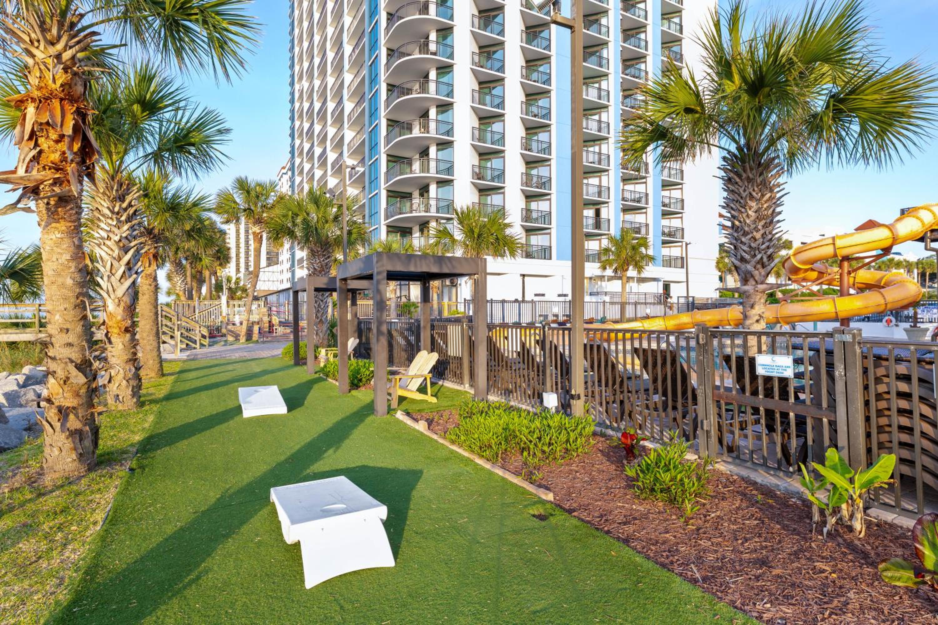 Make unforgettable memories at the indoor pool, fitness room, water park, and kids pool. Enjoy stunning sea views from the balcony and explore nearby attractions like Myrtle Beach Boardwalk.