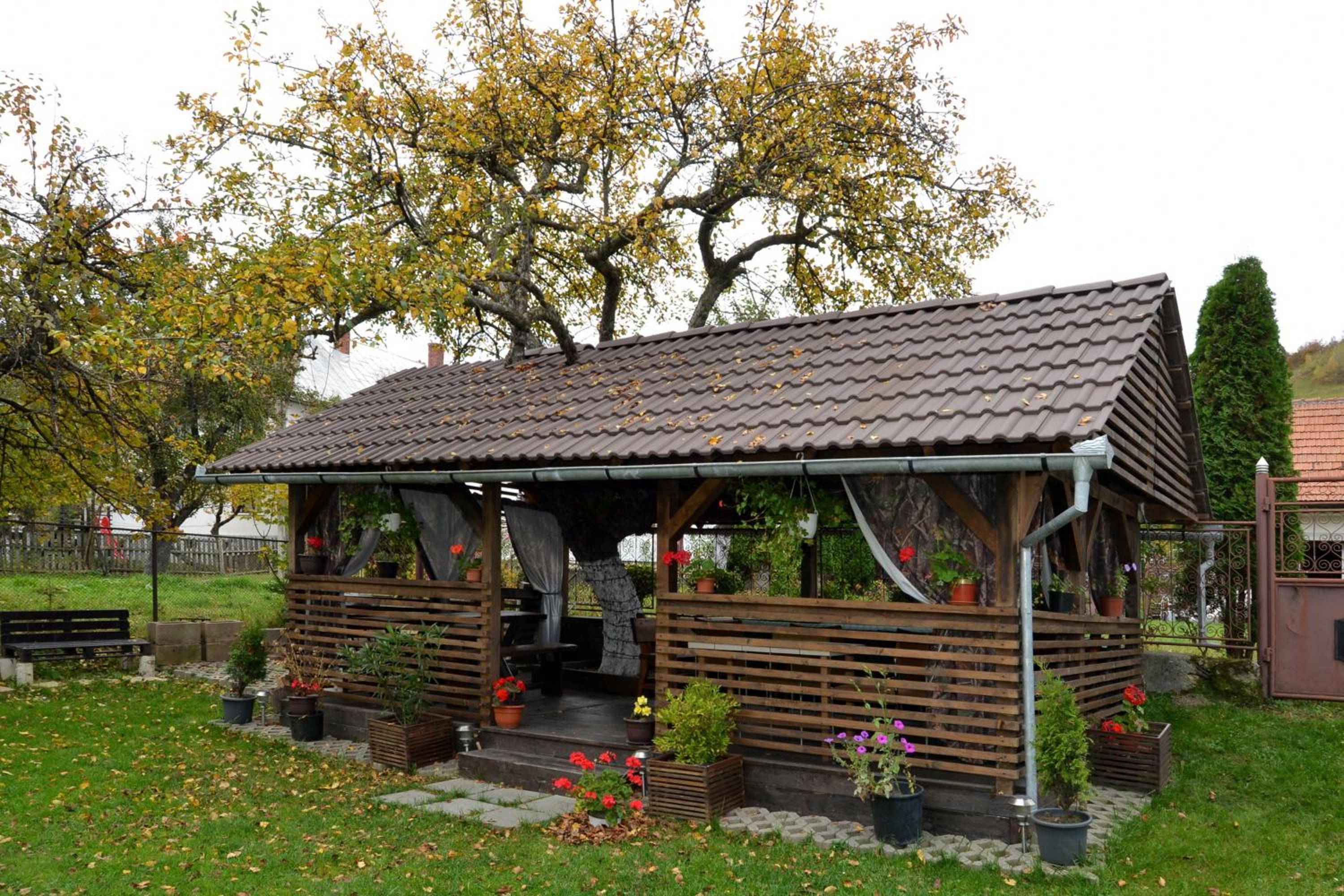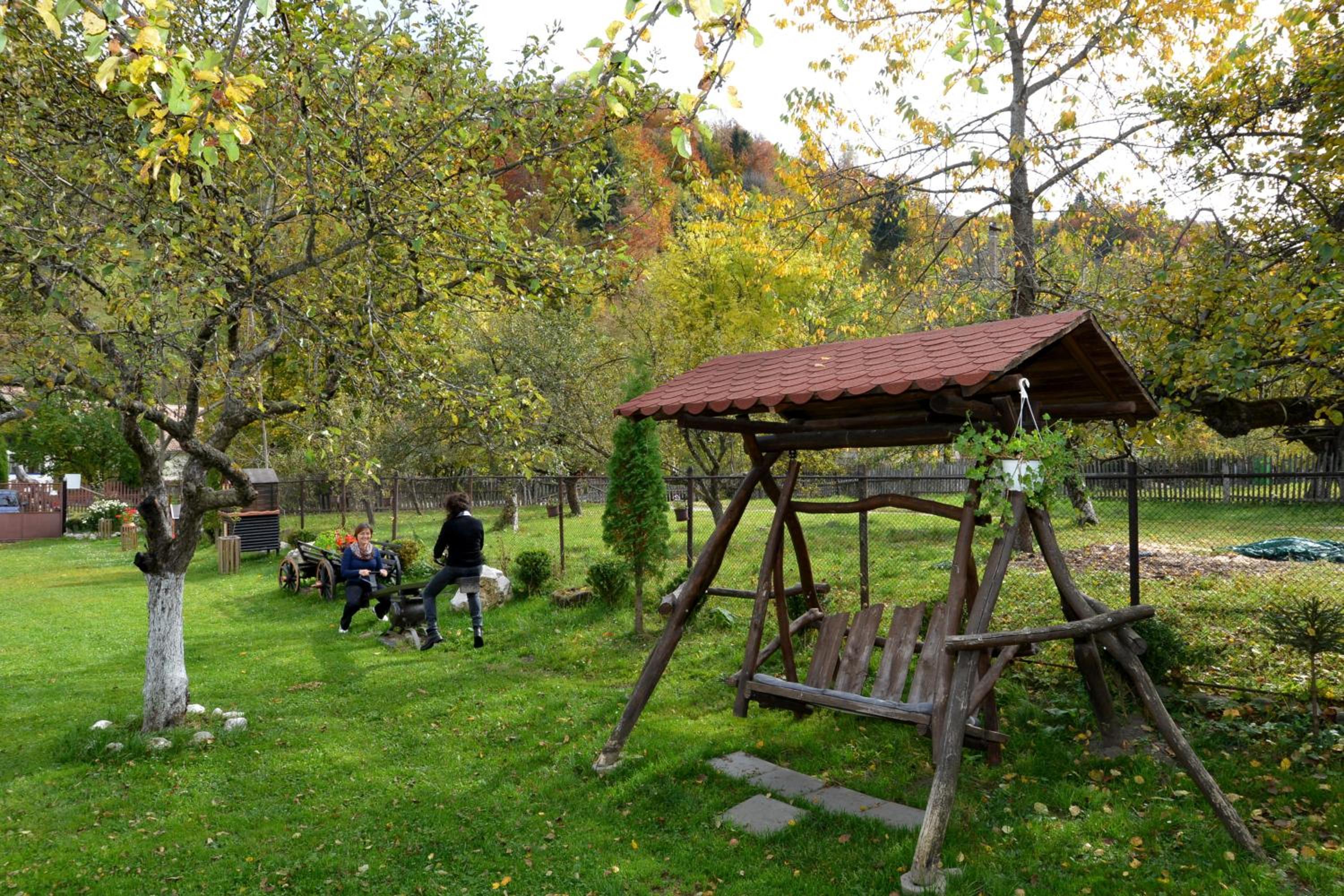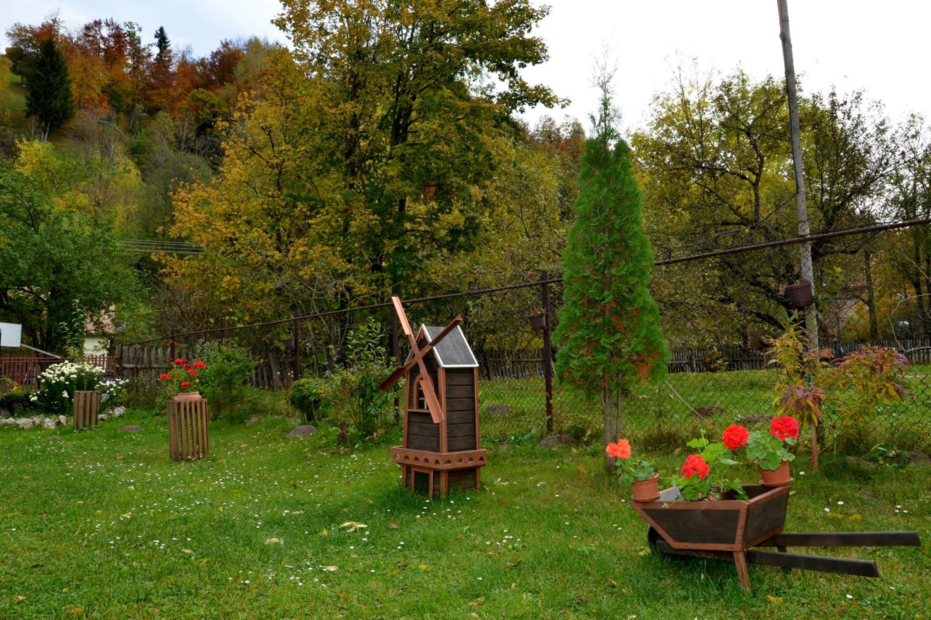 Take advantage of the garden sun terrace, barbecue facilities, and a common kitchen for meal preparation. Unwind in the living area with a sofa or explore nearby attractions like Bran Castle and Zanoaga Ski Slopes.