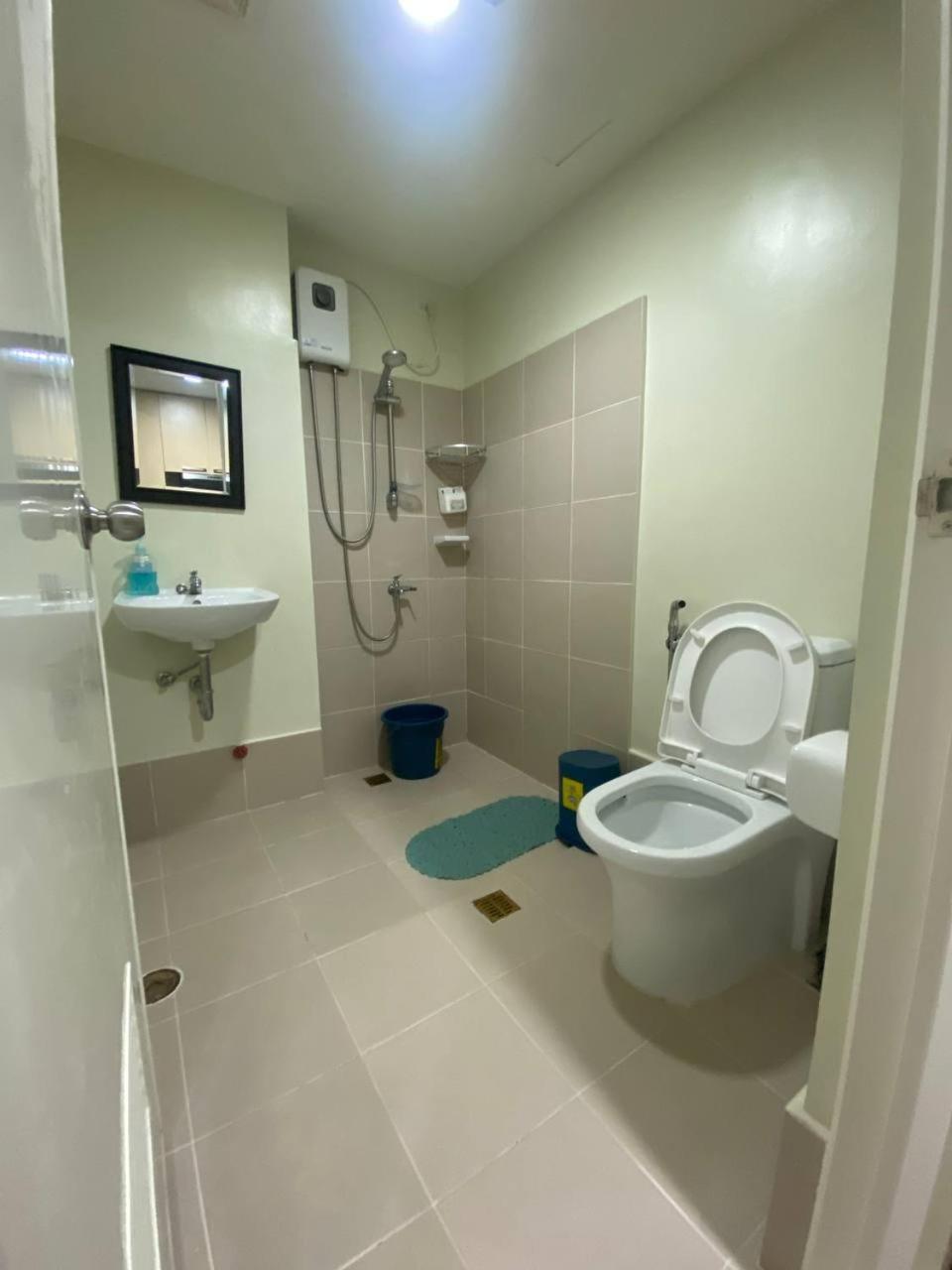 The bathroom floor was wet when we checked in.
