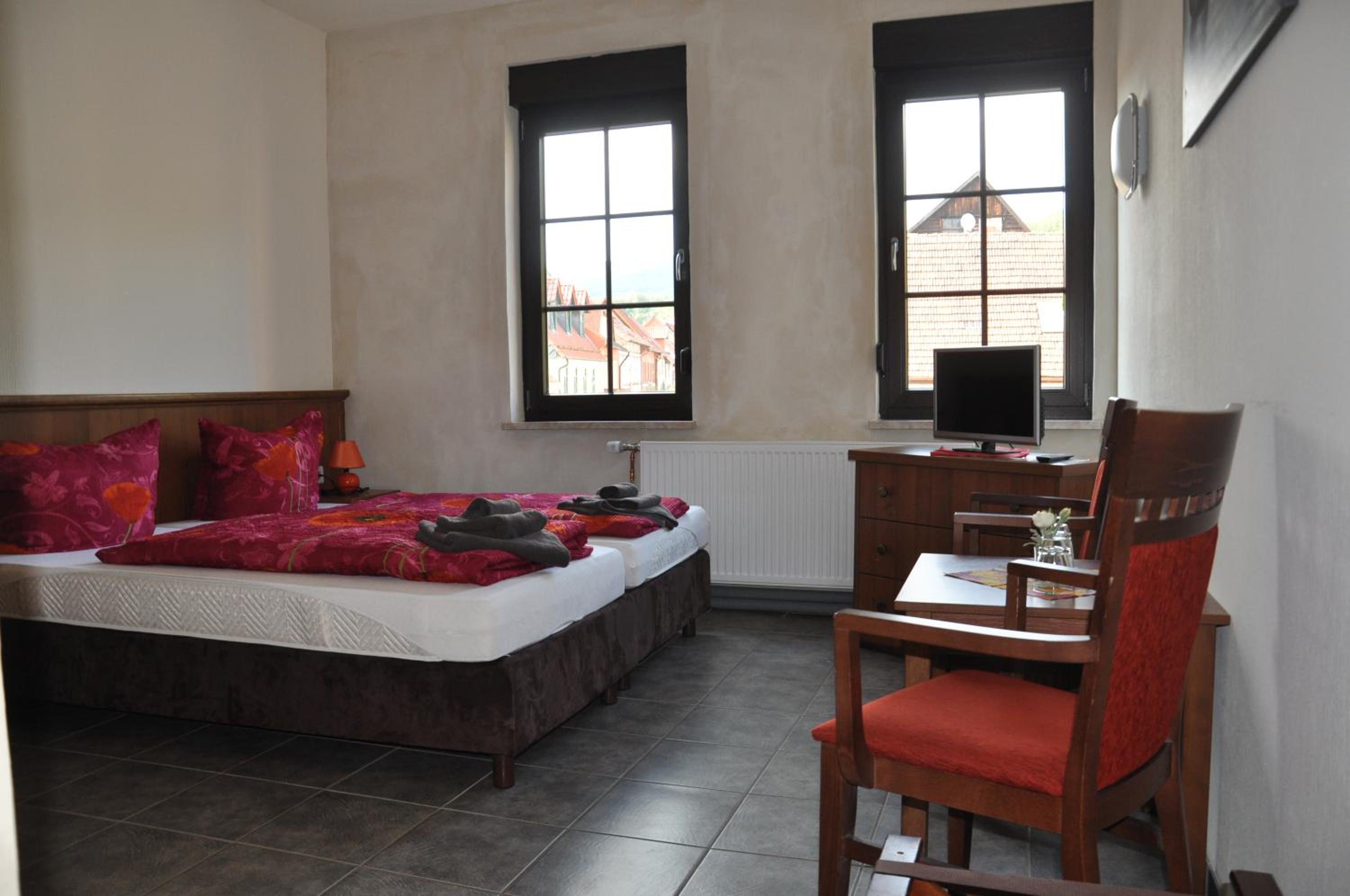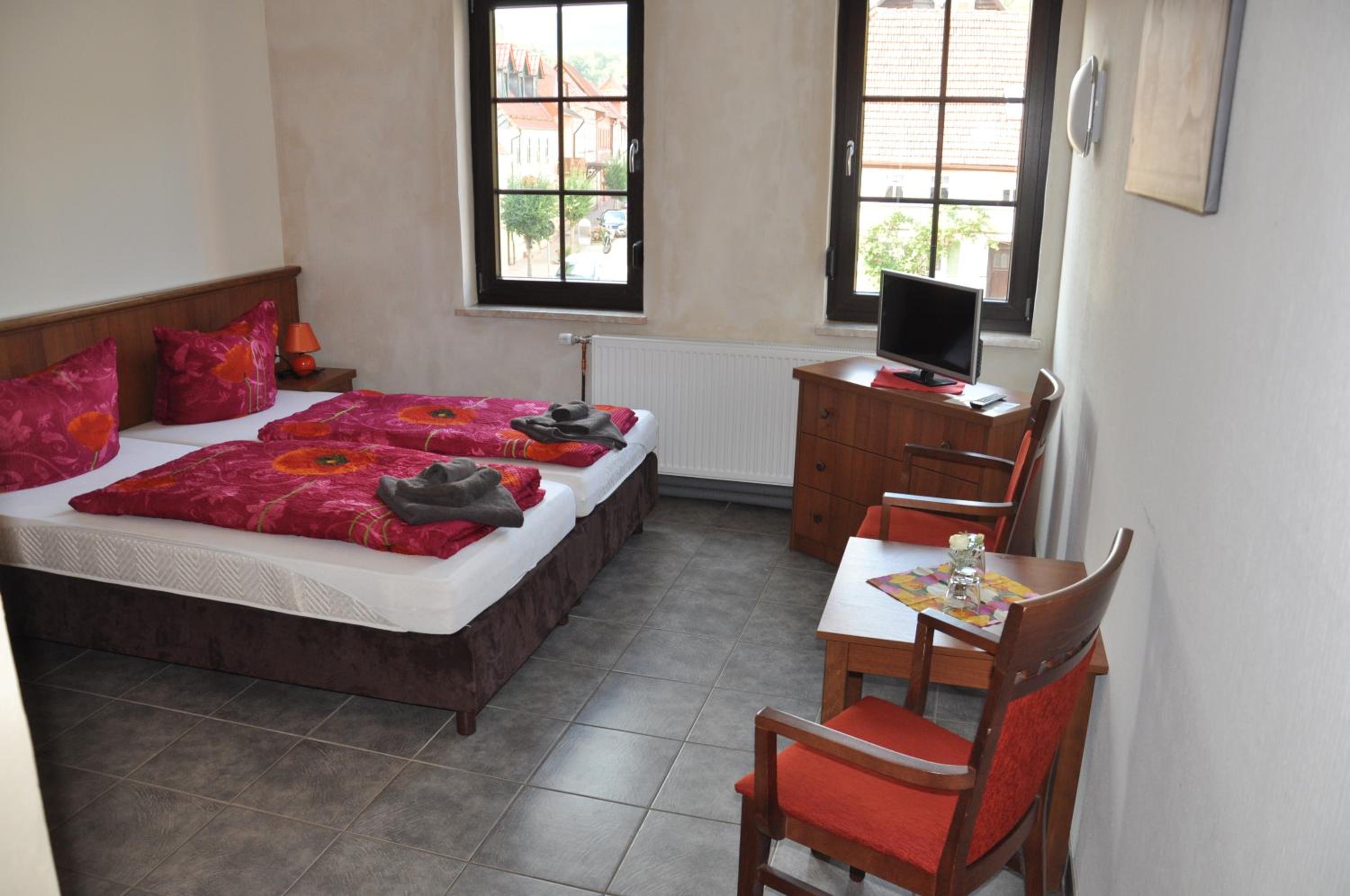 Wir haben ein herbstliches Wanderwochenende hier genächtigt. Das gemütliche Zimmer befand sich ebenerdig, direkt an den Hof angrenzend, der offensichtlich im Sommer als Biergarten dient. Anfang November war er natürlich nicht mehr in Betrieb, sodass wir es zum Schlafen schön ruhig hatten. Neben der zuvorkommend-freundlichen, beinahe familiären Atmosphäre wäre zum einen das ausgezeichnete Restaurant hervorzuheben, in dem man nicht nur wirklich gut essen, sondern - mit Blick auf den nächtlichen Markt - auch auch wunderbar den Wandertag ausklingen lassen kann, sowie zum zweiten der unschlagbare Preis der Übernachtung.