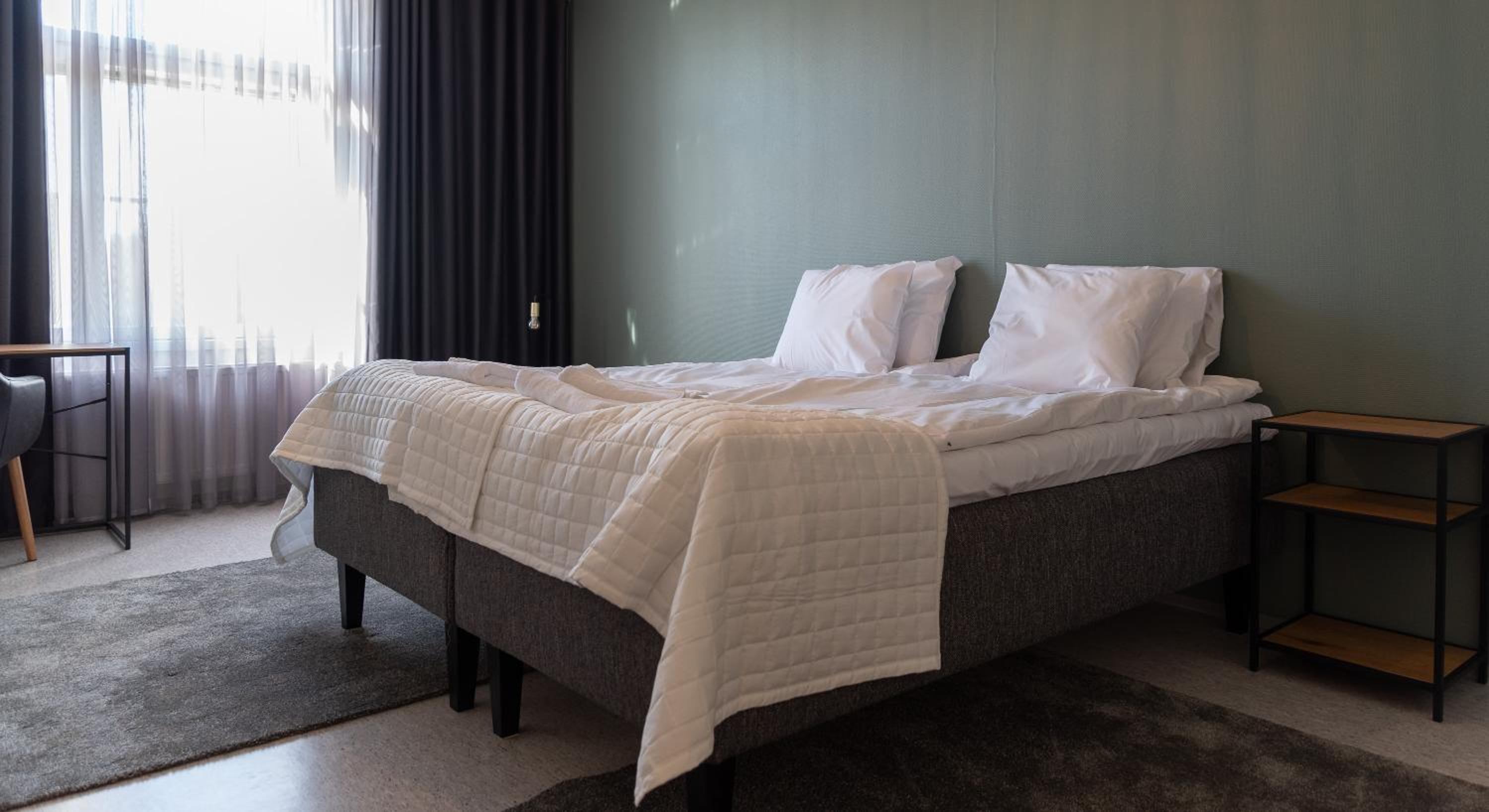 Puutteita: voiveitsiä ja leipäveitsiä ei ollut. Myöskään hiustenkuivaaja ei toiminut. Pesuhuonetila oli aika kylmä. Lisäksi olisin toivonut huoneeseen jonkinlaista naulakkoa.