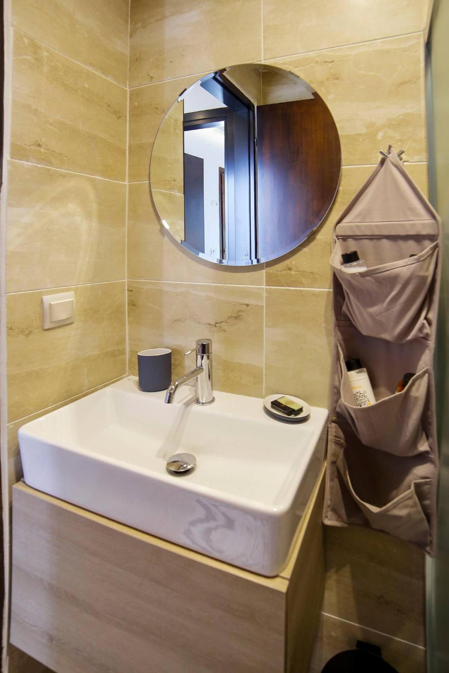 Ideal for short stay with little luggage. Wasn’t an issue for us but the bathroom is quite small.