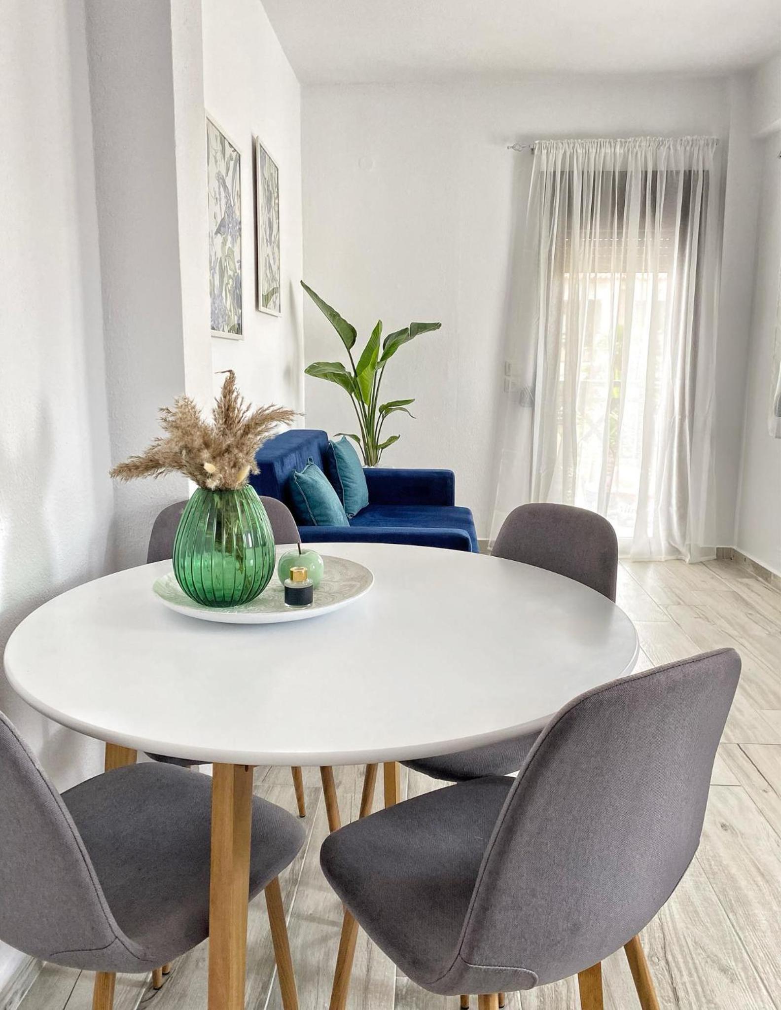 Nos encantó todo, el precioso apartamento está decorado y aprovechado, pensando hasta en el más mínimo detalle que pudieras necesitar para tener una estancia maravillosa. Se nota claramente en la decoración que se ha preparado con mucho esmero y cariño. Además de bonito, ha resultado comodísimo, está a 50 metros de la playa y Su maravilloso mar. Su terraza es estupenda para desayunar. Dispone de tendedero para secar la ropa de playa. Un buen aire acondicionado. Todo lo necesario para poder desayunar en el apartamento, algo que yo agradezco mucho porque me gusta tomar café nada más me levanto. María es una anfitriona atenta y preocupada en cada detalle para hacerte sentir como en tu casa. Nos encantó el detalle de tener bebida fría y dulces locales a nuestra llegada.