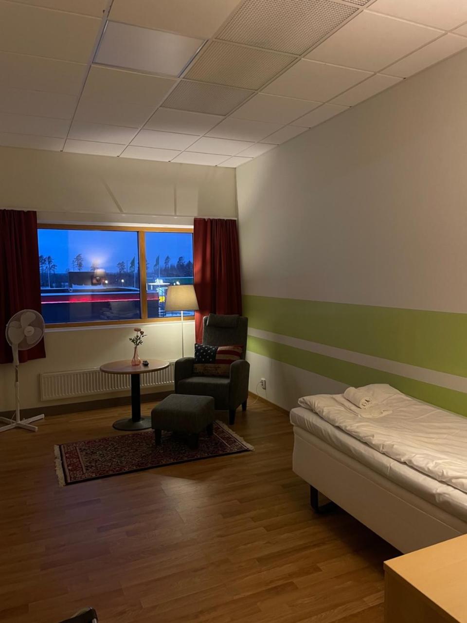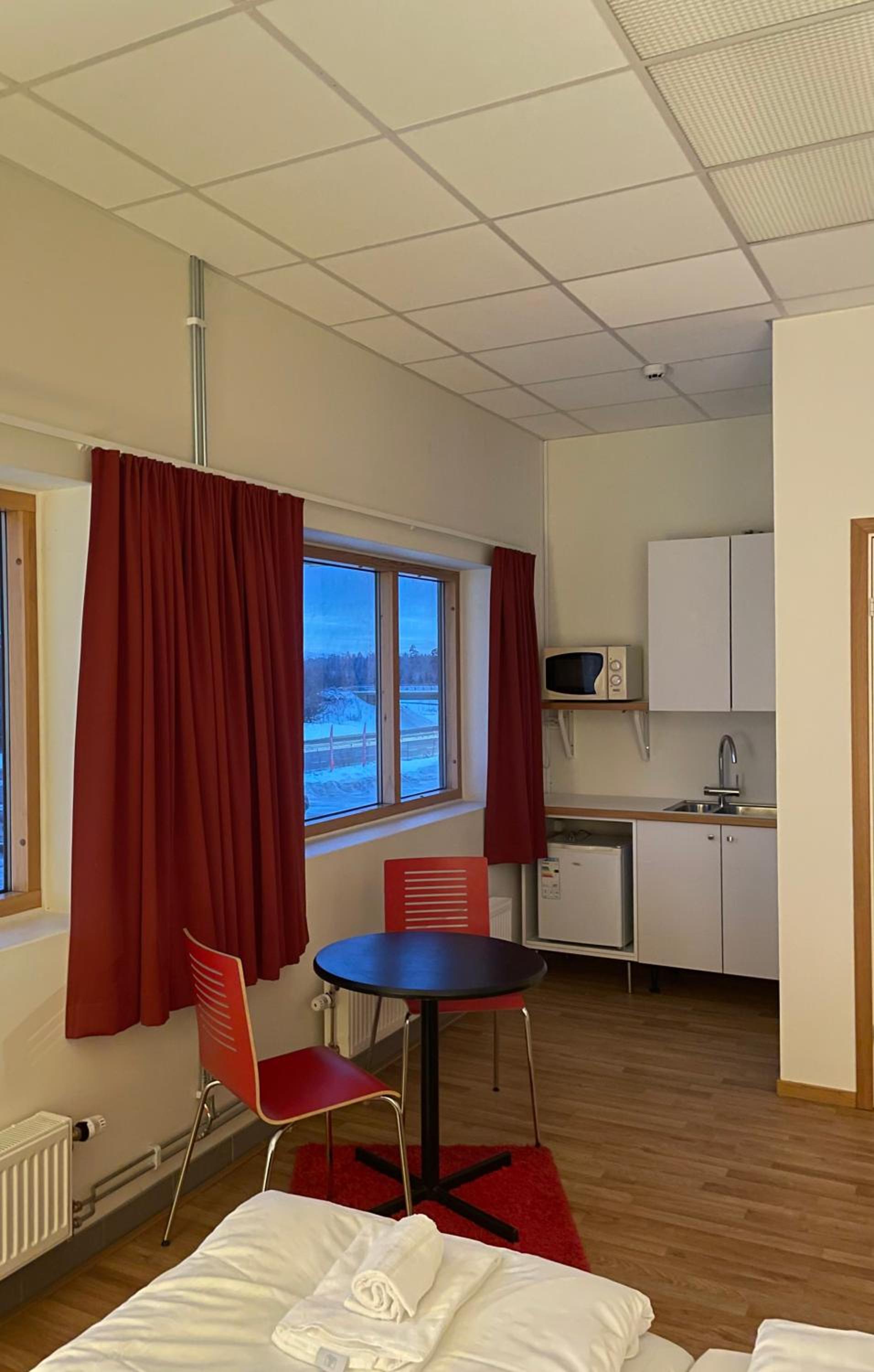 Rummet saknade: tandborstmugg, glas, papperskorg och annat som jag glömt nu. Fönstren gick inte att öppna. Stekhett om natten (värmebölja). Flera inkl. jag själv ställde upp ytterdörren mot korridoren. Dock fanns en stor fläkt på rummet som hjälpte till att få ut varmluften.