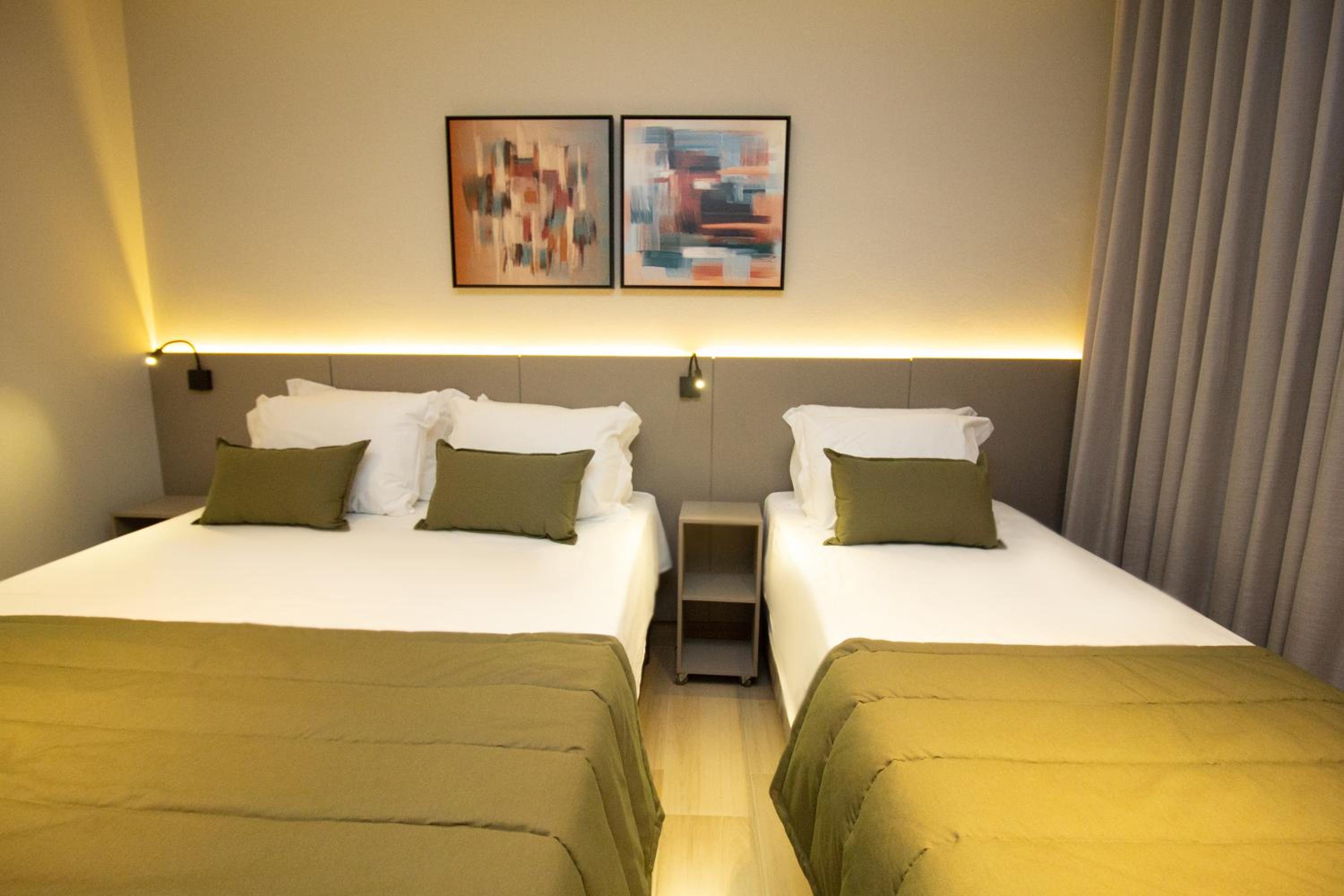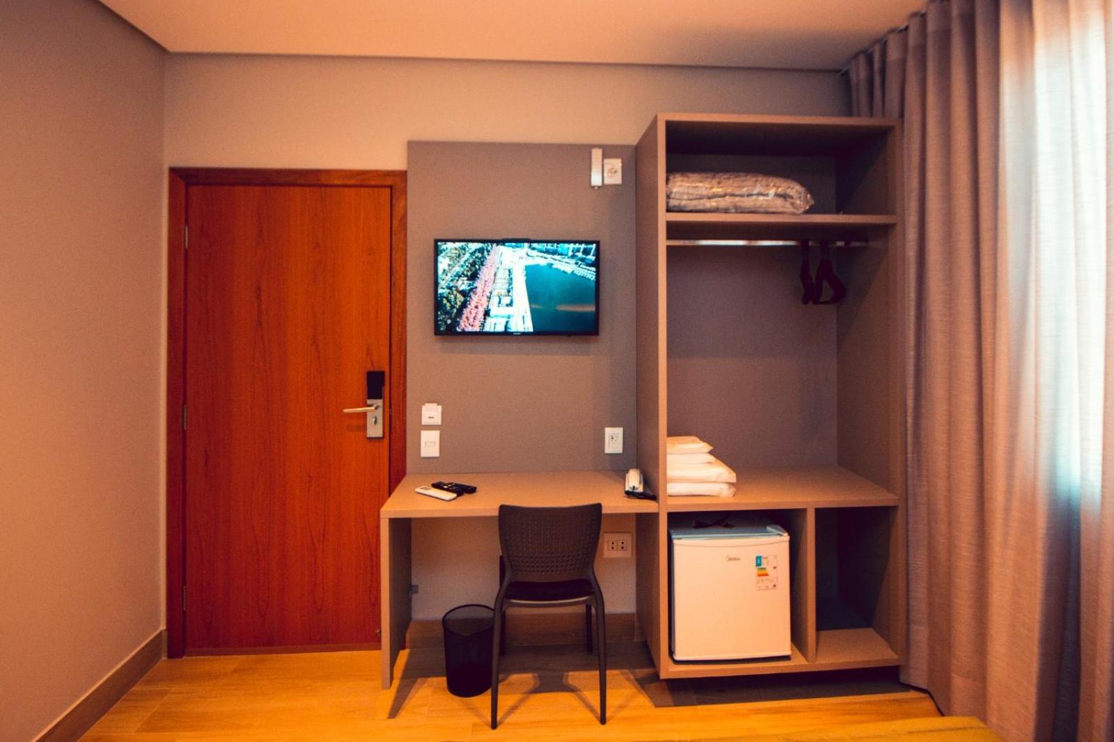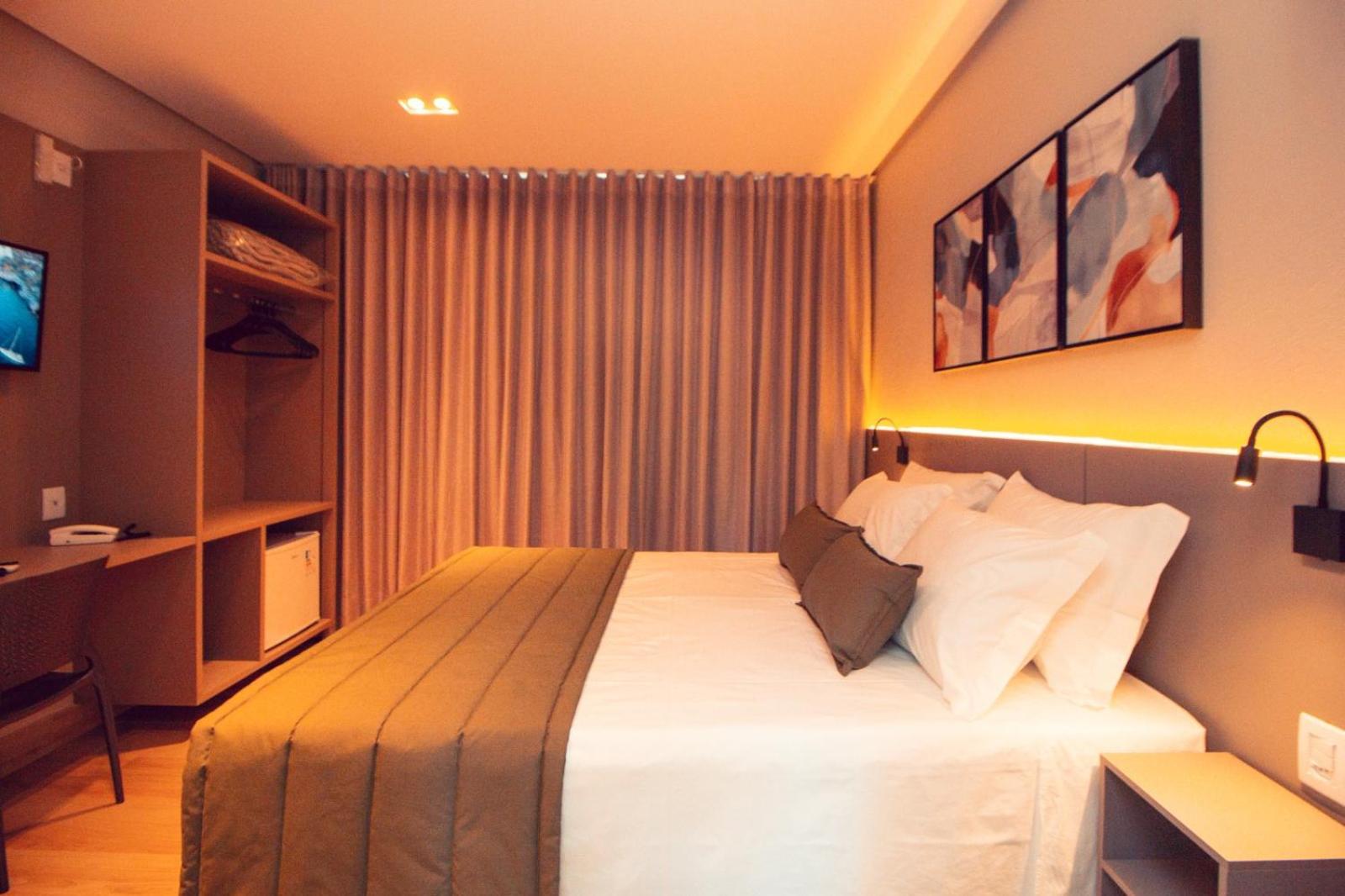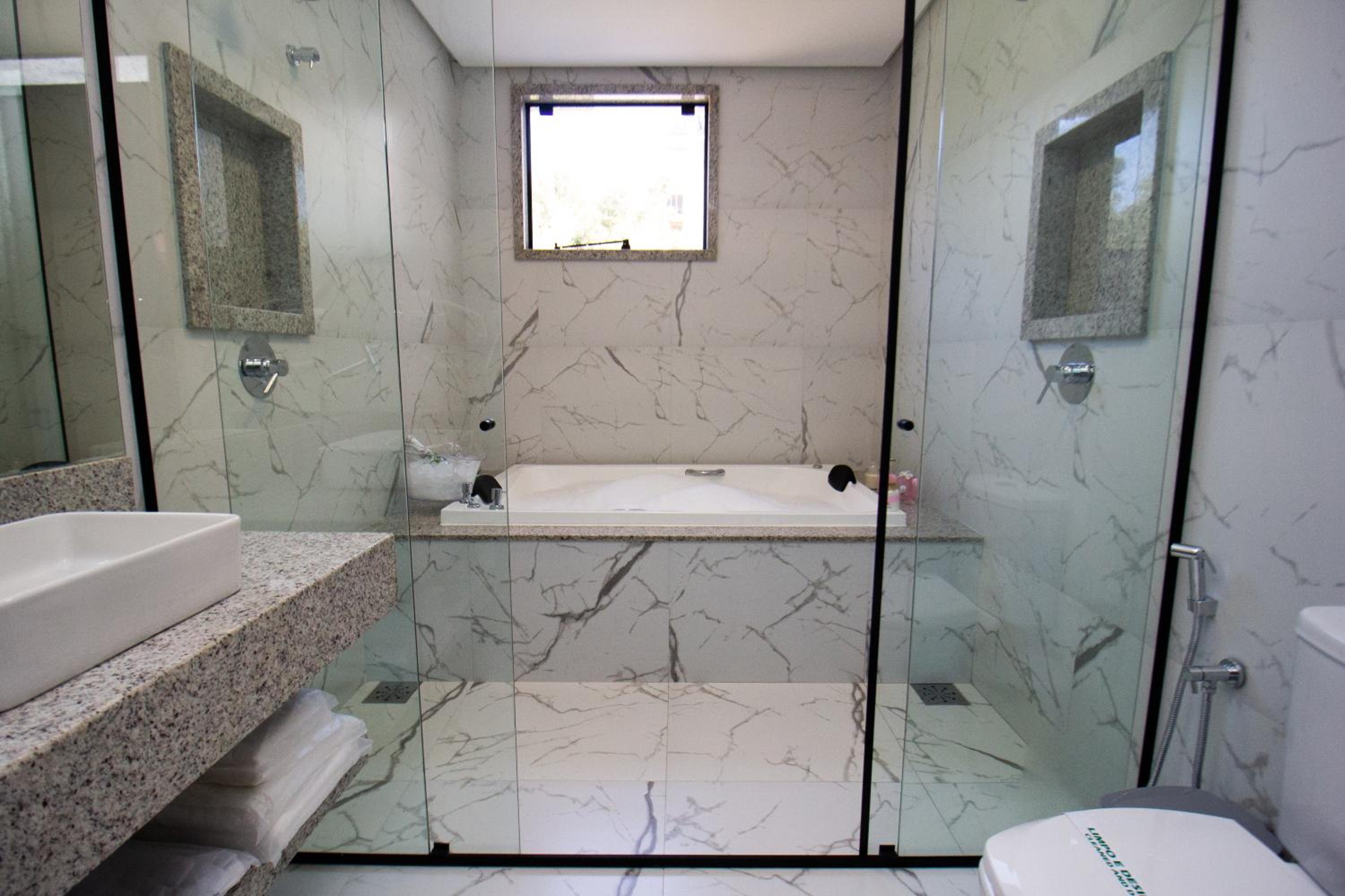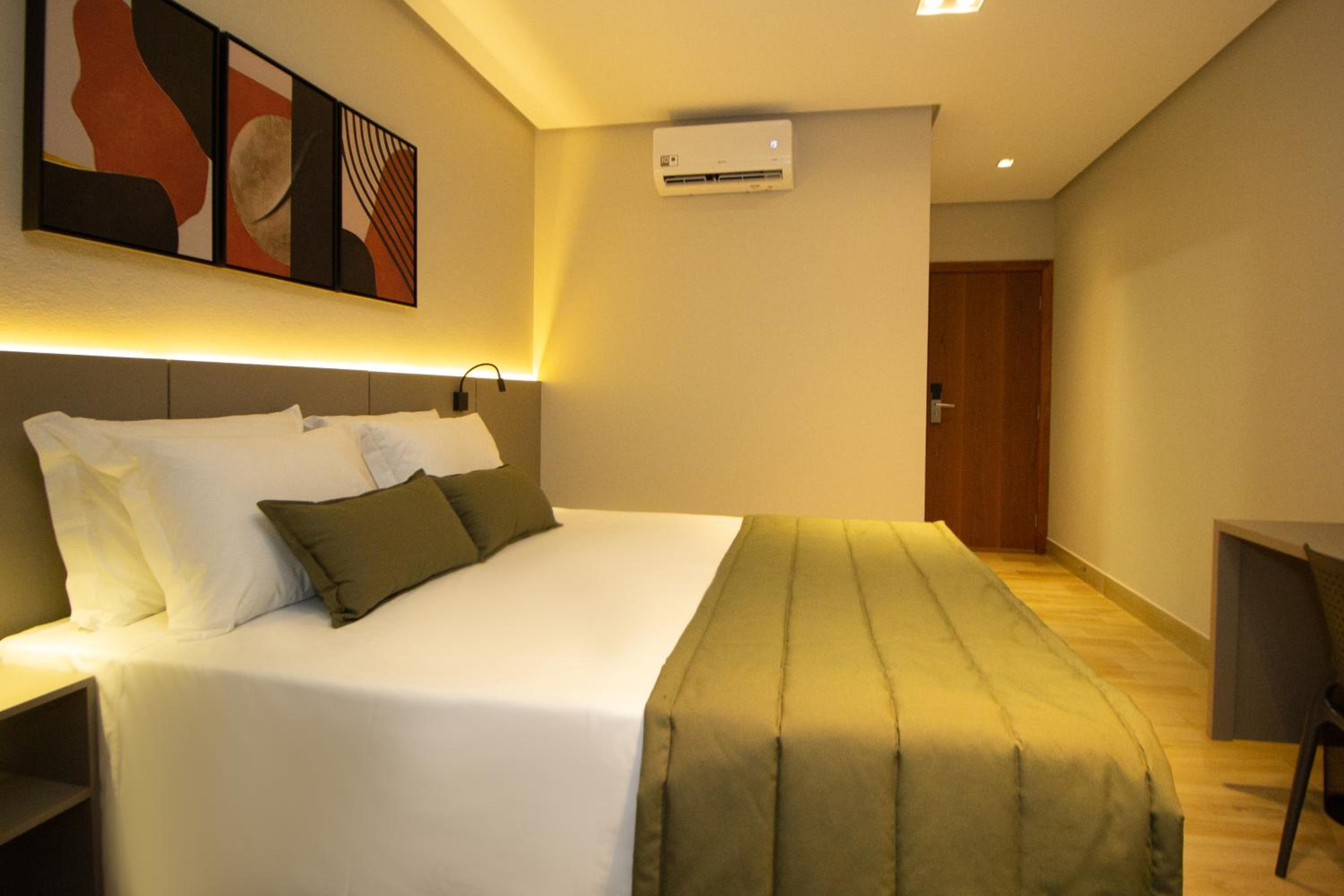 O quarto tem um tamanho ótimo, lugar para acomodar a bagagem, mesas de cabeceira, iluminação ótima, excelente roupa de cama e banho. Chuveiro potente e quente. Ar condicionado funcionando perfeitamente. Amei cada detalhe. A piscina tem vista para o lago. Tudo muito bem pensado.