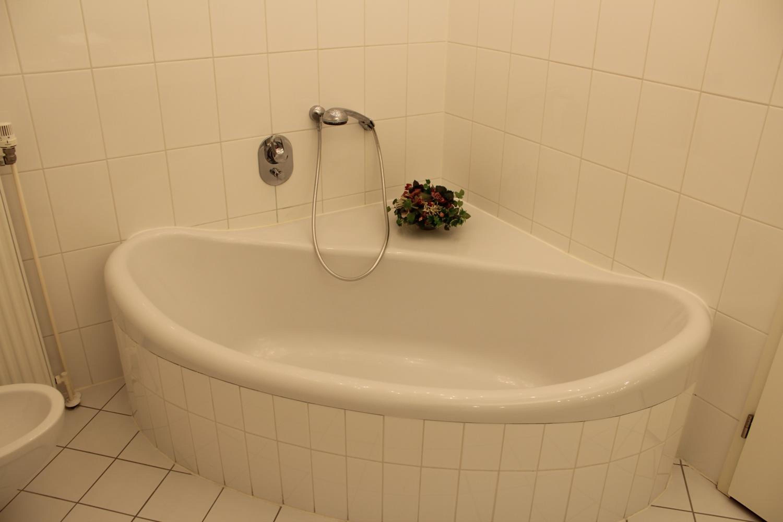 Das einzige was ich zu bemängeln habe, sind in der Dusche die Fliesenfugen. Welche schon sehr schwarz sind