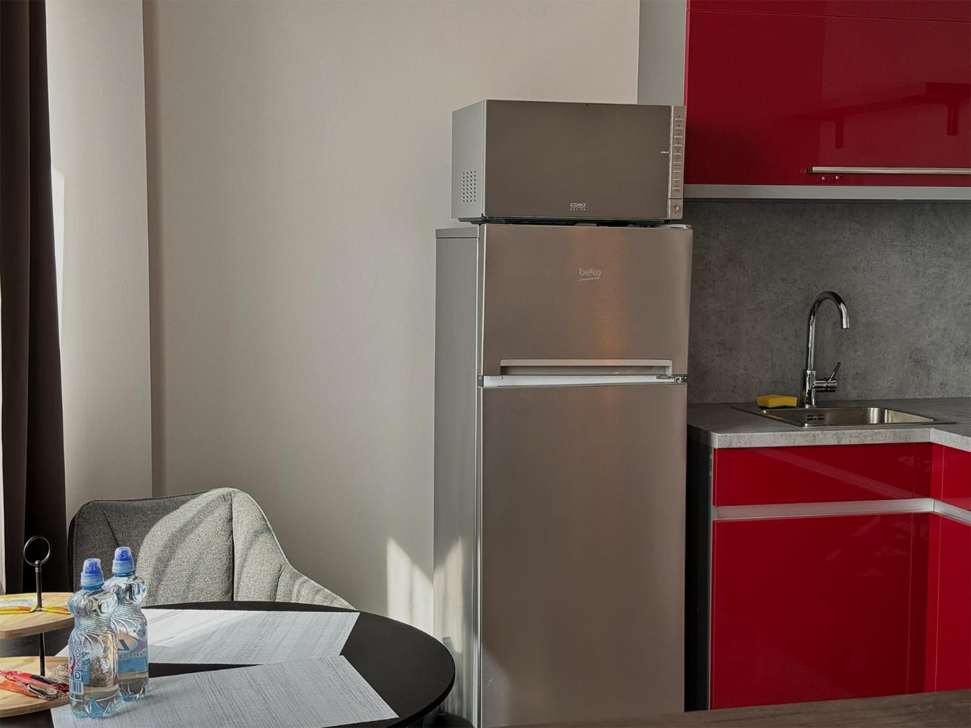 There was only two sets of cups, spoons etc, bet the suit was booked for three people. There was no kitchen towel, no toilet paper. Apartment could use some air conditioning or at least a fan.