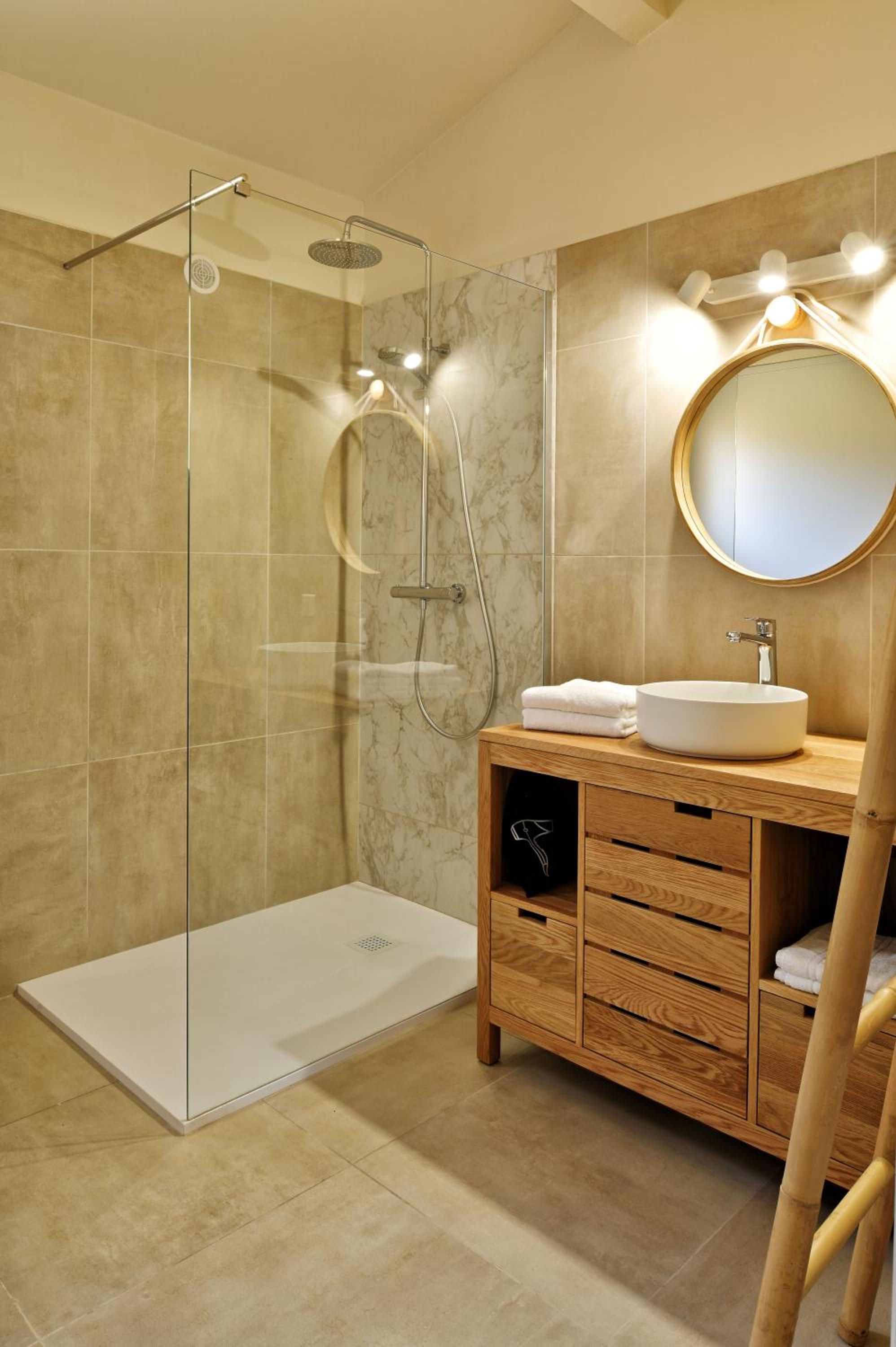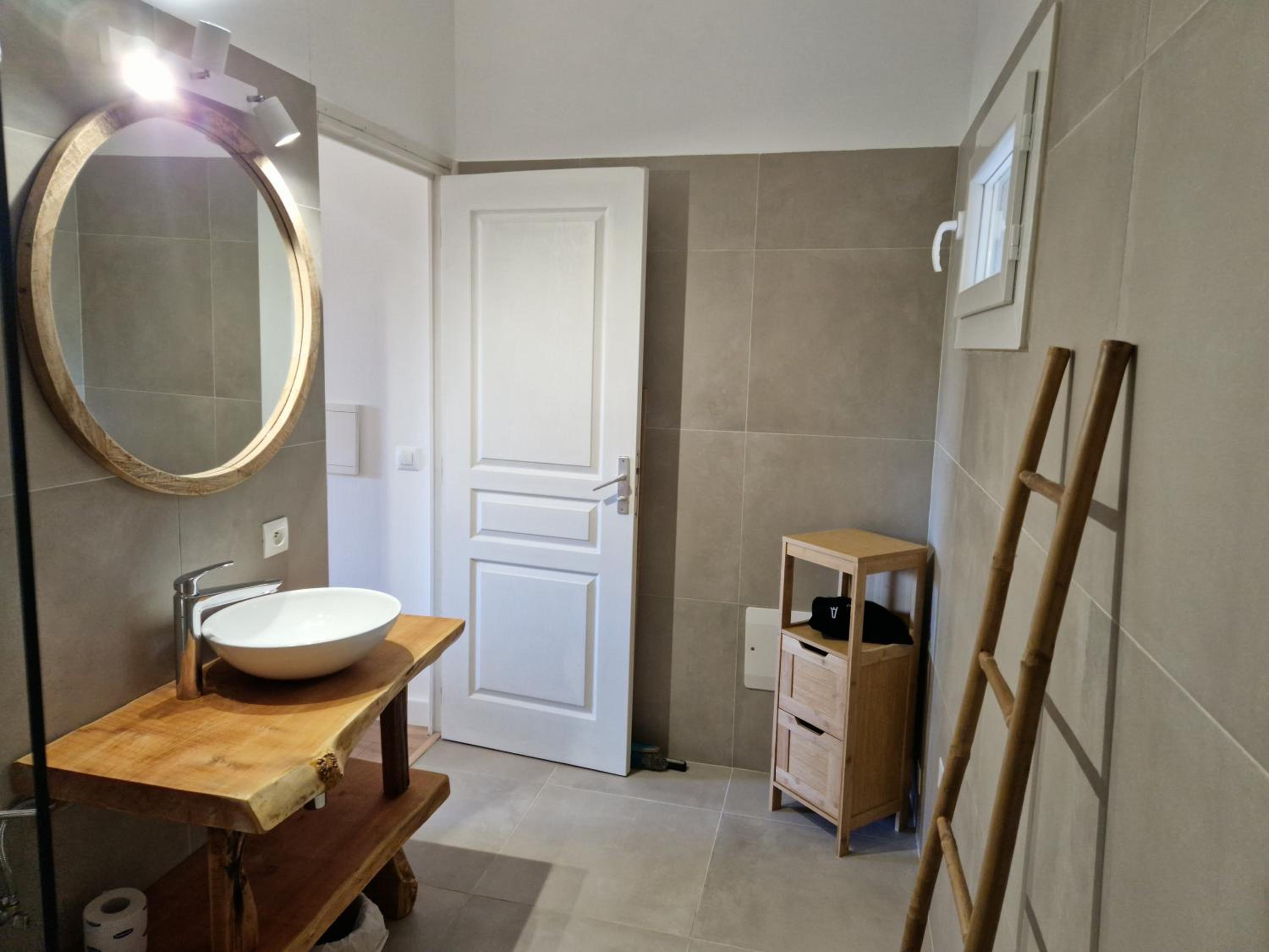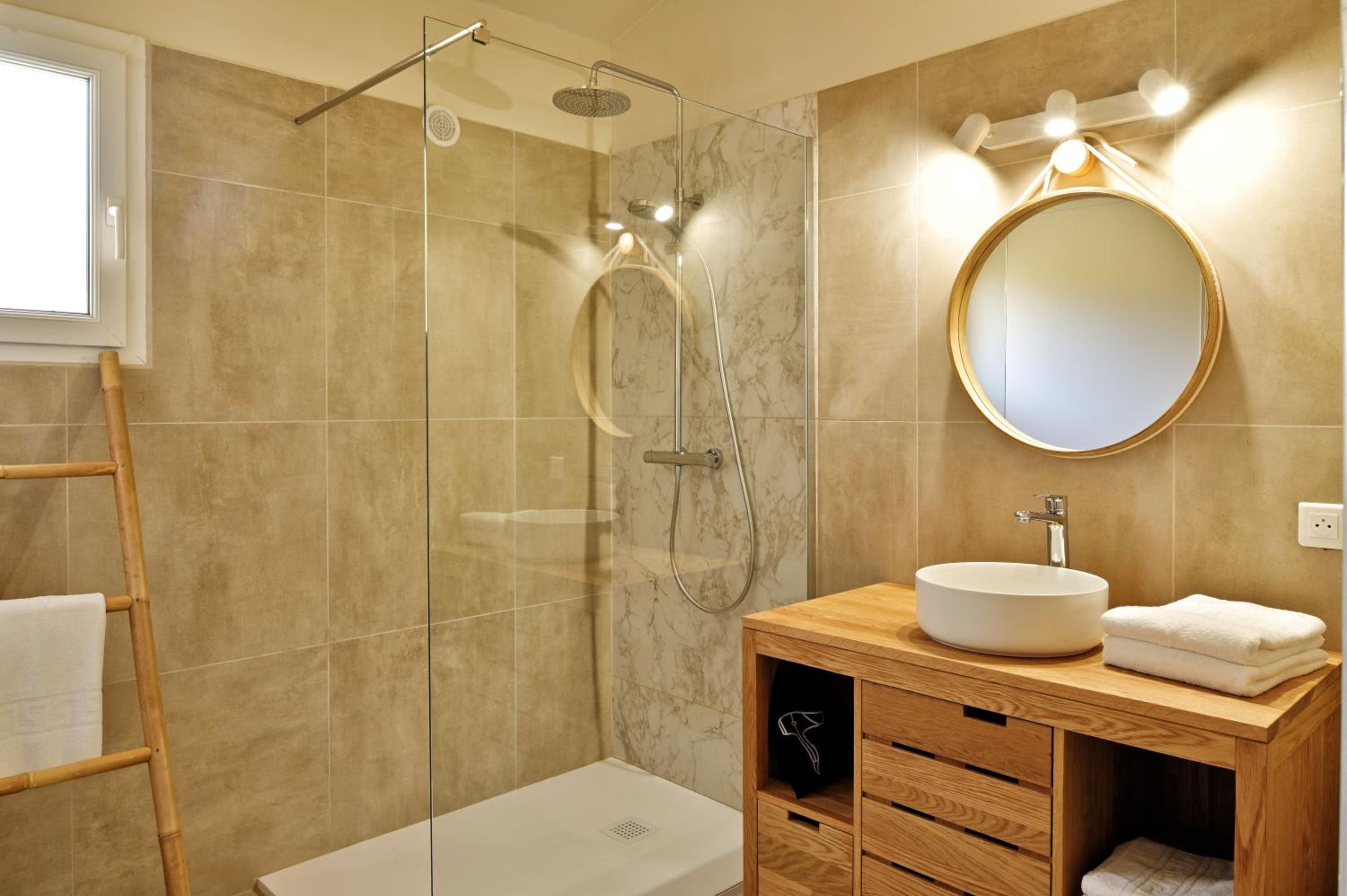 Manque et défaillance de materiel : hotte aspirante non fonctionnelle, roue du bac à lave-vaisselle cassée, problème de conception de la douche à l'italienne qui innonde la salle de bain, peu de vaisselle de base (pas de casserole, pas de pichet à eau, pas de planche à découper...) pas de parasole pour la terrasse.