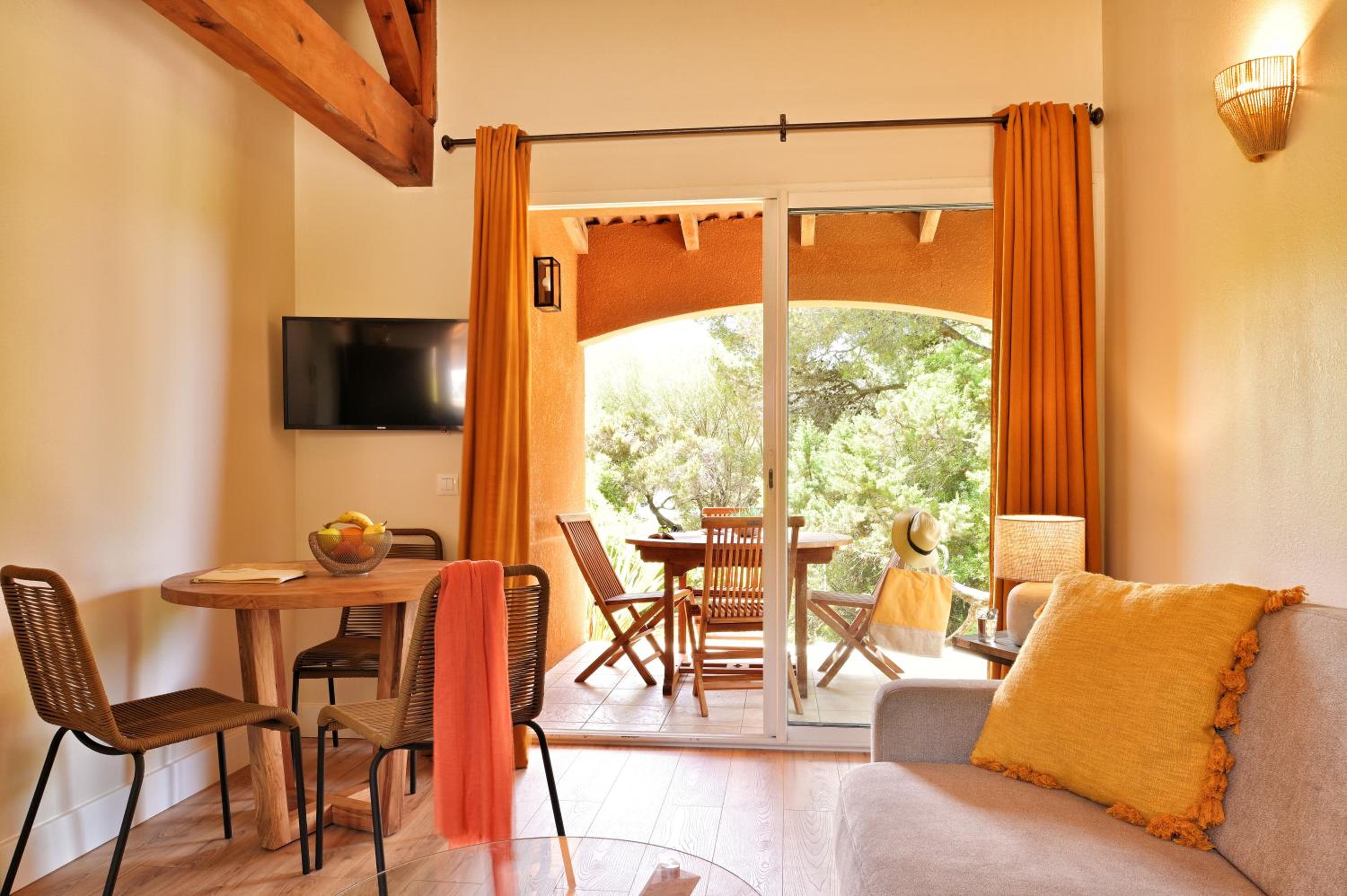 Savor delicious meals at the on-site restaurants overlooking the Mediterranean. Choose between a cozy pizzeria or an al fresco dining experience with panoramic views of Valinco Bay.