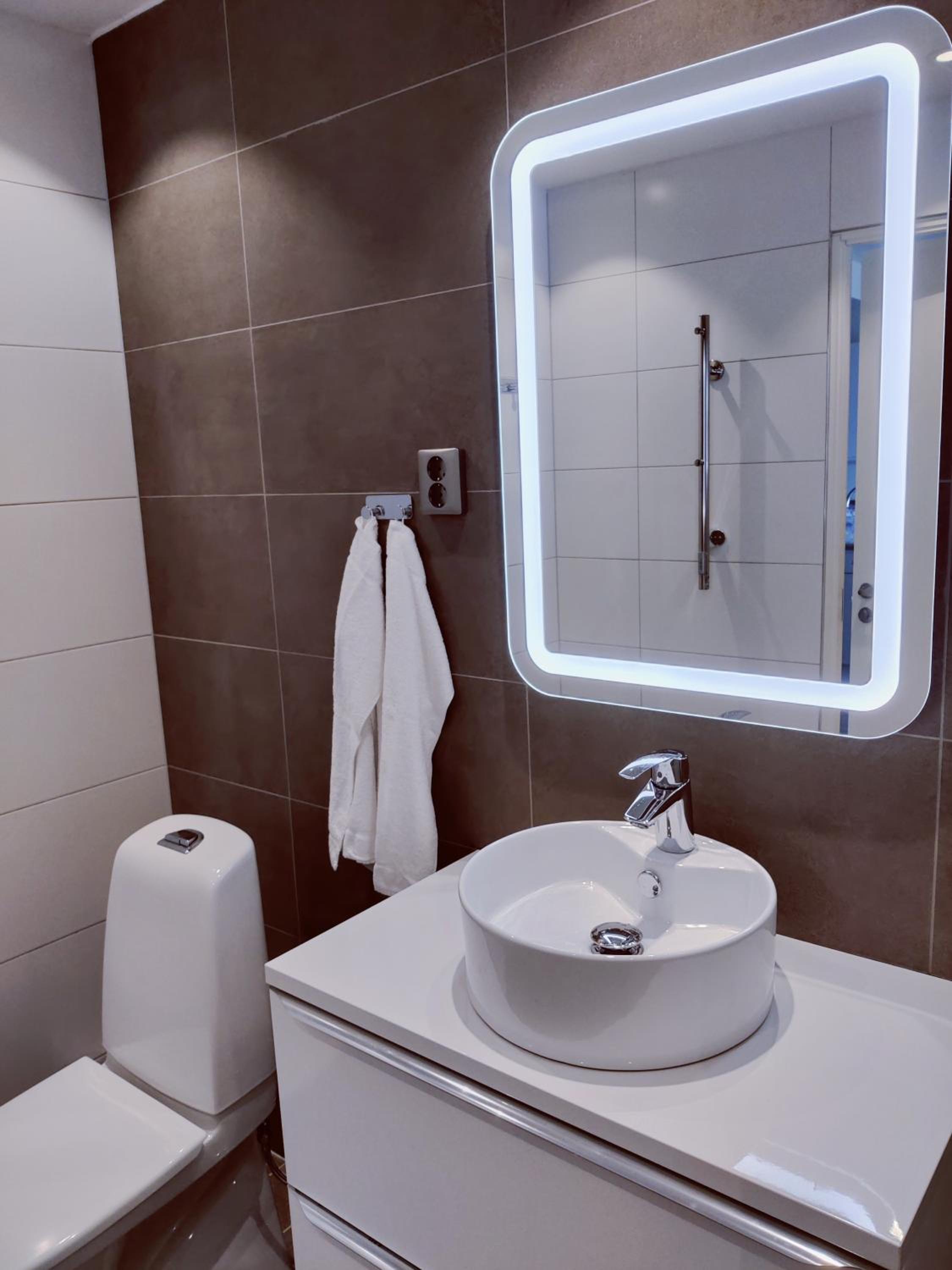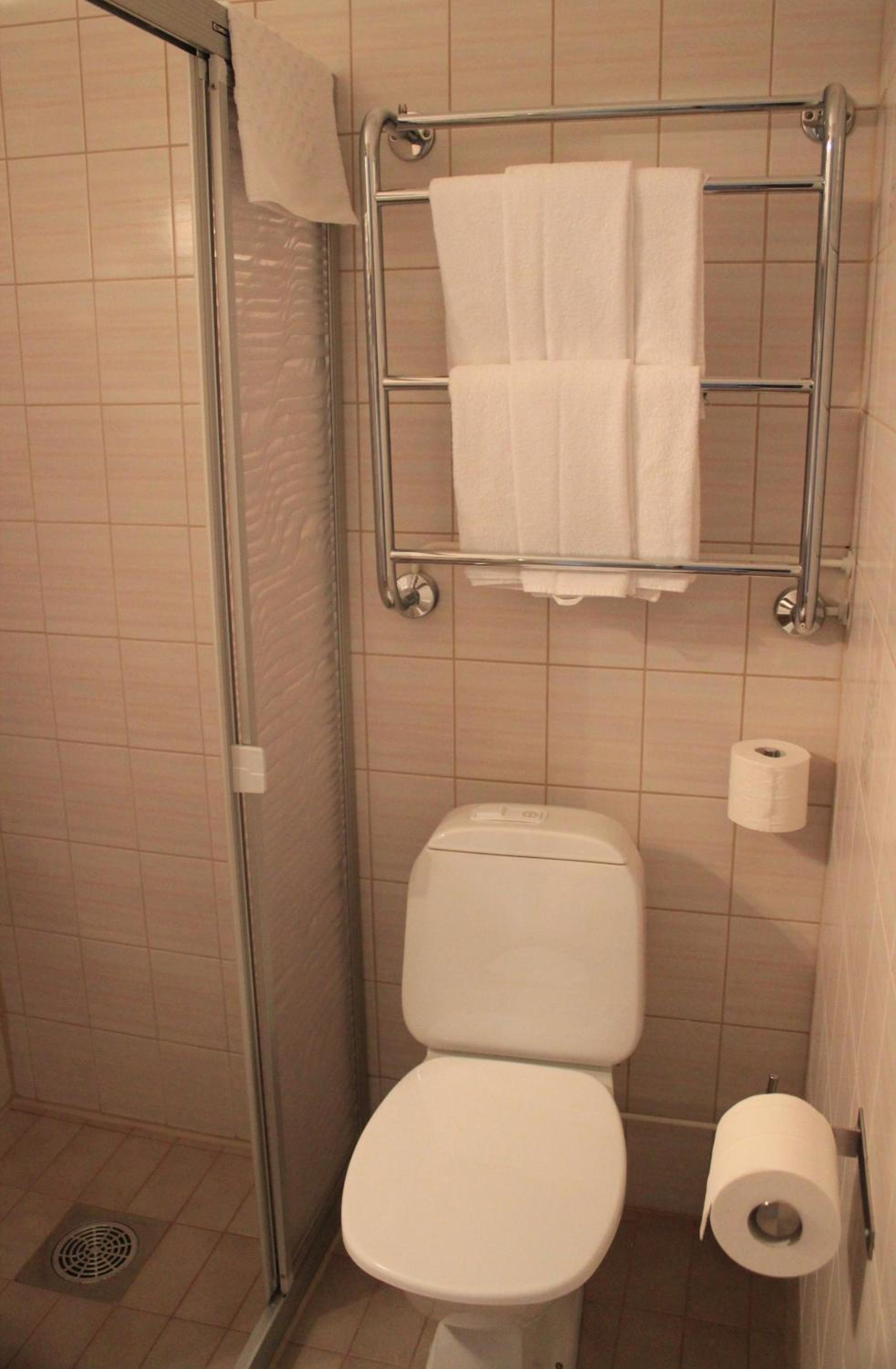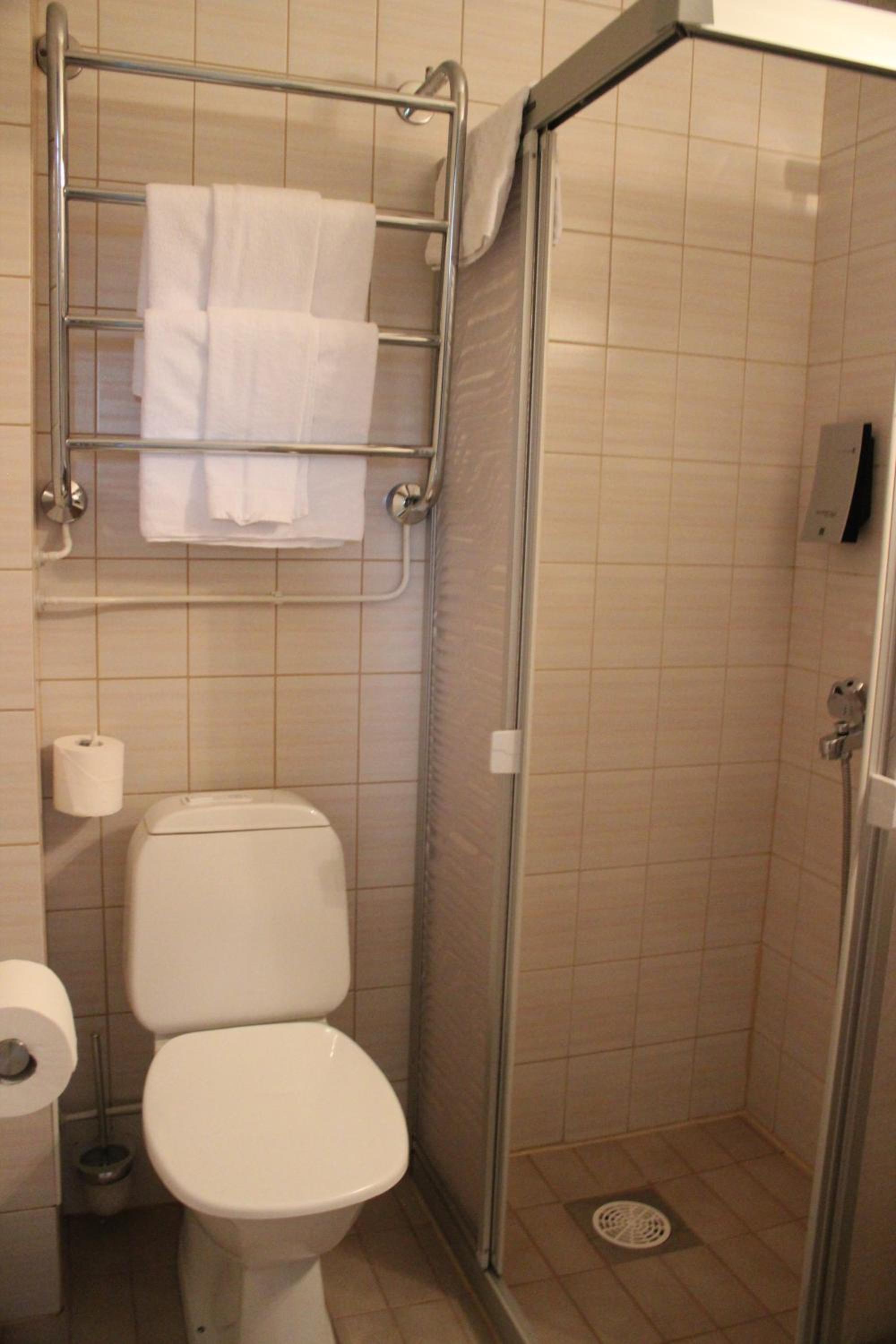 Huonevarustelu hyvin vaatimaton, ei TV, bidesuihkun letku liian lyhyt, ei tavaroille laskutilaa, ei pyyhkeelle kuivausmahdollisuutta( lämpöputket kylmä), ahdasta.