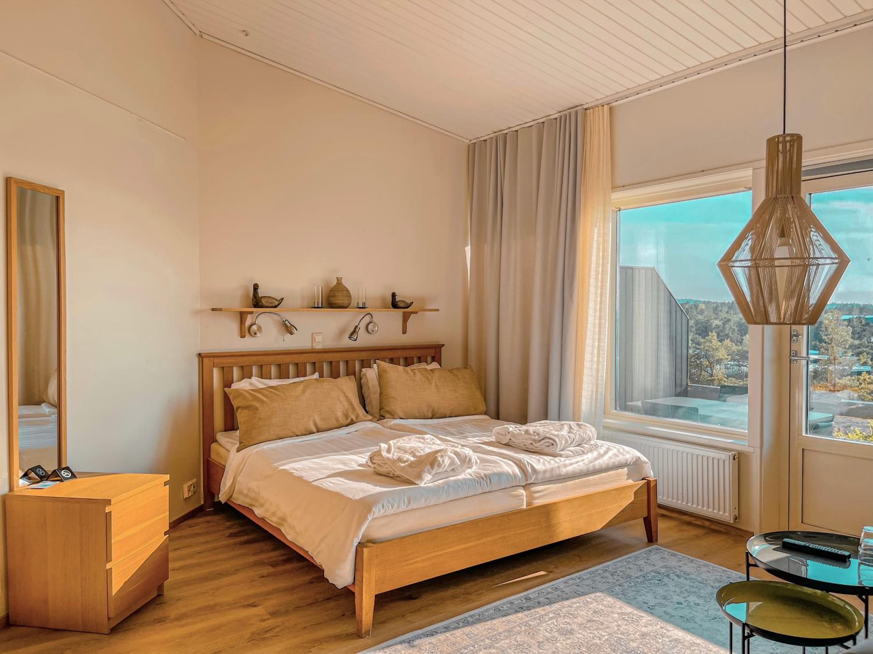 Närheten till havet, klipporna och bastun med panoramafönster mot havet. Utsökt frukost med fantastisk utsikt från hotellet. Mysigt rum.