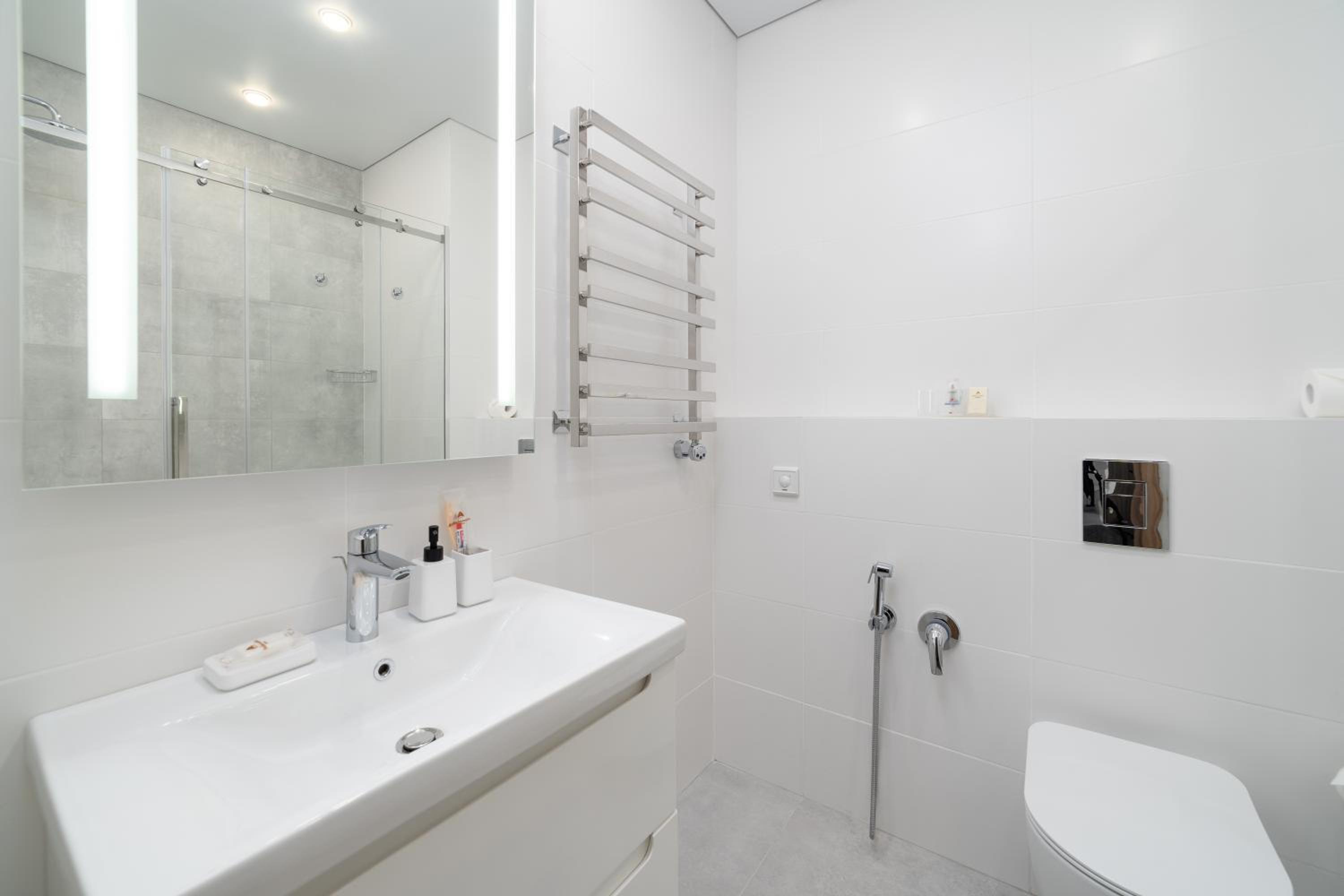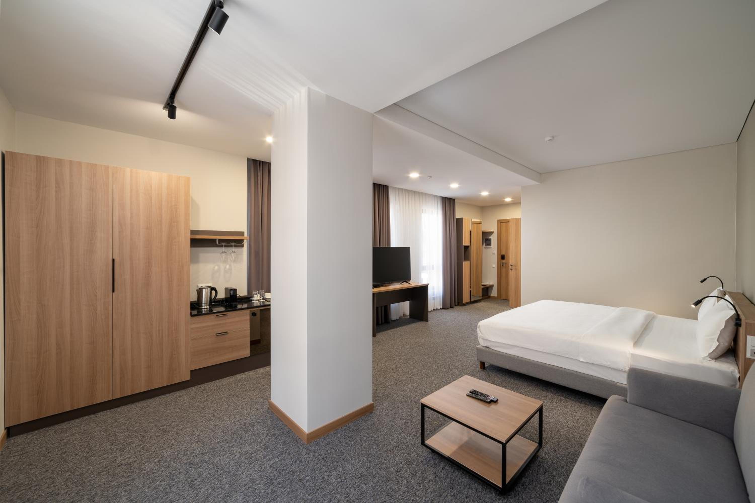 The property os exactly same as the photos. Big space, big and comfortable beds, very modern, clean always. Accessible to restaurants, coffee shop, grocery. Quiet place.