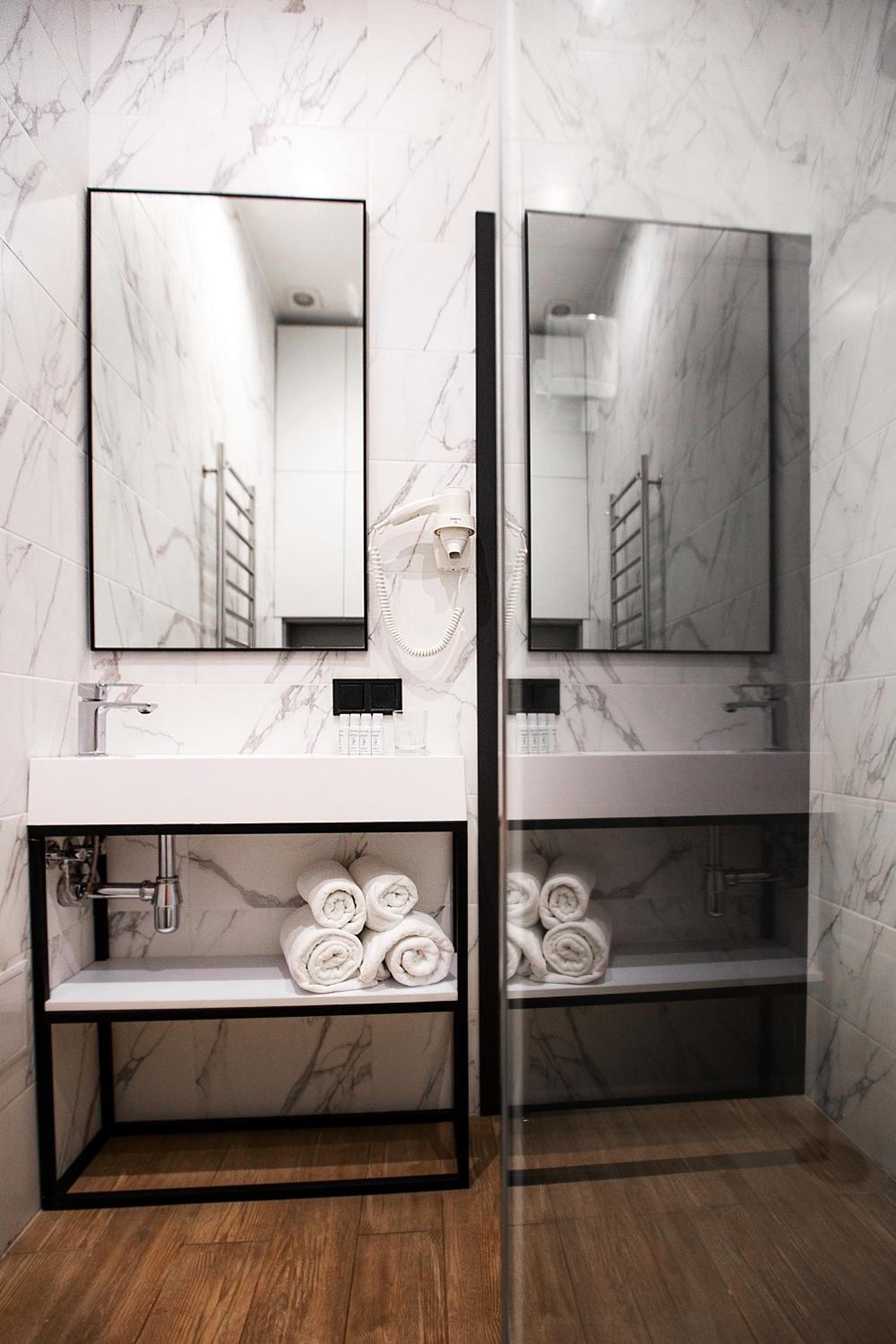 Неякісне прибирання в номері, особливо в ванній кімнаті. Доволі холодно в номері, у ванній кімнаті є вікно, з якого дує