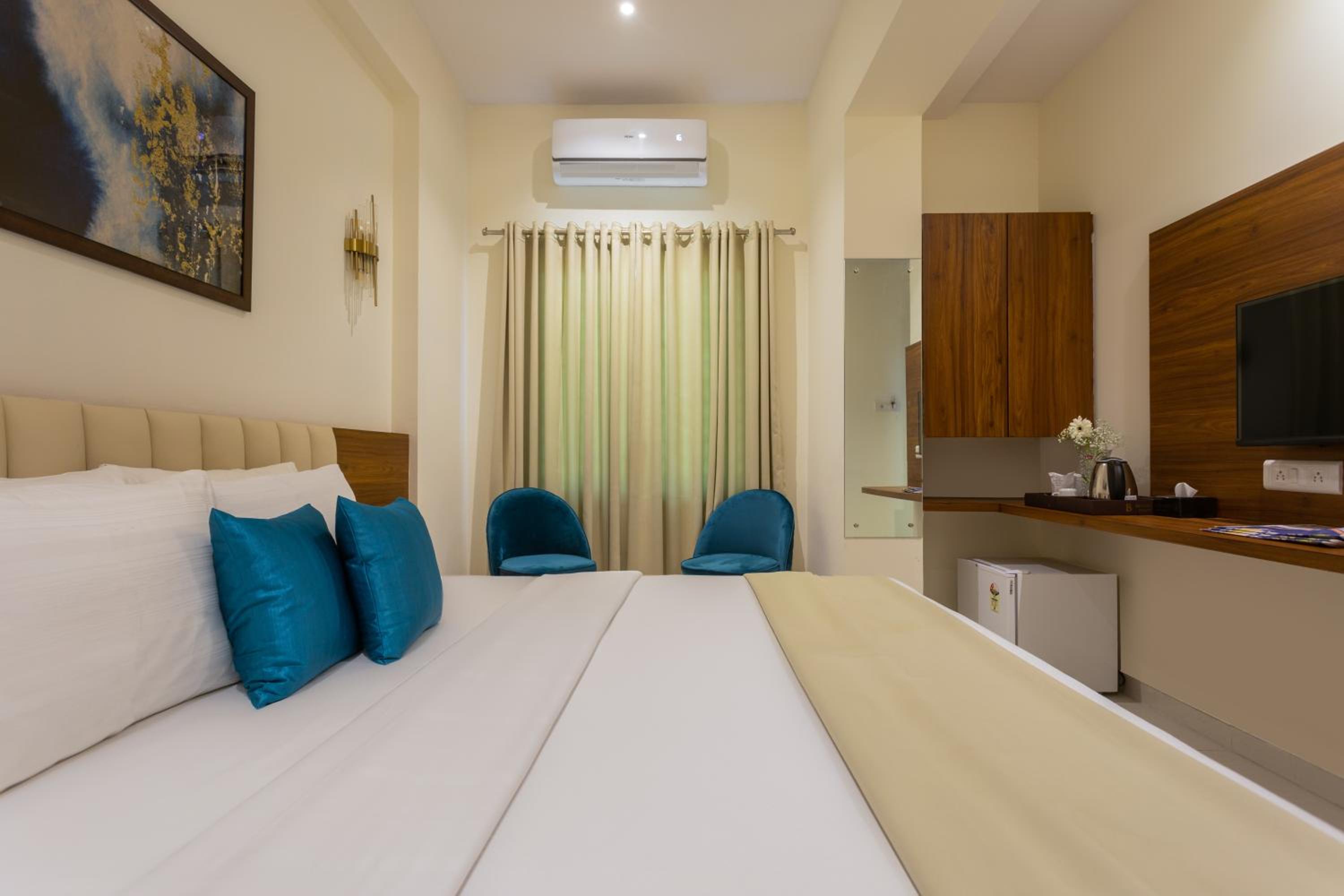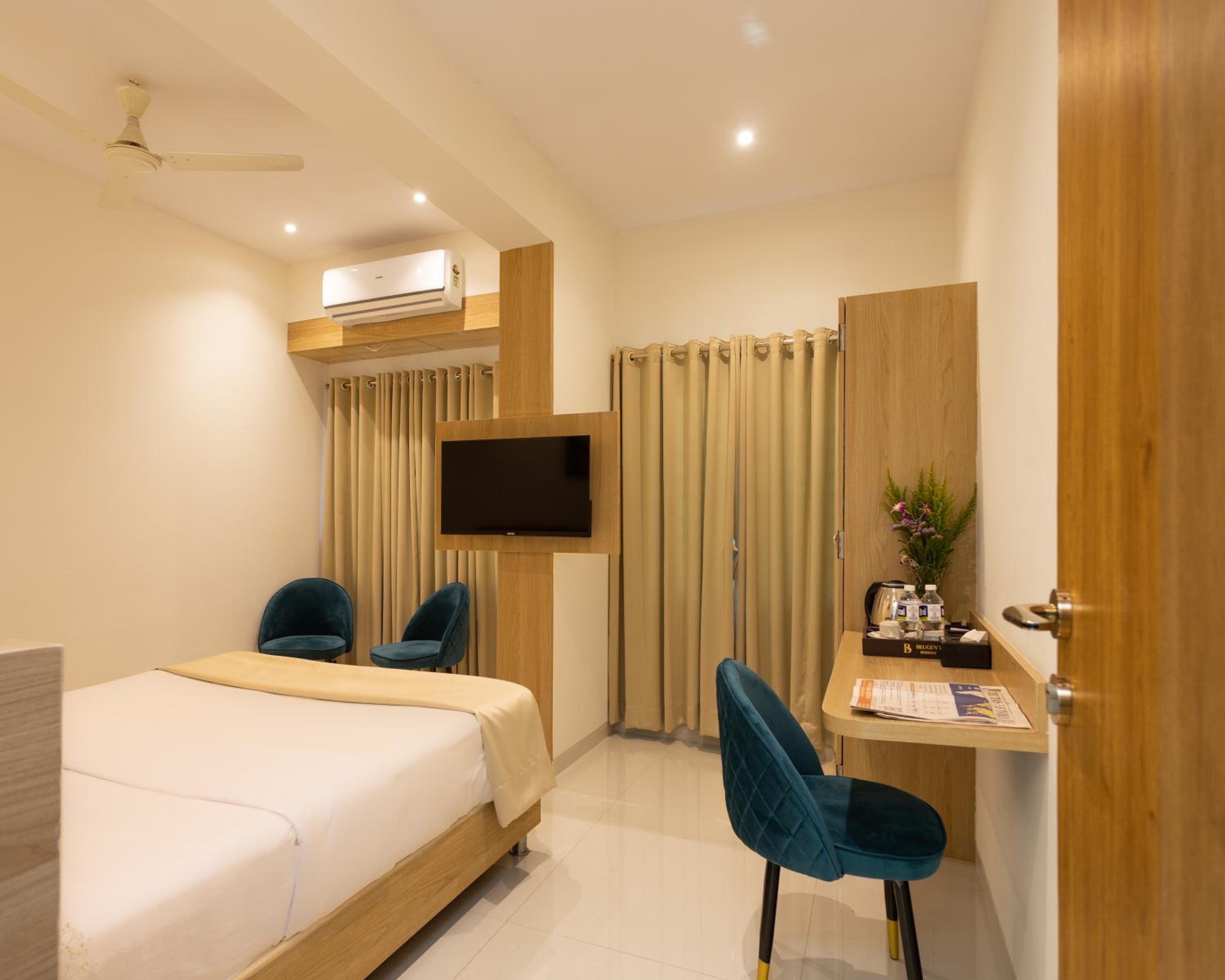 Blugent Residency offers room service, a 24-hour front desk, and free WiFi for a comfortable stay.