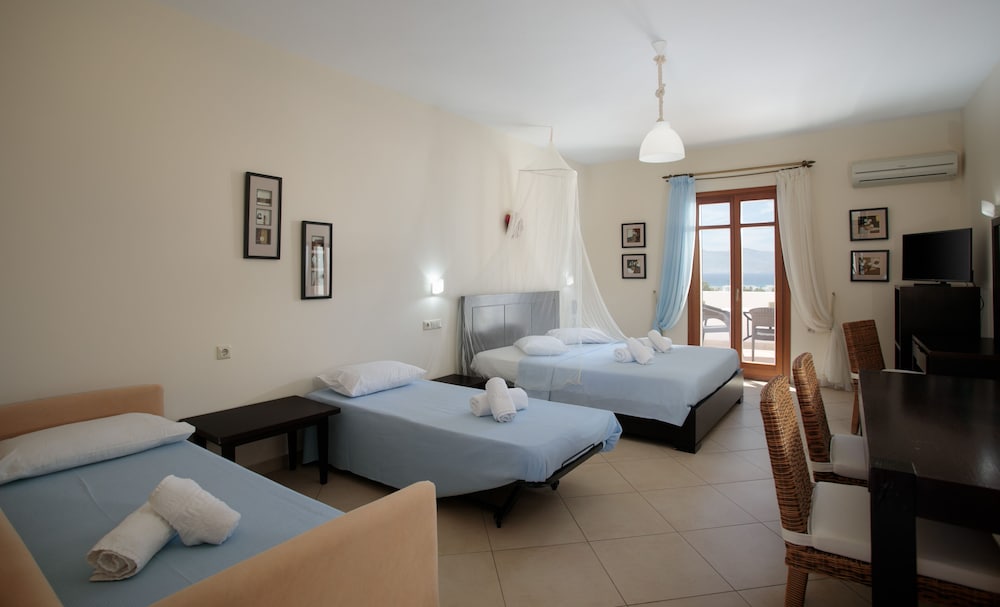 Loved our 10 day stay at this hotel. Rooms are big and comfortable, kitchen is well equipped, the balcony has a beautiful view of the sunset. We asked for a taxi once and the owner offered to drop us off at a beach in his car instead, which was kind of him. Special thanks to Stelios for being super helpful throughout our stay!