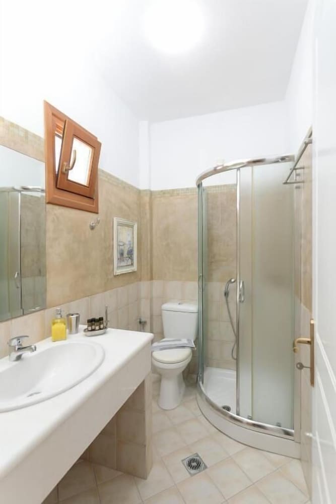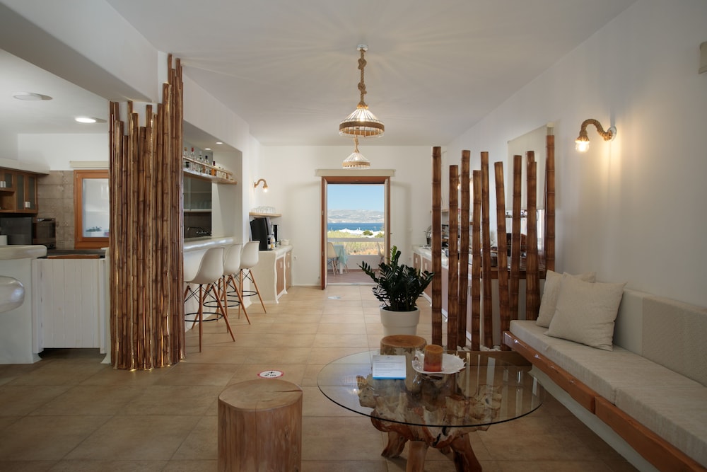 Studio ampio e silenzioso, attrezzato con piccolo angolo cottura e balcone. La nostra aveva una stupenda vista mare / Paros da dove poter ammirare meravigliosi tramonti. La struttura è dotata di parcheggio e a soli 10 minuti a piedi dalla spiaggia e dalla fermata autobus che collega alla chora e altre spiagge. Pulizie giornaliere perfette e colazione super! Personale gentilissimo ci tornerei sicuramente.