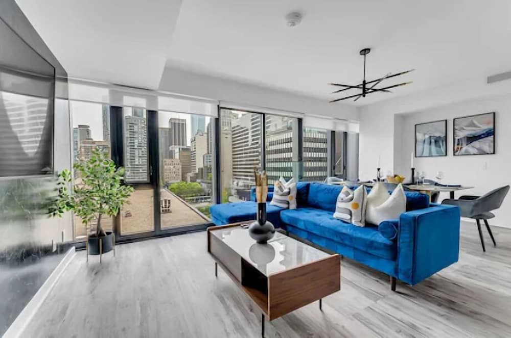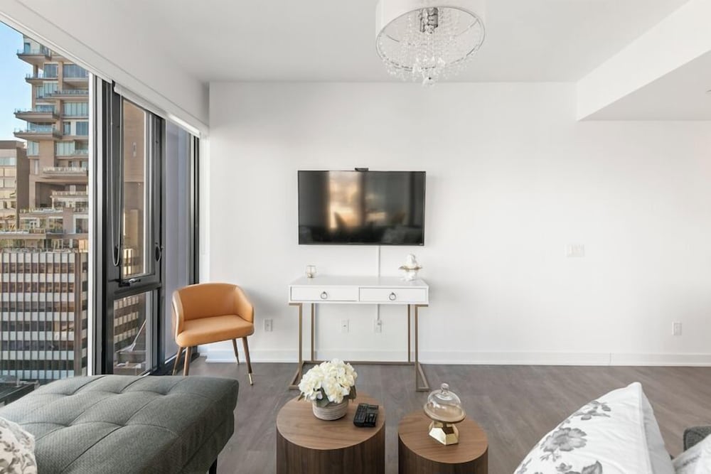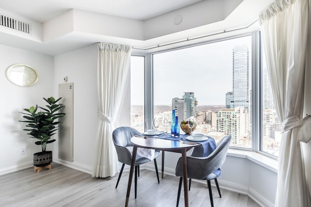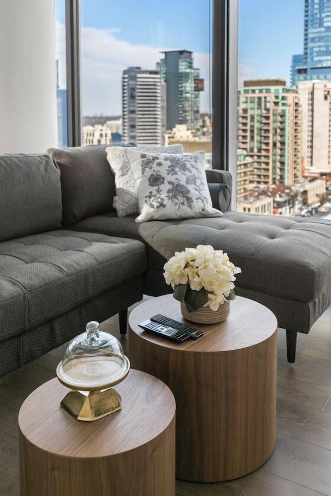 The area was perfect! The Royal Ontario Museum was right across the street and beautiful shops and pubs everywhere! Building was so secure and top notch with beautiful views through the all glass walls/windows! Right next to the transit for easy access to the whole city. Great immediate communication too that helped answer any questions. 10/10 would definitely stay again!