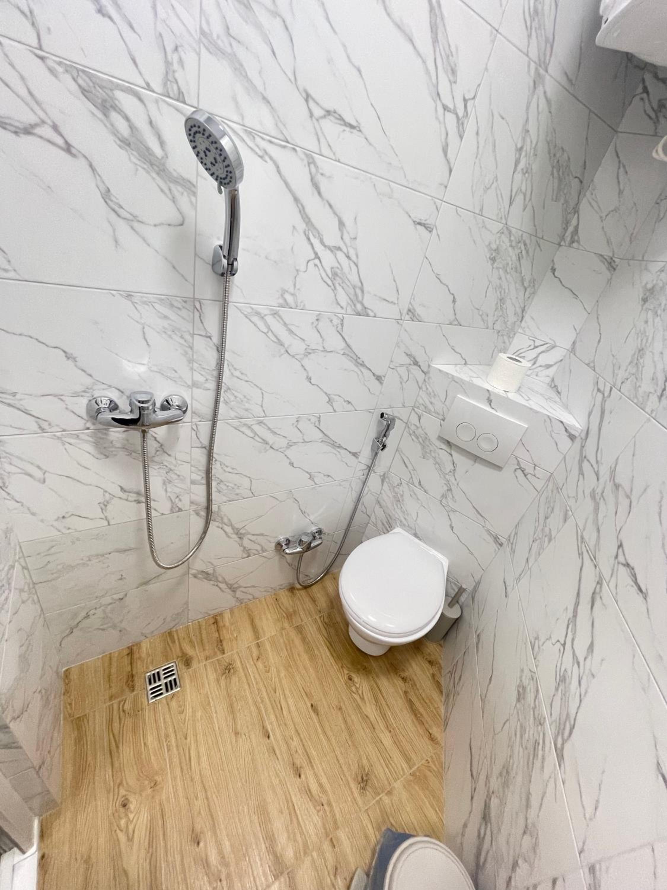 Не понравилась душевая комната, так как когда принимаешь душ, нет ни шторки не ограждения и все вокруг намокает(