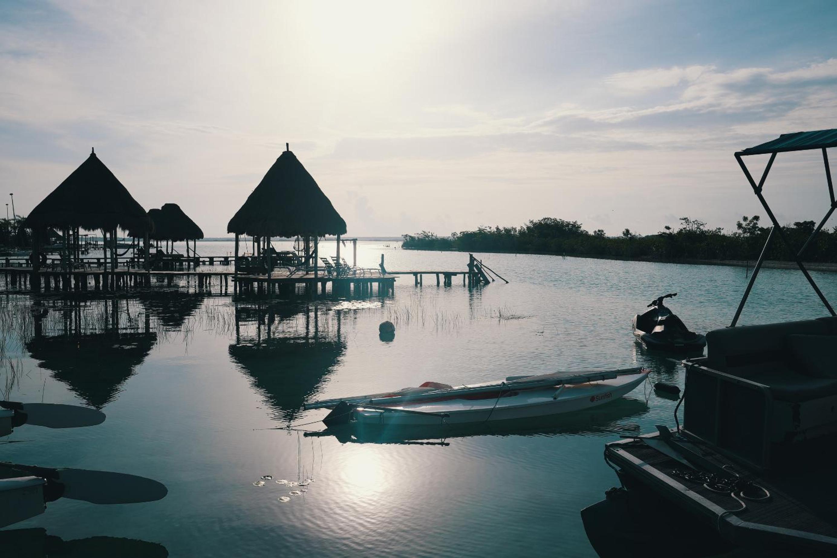 Bel établissement donnant sur la lagune de Bacalar. Ponton avec transats, hamacs plongeant dans l' eau. Kayaks et paddle à disposition pour admirer la lagune. La jeune fille à la réception est très aimable et nous a donné des adresses pour les repas. Vraiment très bien.