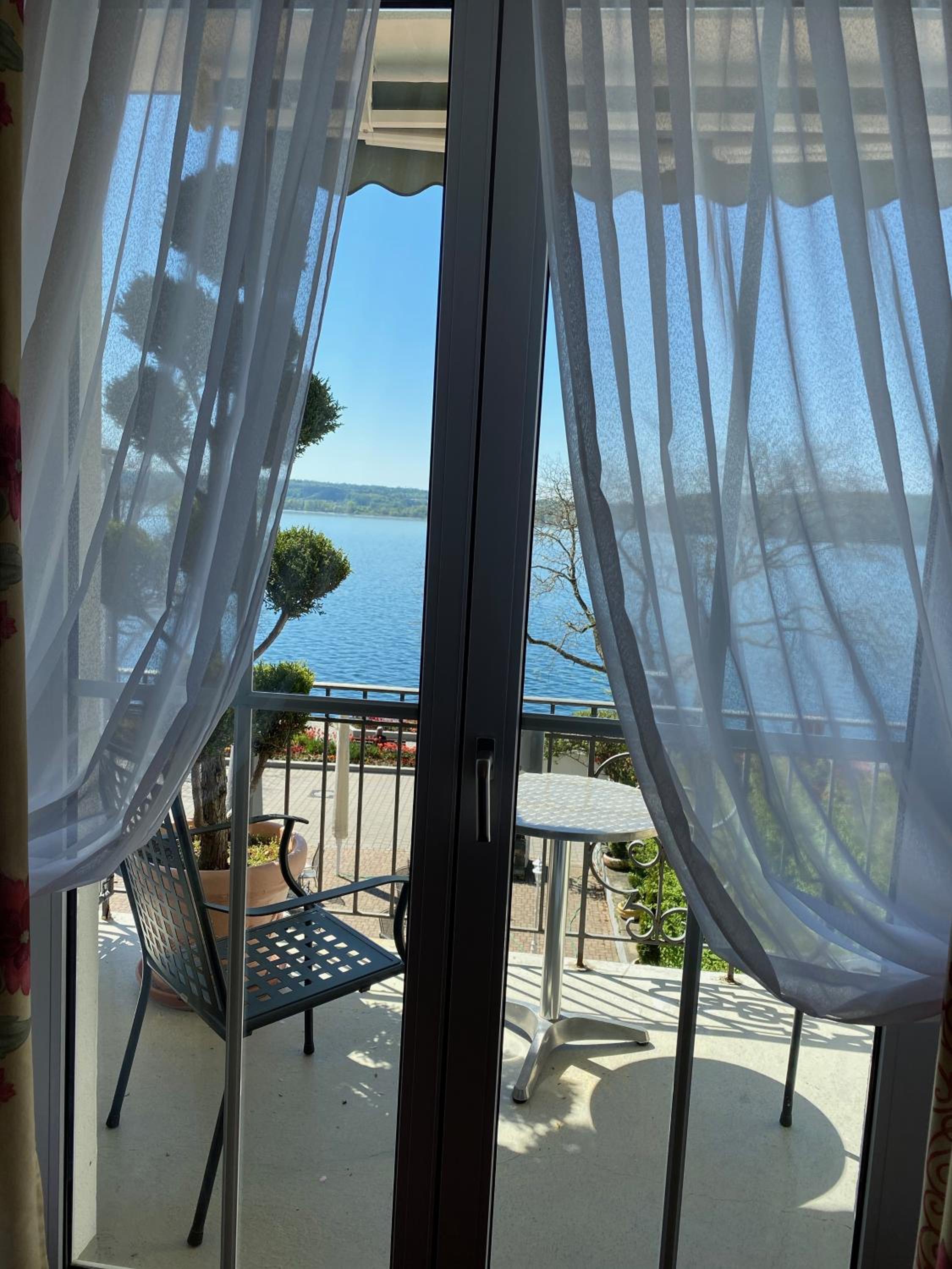 Lage optimal am See mit der Promenade und doch zentral in der Stadt, schöne Terrasse mit Seeblick, Frühstück sehr gut mit Blick auf den See