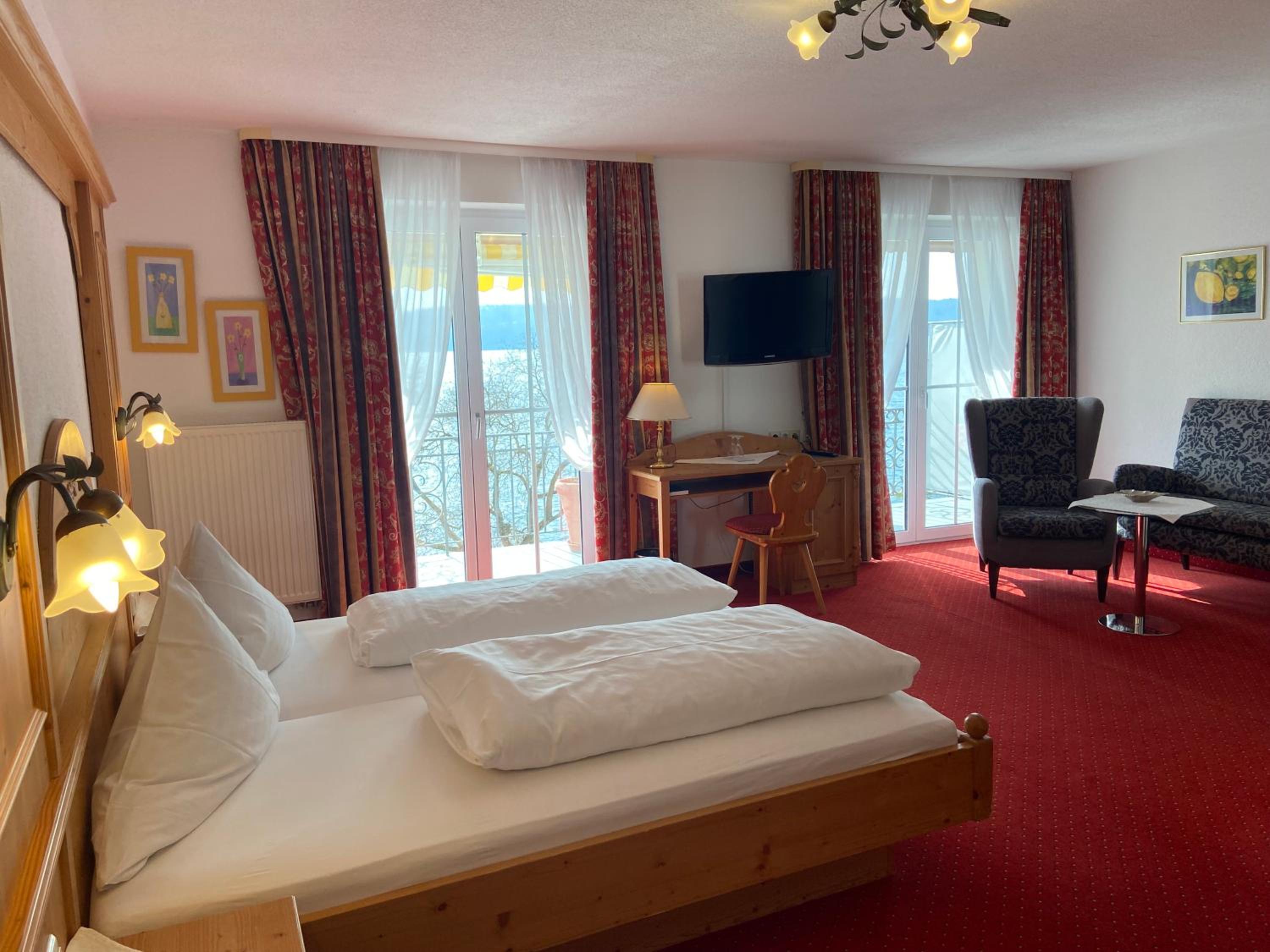 Kleines und gemütliches Hotel, Zimmer mit Echtholzmöbel angenehm eingerichtet, sehr leckeres Frühstück, freundliches Personal, tolle Lage direkt an der Seepromenade.