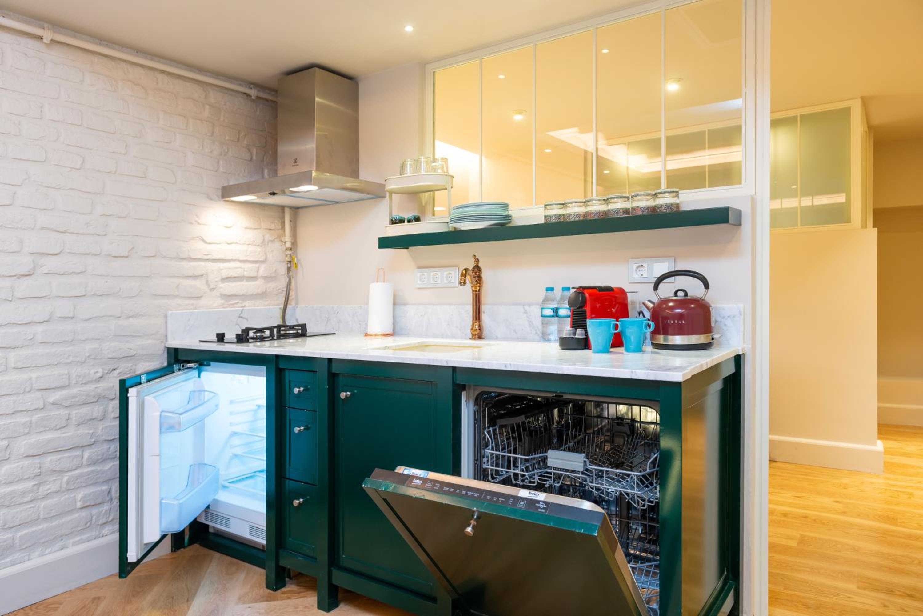 digicode , kitchen and late check out at 1pm