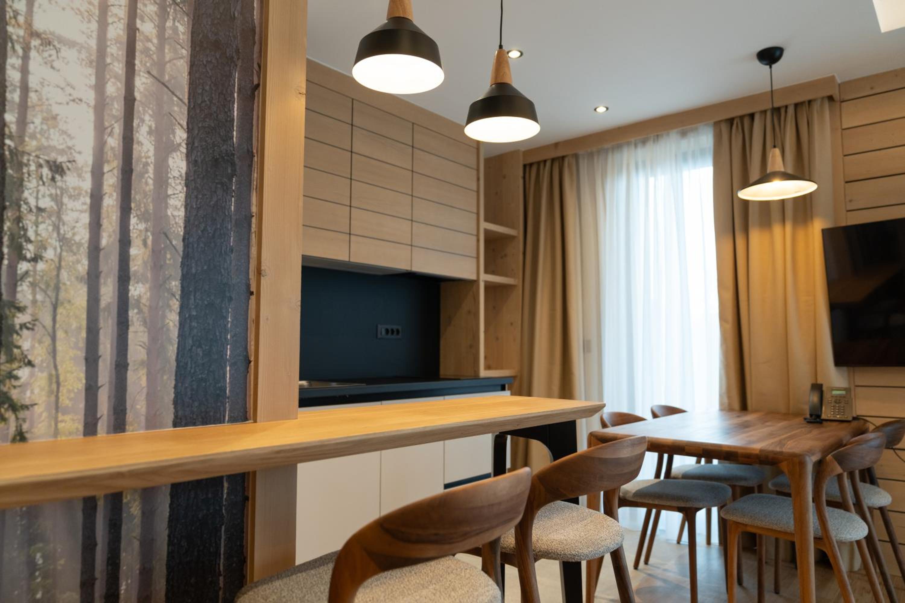 Tesisin konumu, temizliği, odaları, fiyat performansı çok iyi. 6 kişilik konaklamamızı 2 ayrı yatak odası ve salonda açılan iki kişilik koltuktan yatağı olan bir dairede kendi evimizde gibi keyifli geçirdik. Kayak merkezine çok yakın yürüne nesafesinde. Zaten Termag Hotel ile aynı işletme olduğu için kayak kiralamamızı da Termagdaki kayak odasından kiraladık. Oradan direkt kaymaya başlayabiliyor ve bitirirken odanın önüne kadar kayakla gelebiliyorsunuz. Tam karşısında küçük bakkal gibi bir market var. Ev için alışveriş yapacaksanız havaalanından çıkınca Bingo süpermarket var. Biz alışverişimizi yapıp öyle gittik. Girişindeki restoran zaten hem kahvaltı hem akşam yemekleri için gayet uygun ve lezzetli. Tesisin çalışanları her konuda çok yardımcılar. Çok doğru bir seçim yaptığımızı her an hissettik.