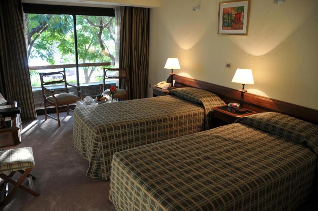 Retiro espiritual in Termas de Salto Grande offers 5-star accommodation with elegant rooms featuring balconies and stunning views of the garden and lake.